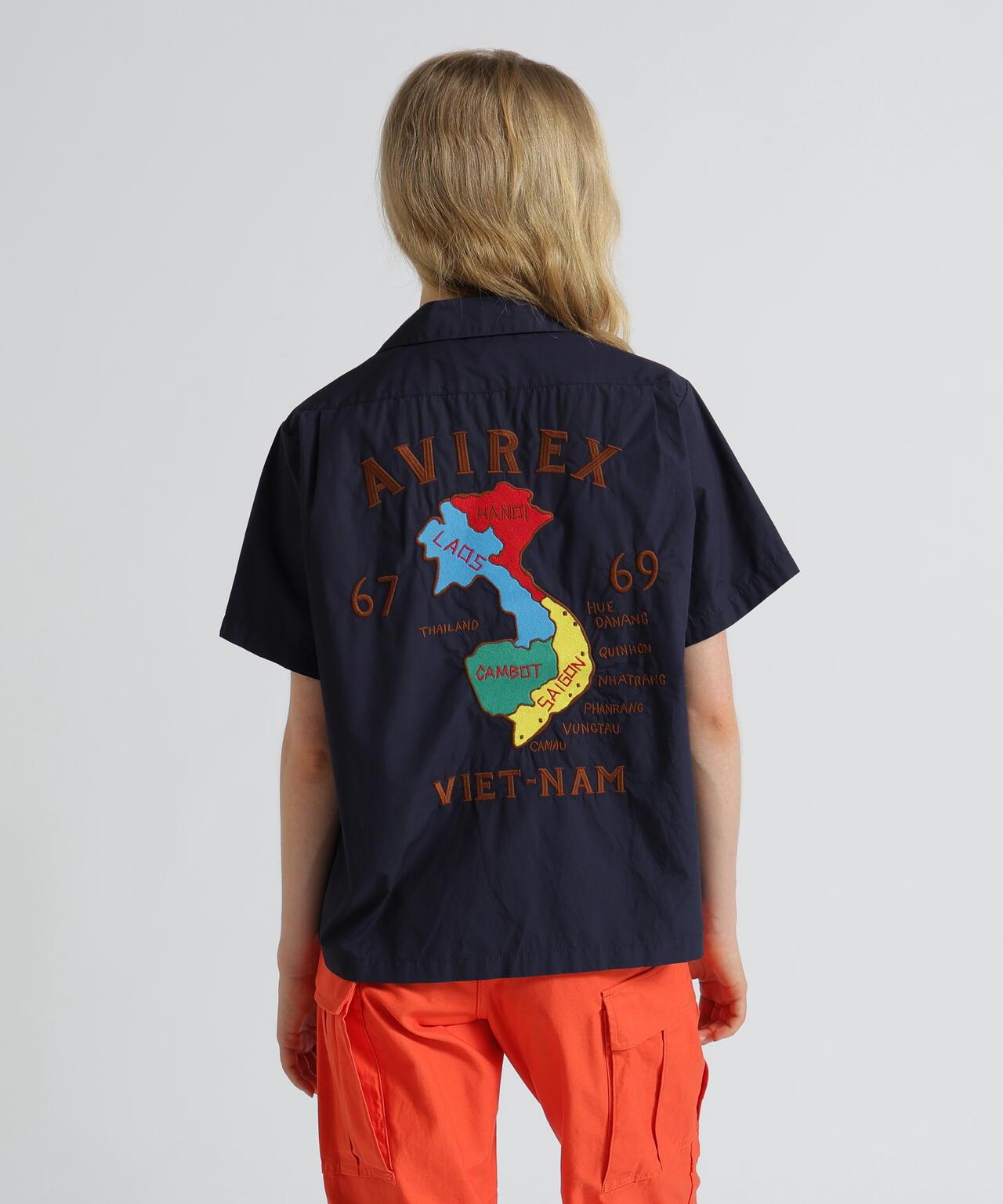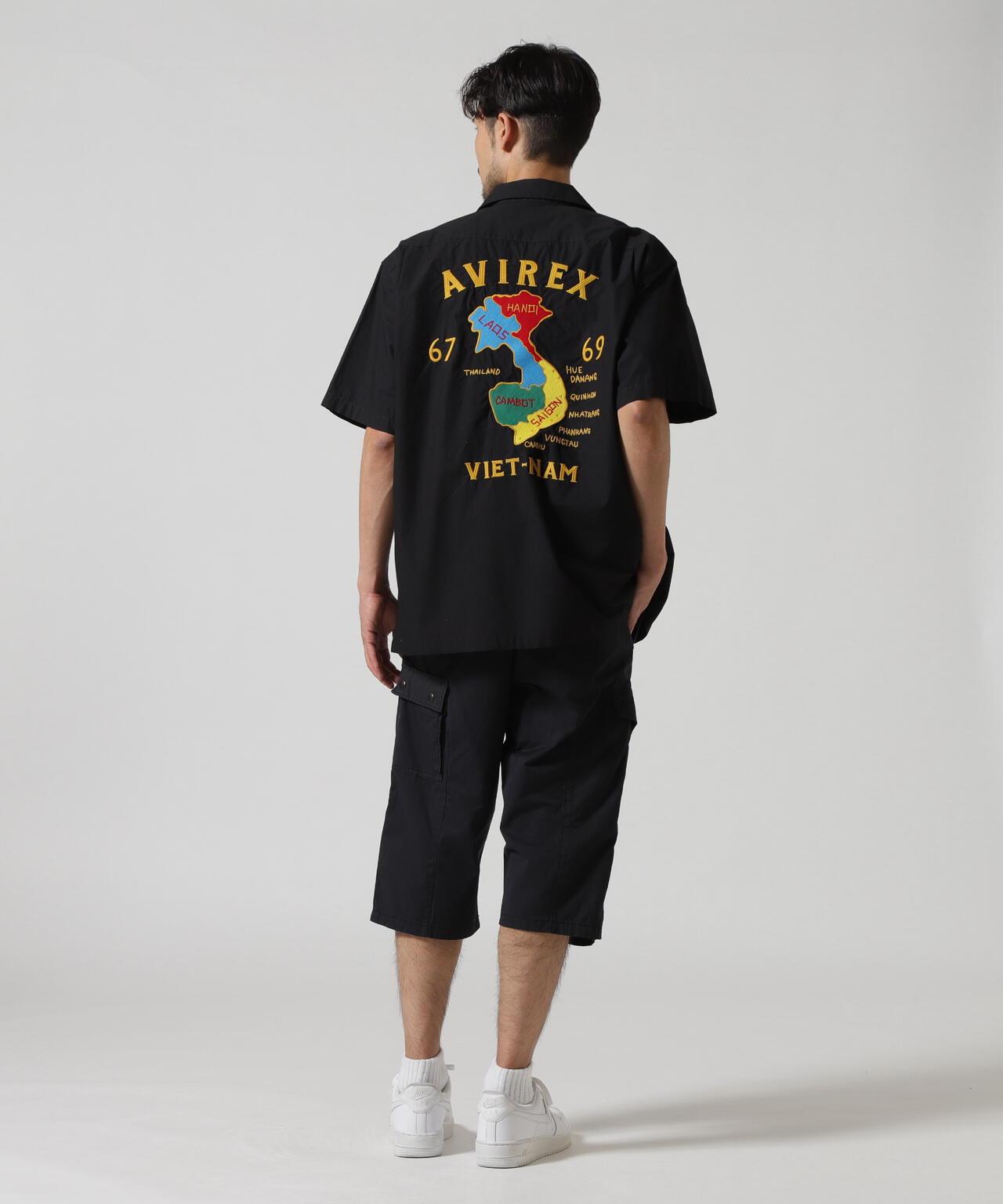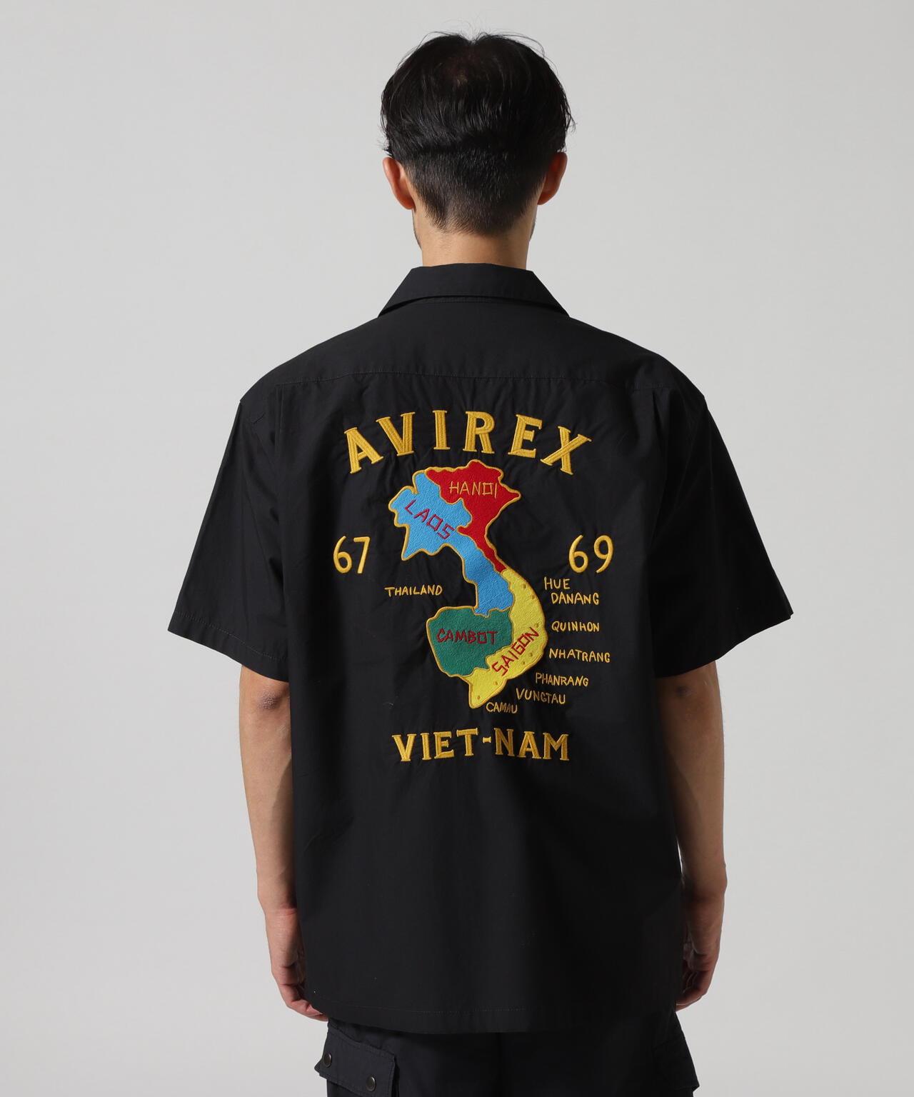 產品名稱: 《WEB&DEPOT限定》VIETNAM SHIRT [說明] - WEB&DEPO limited短袖襯衫 - 前胸部位,刺繡品牌標誌 - 後背,有衝擊力的刺繡設計,圖案為越戰夾克 - 黑色,深藍色、該品牌成立於 1975 年,當時是美國空軍的承包商,通過提供飛行夾克,其知名度大幅提升。Avirex 源自軍事領域,以功能性設計所散發出的獨特美感為基礎。在電影《奪寶奇兵》、《壯志凌雲》和《戰狼2》中都能看到其獨特的外觀。