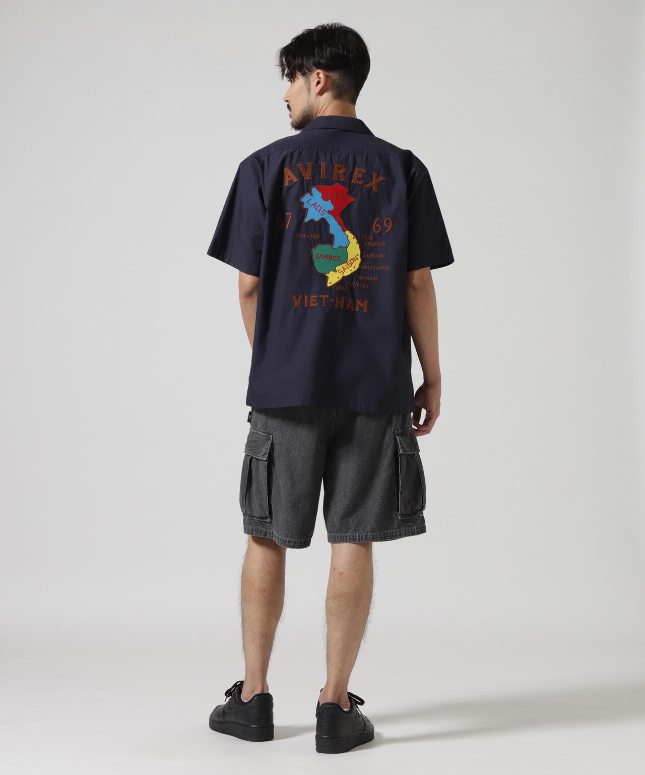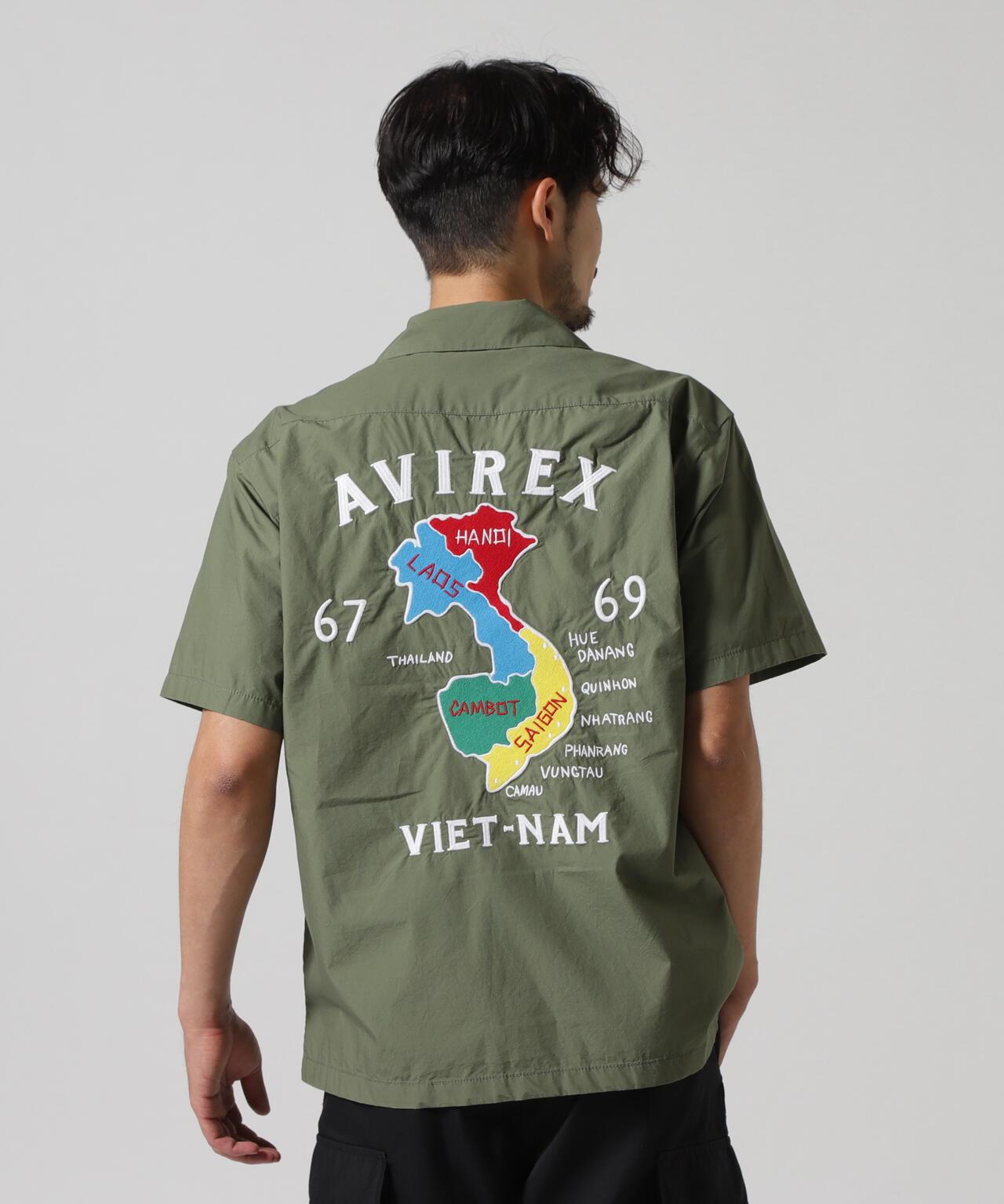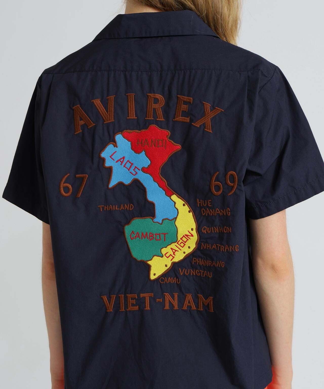 產品名稱: 《WEB&DEPOT限定》VIETNAM SHIRT [說明] - WEB&DEPO limited短袖襯衫 - 前胸部位,刺繡品牌標誌 - 後背,有衝擊力的刺繡設計,圖案為越戰夾克 - 黑色,深藍色、該品牌成立於 1975 年,當時是美國空軍的承包商,通過提供飛行夾克,其知名度大幅提升。Avirex 源自軍事領域,以功能性設計所散發出的獨特美感為基礎。在電影《奪寶奇兵》、《壯志凌雲》和《戰狼2》中都能看到其獨特的外觀。