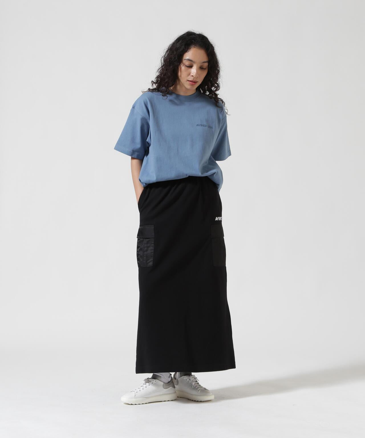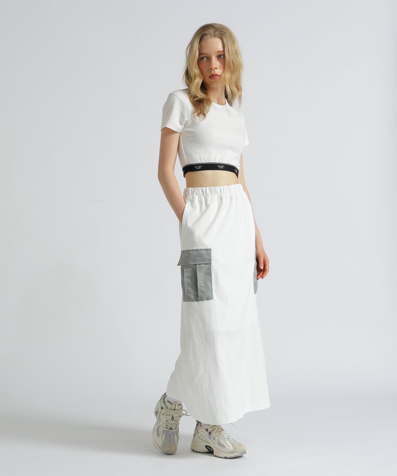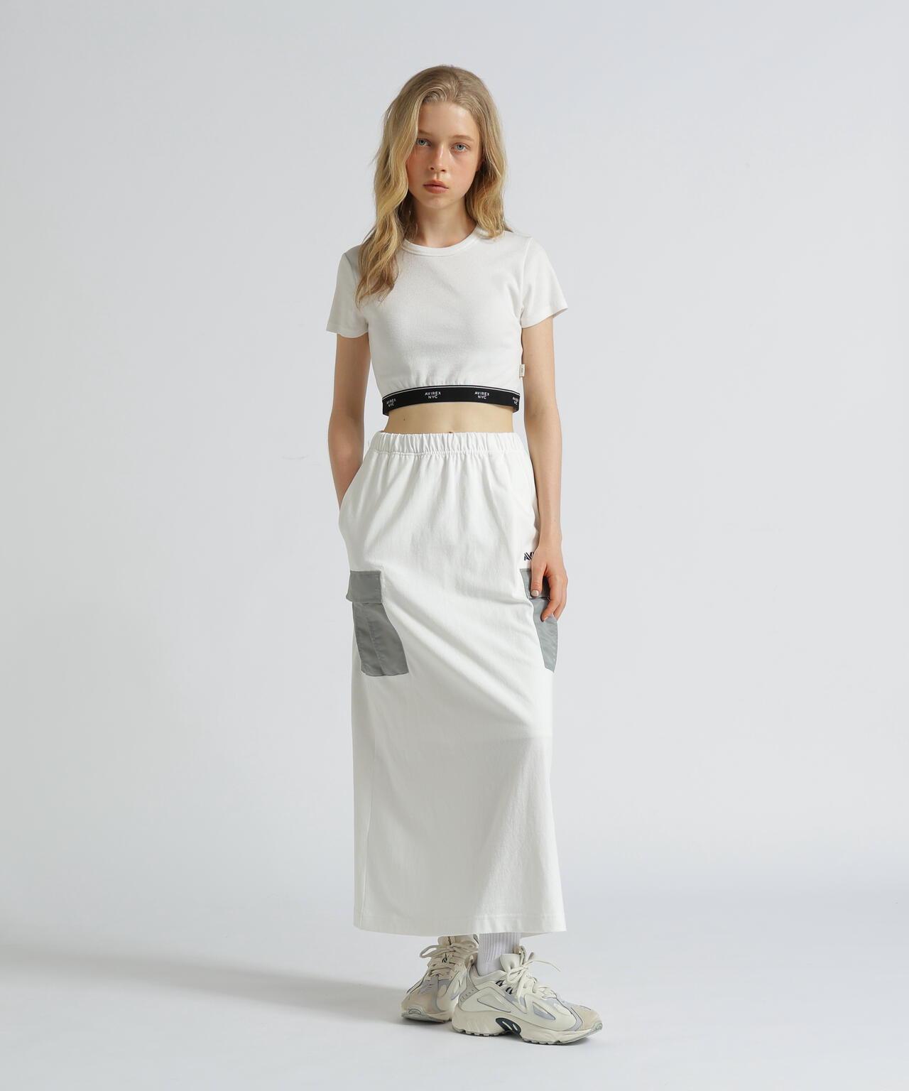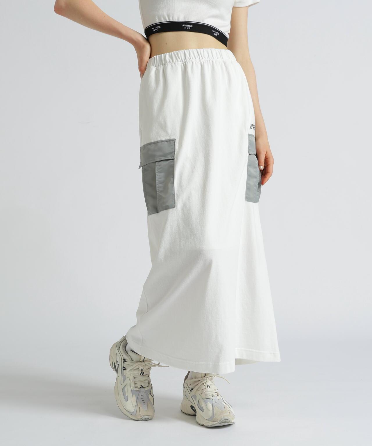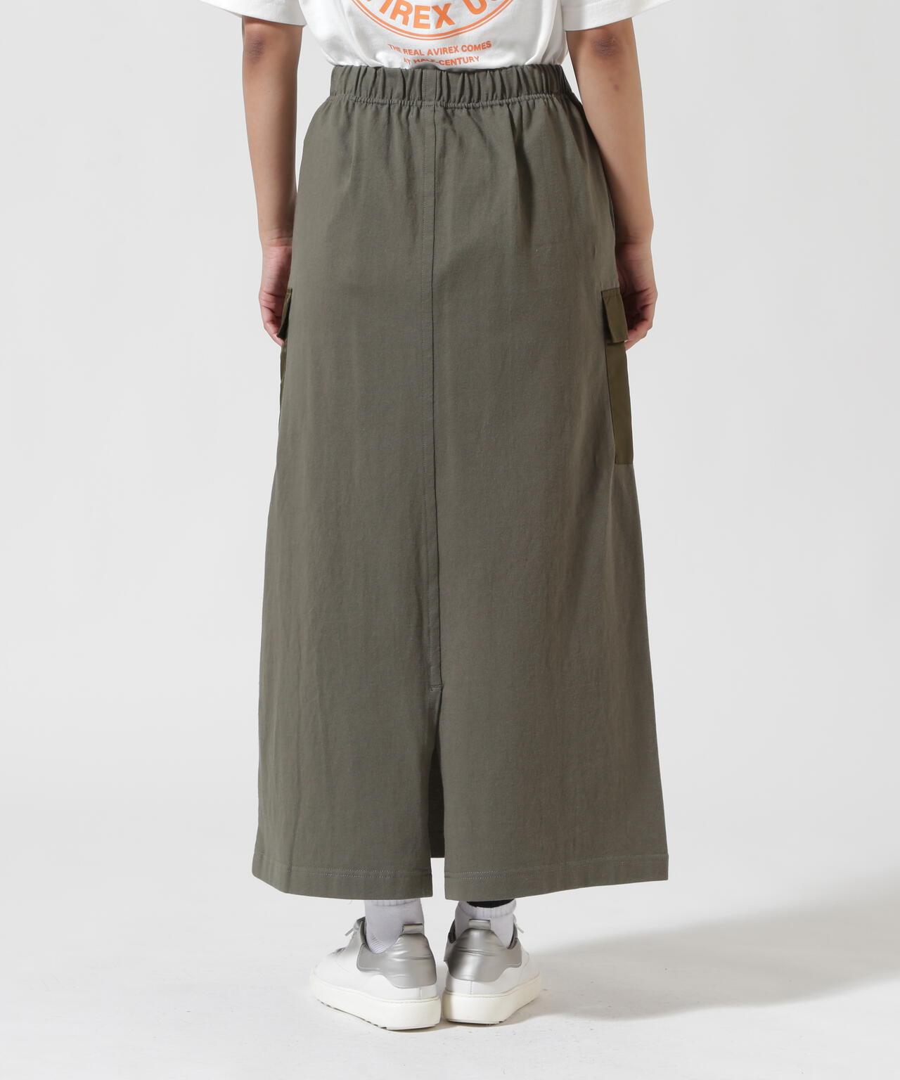 2025 春夏季單品JERSEY CARGO SKIRT - 裙子採用剪裁縫製面料,手感寬鬆 - 尼龍貨袋點綴 - 下襬開衩方便活動 [AVIREX WOMAN]。該系列將純正軍裝的功能性和設計感融入女式休閒裝。 該系列將純正軍裝的功能性和設計感融入女式休閒裝。讓您的購物體驗更加愉快!註冊成為產品的👍愛,並接收售罄顏色的補貨通知、👍後一分鐘商品通知和促銷通知。▼胸罩