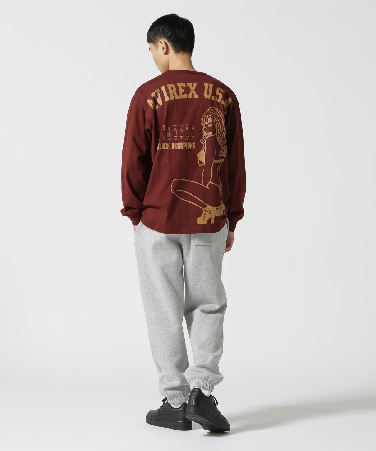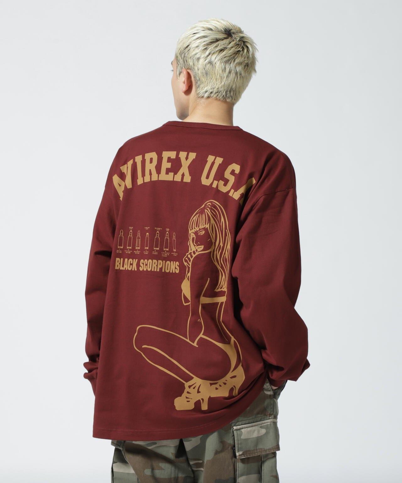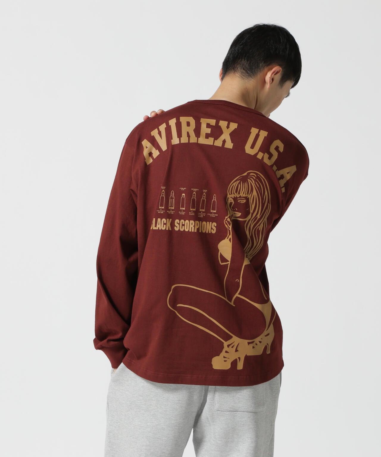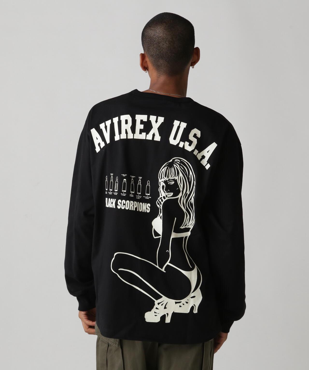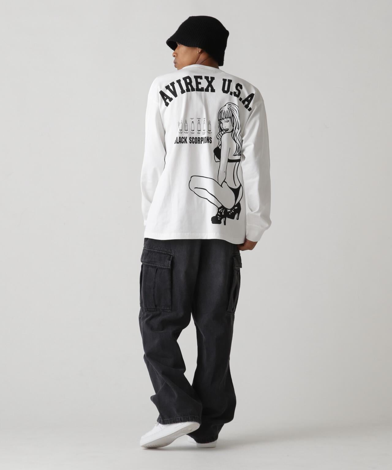 WEB & DEPOT Limited Edition] BLACK SCORPIONS LONGSLEEVE T-SHIRT [商品內容] - WEB & DEPOT Limited Edition完全再現了過去大受歡迎的 "BLACK SCORPIONS / 黑獅 "圖案。背面印有單色大圖案的規格,圖案是更引人注目的規格 - 剪裁是寬鬆的尺寸感 - 推薦搭配牛仔褲、貨郎褲等休閒品味 [AVIREX / AVIREX] 1975年作為美國空軍的承包商成立,是美國空軍飛行的承包商。該公司成立於 1975 年,是美國空軍的承包商,通過供應飛行夾克極大地提高了其知名度。起源於軍事