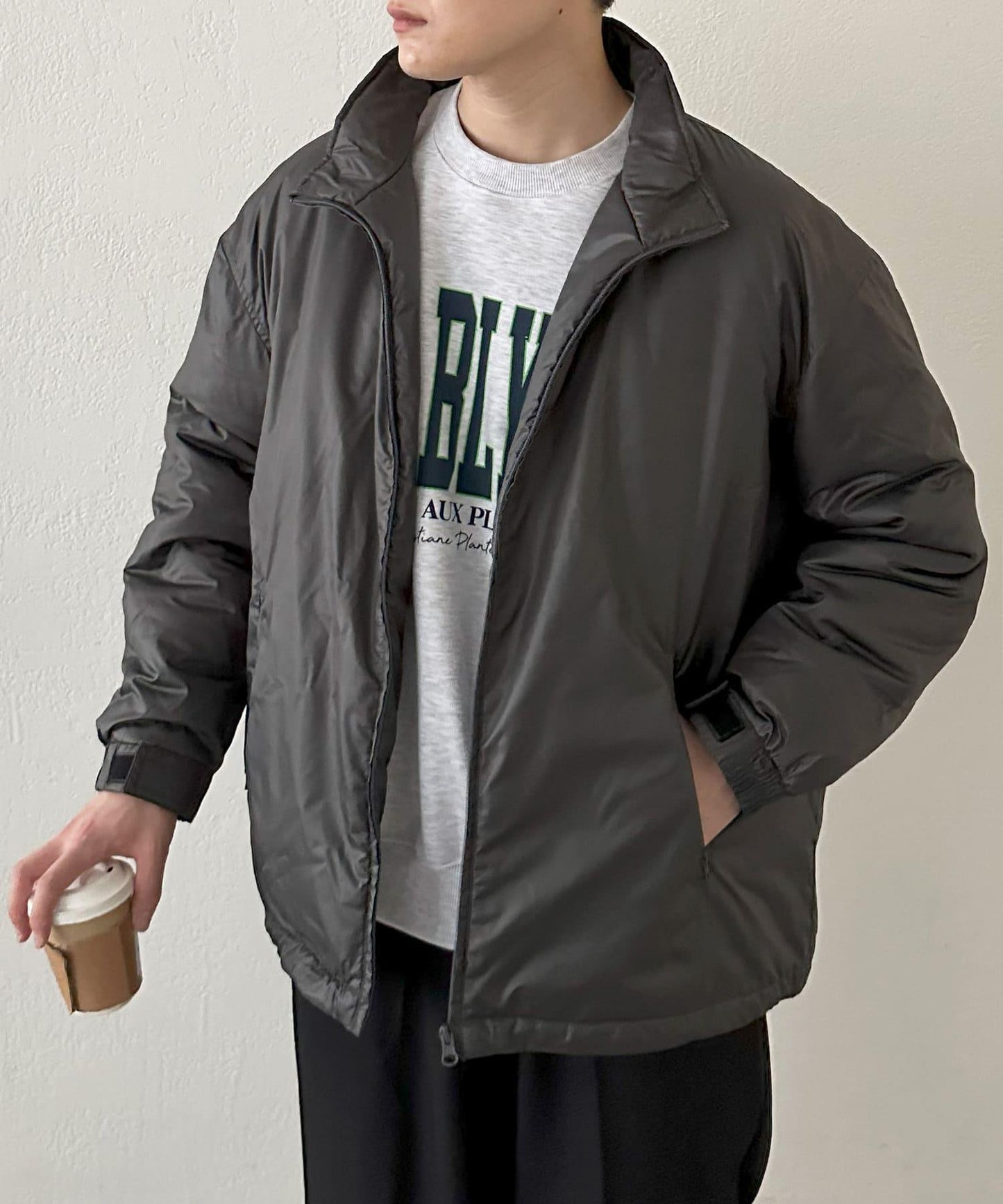 它是一款樸素簡單的外套,因此也非常適合搭配有圖案、彩色和徽標的單品!
