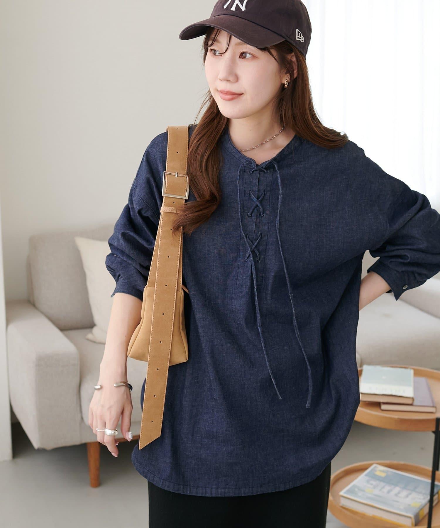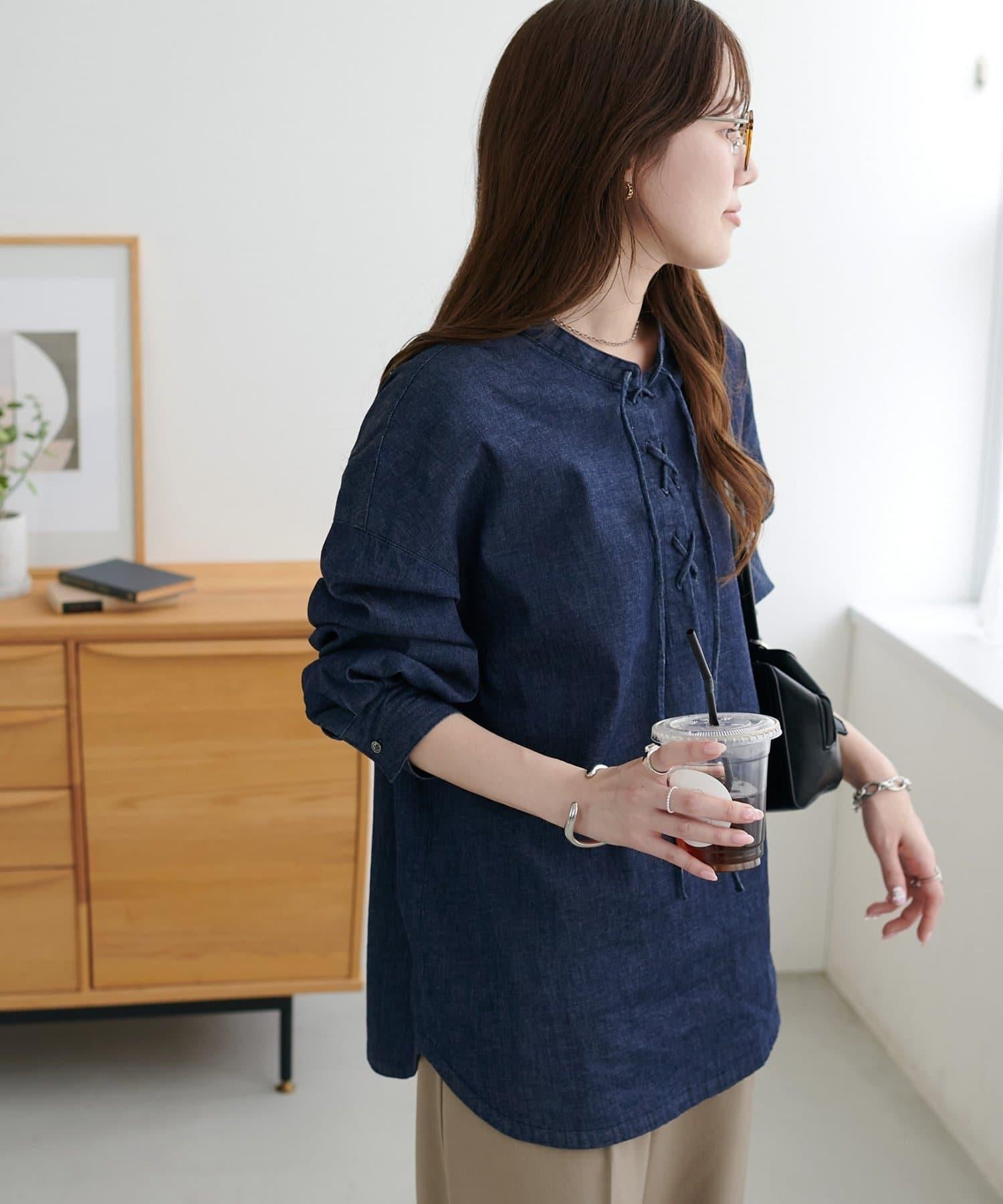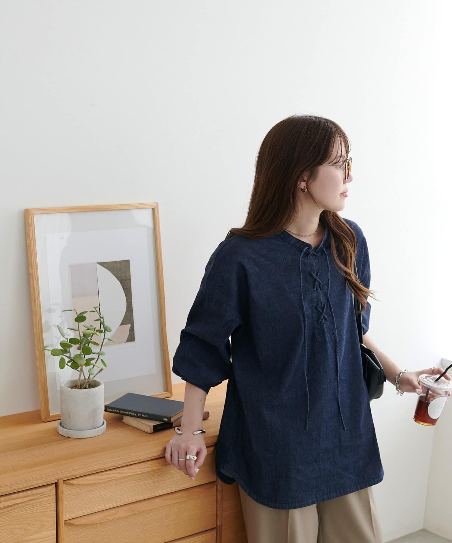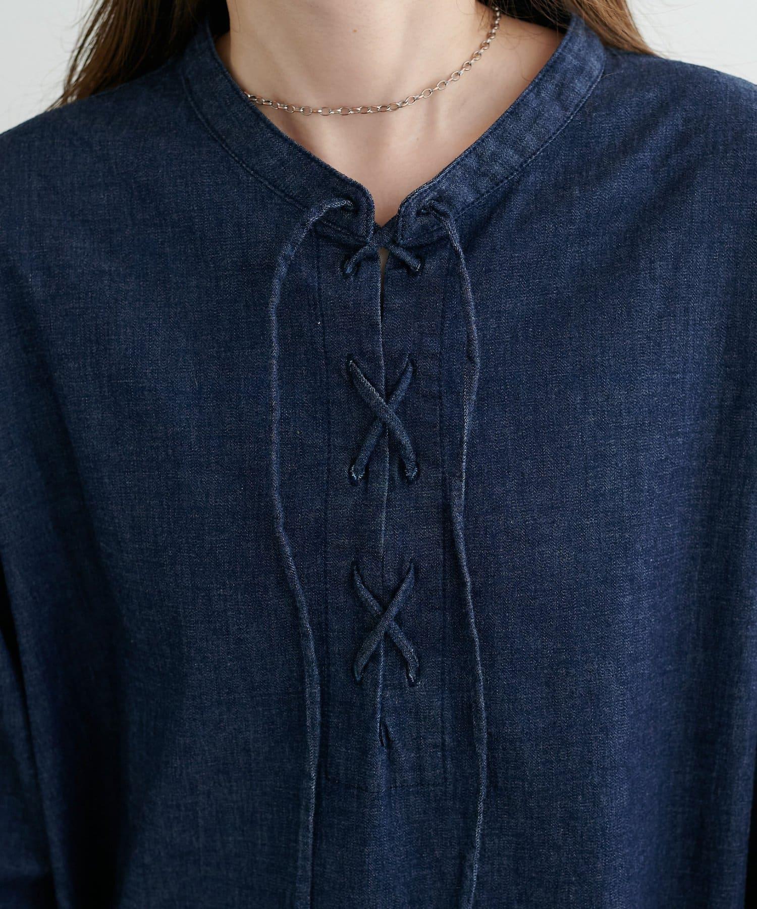 【Discoat】淺色牛仔繫帶襯衫