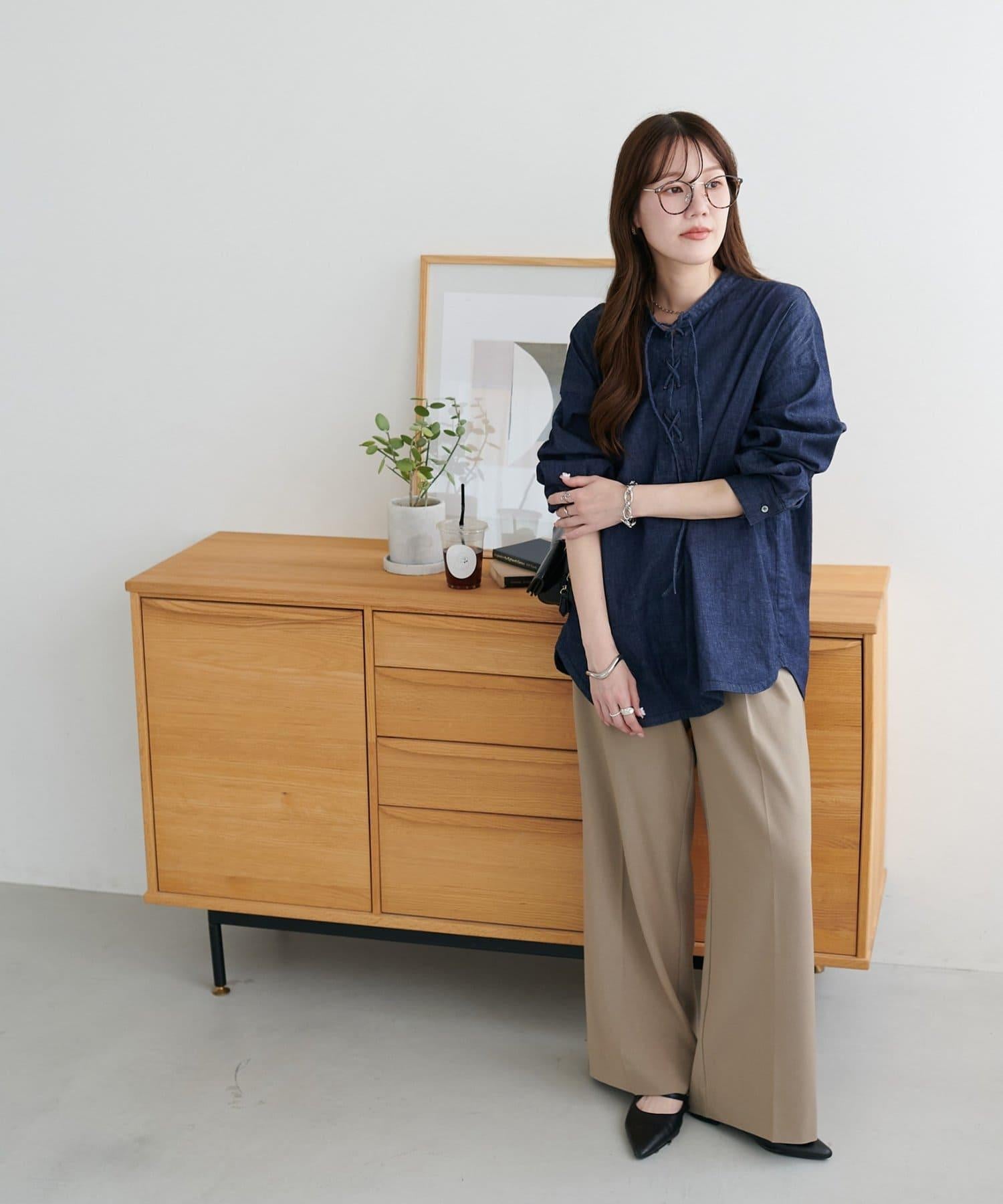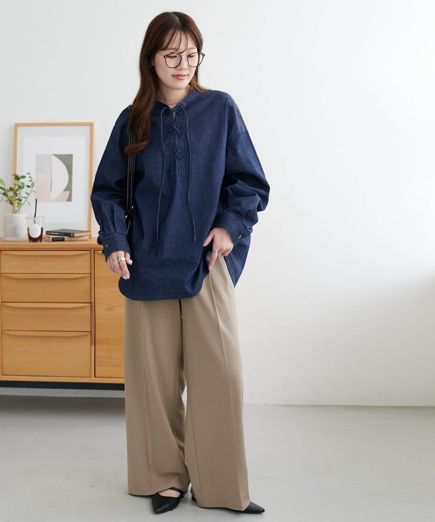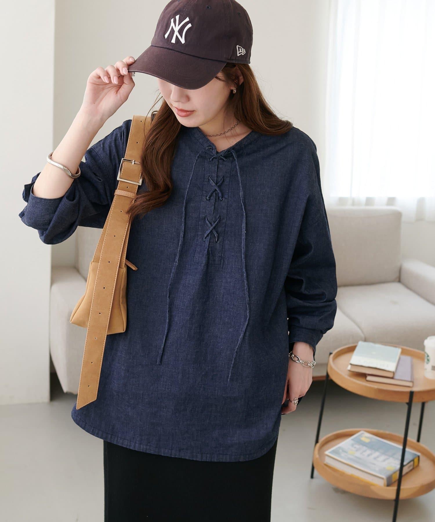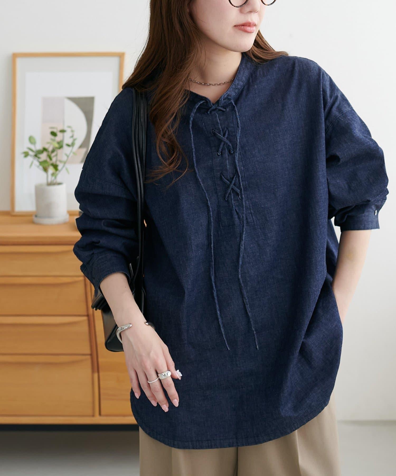 【Discoat】淺色牛仔繫帶襯衫