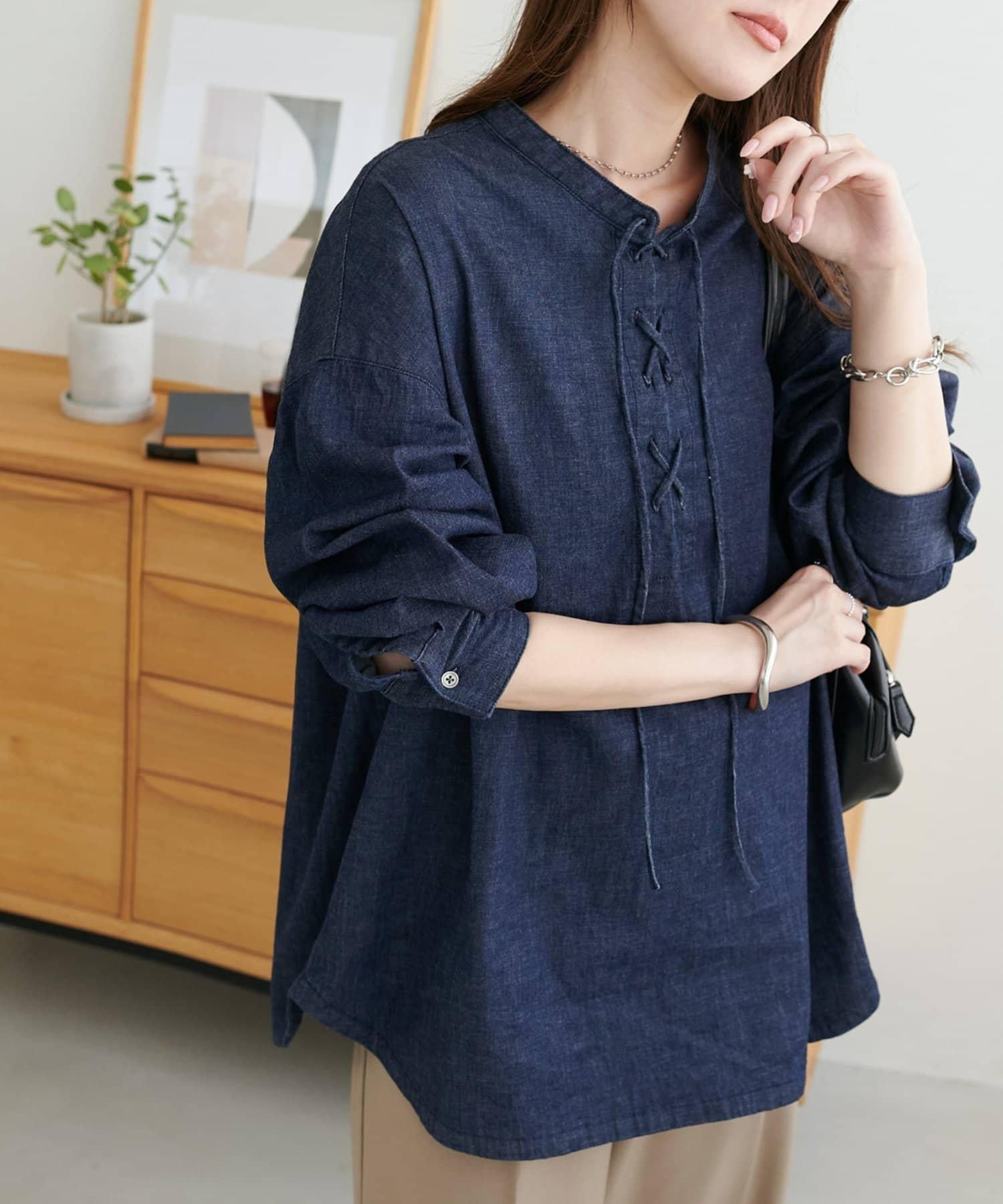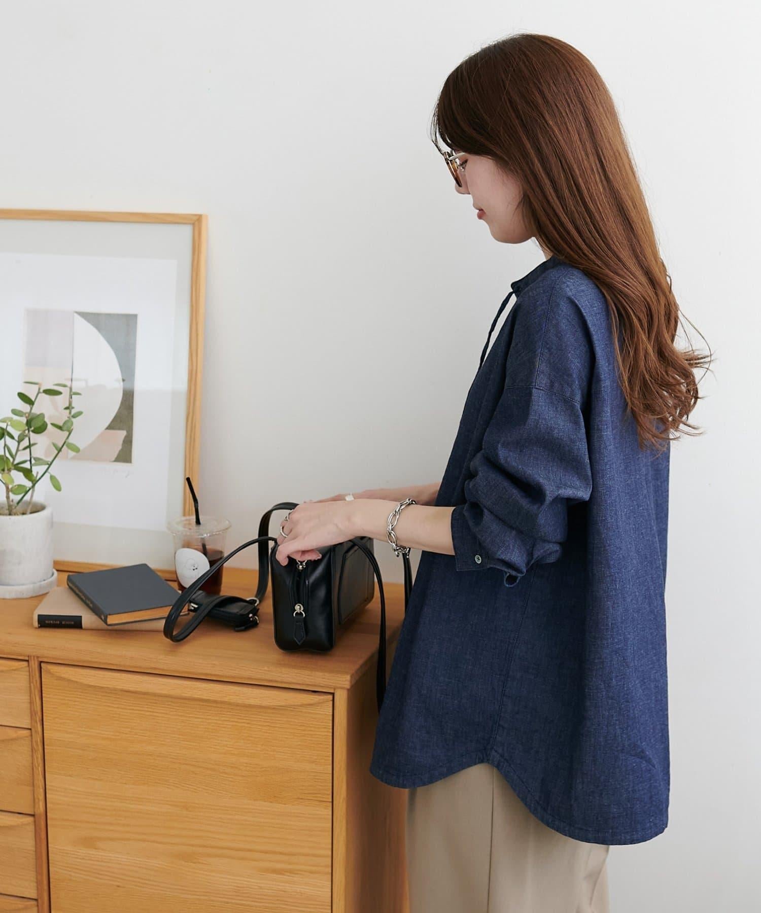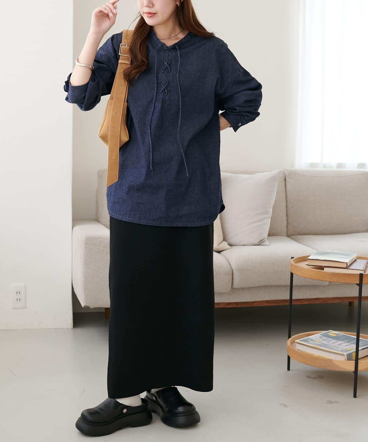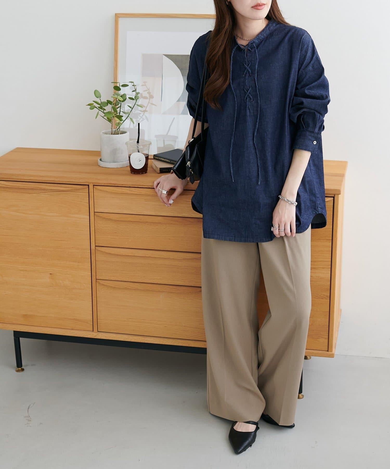 【Discoat】淺色牛仔繫帶襯衫
