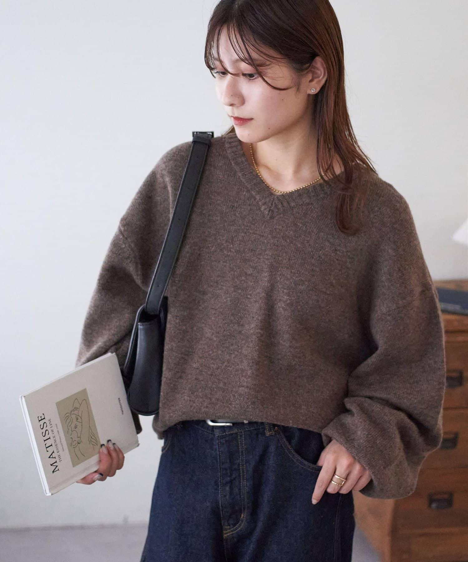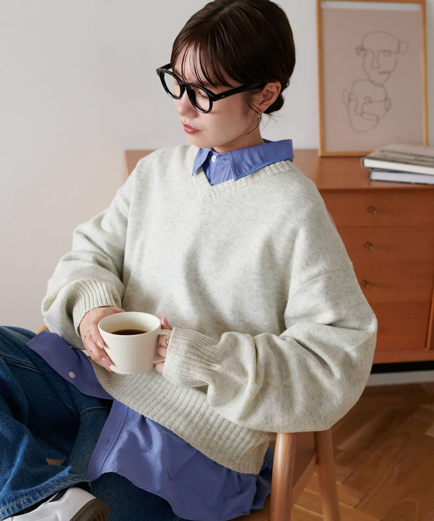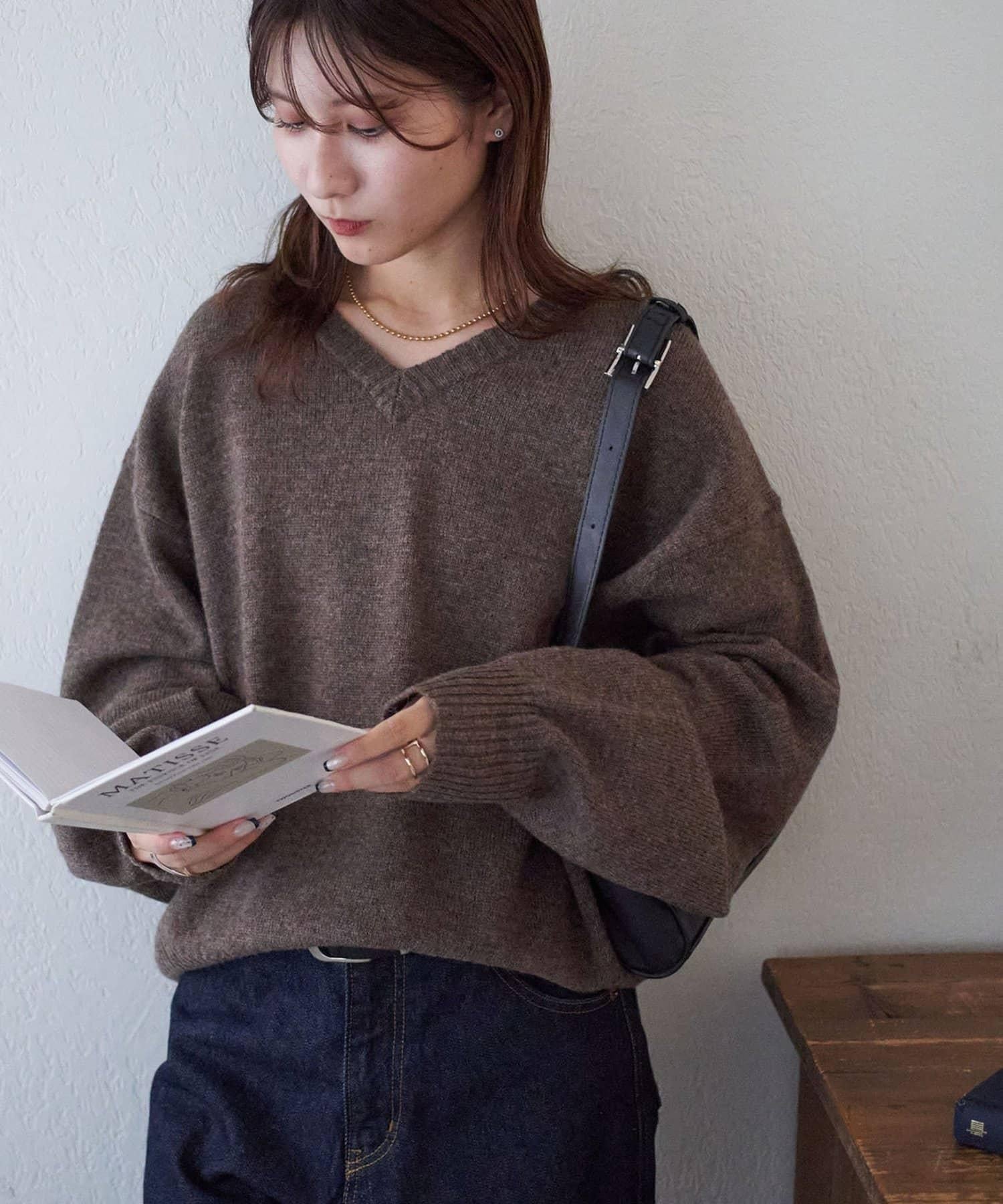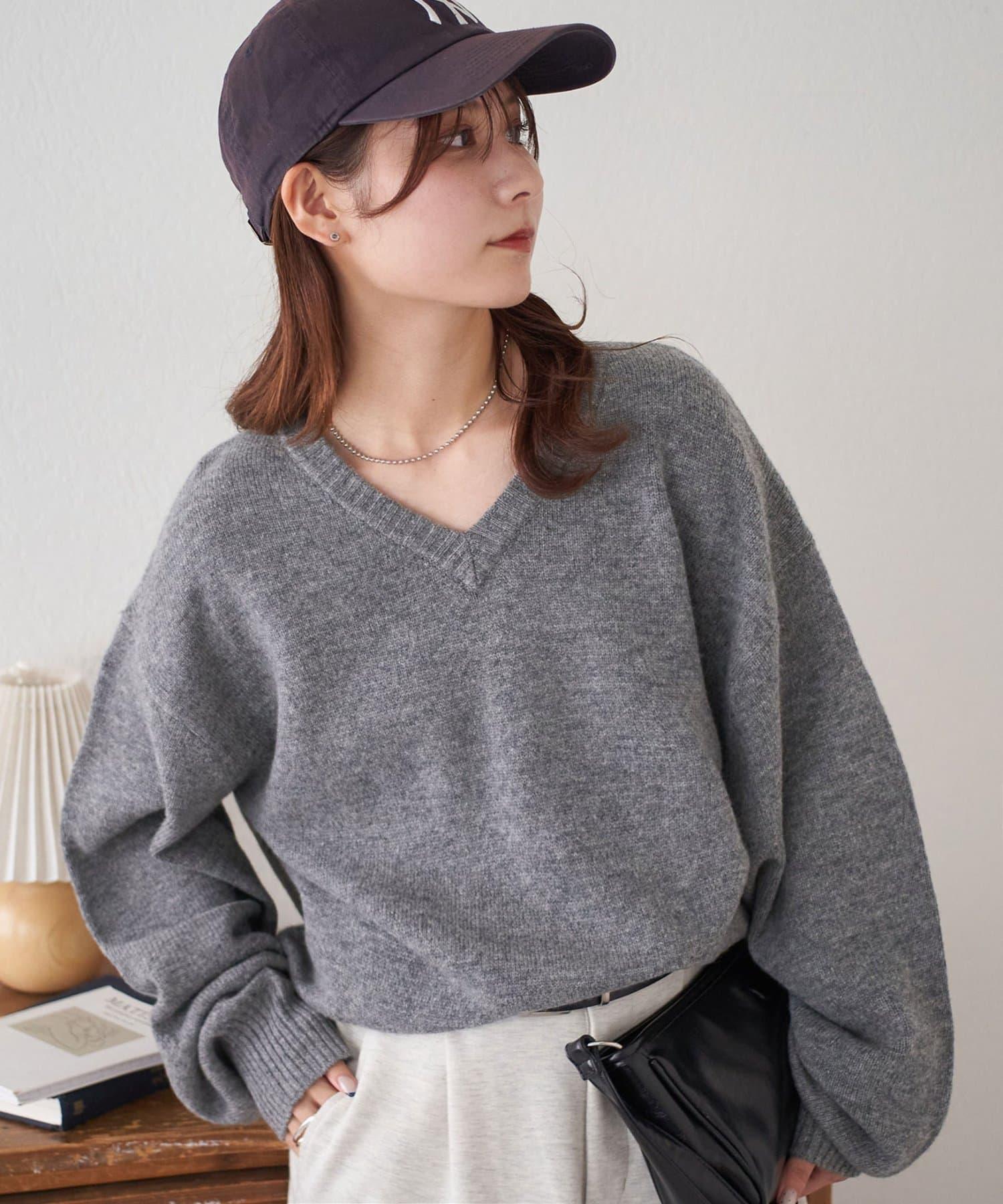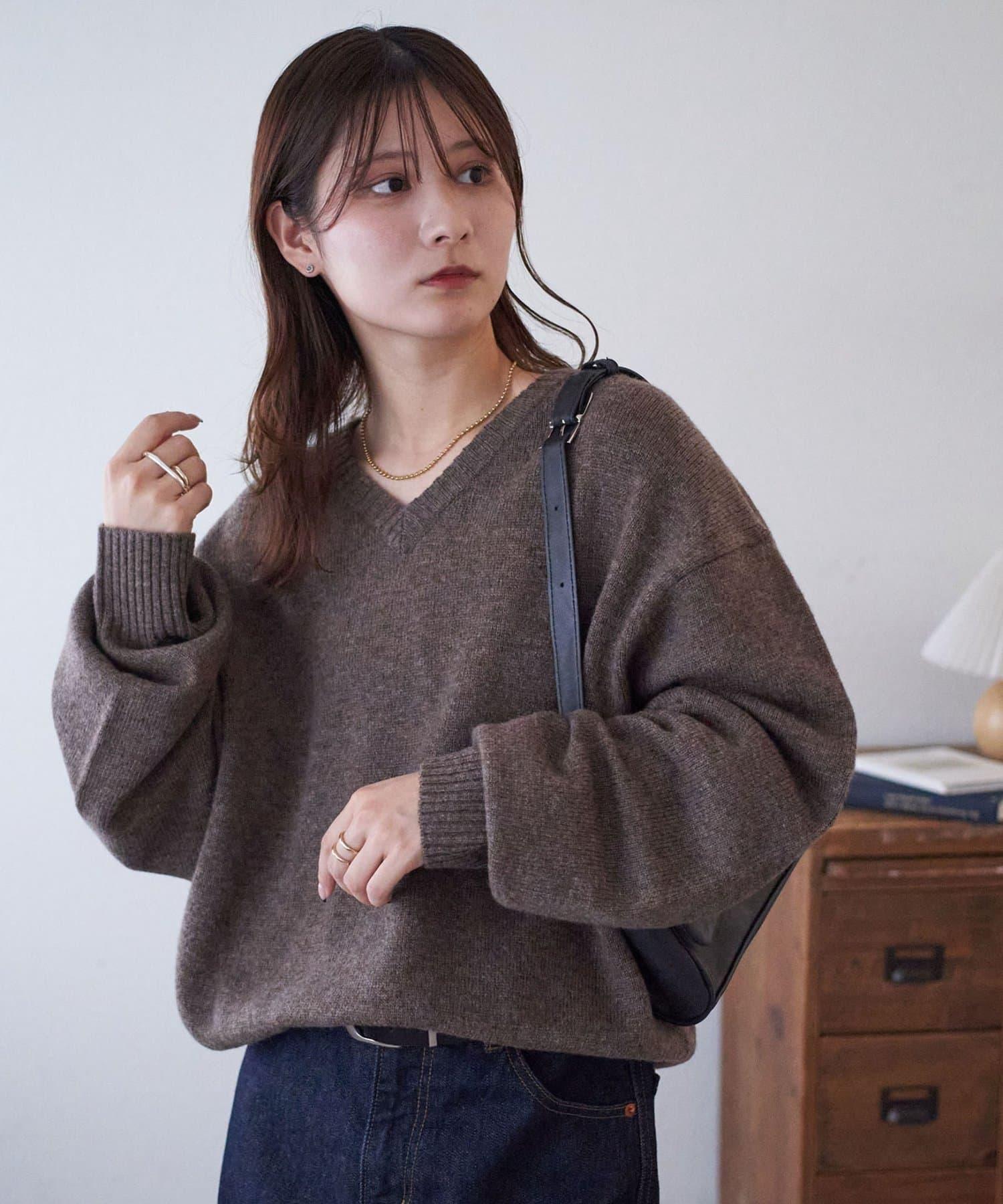 美利奴羊毛 V 領針織衫,精緻簡約。領口處的 V 形線條使臉部看起來乾淨利落,而基本款的外觀則給人優雅成熟的印象。寬鬆的剪裁略顯寬鬆,不會過於突顯身體線條。袖口和下襬採用羅紋設計,自然貼身,同時增加了整體輪廓的立體感。