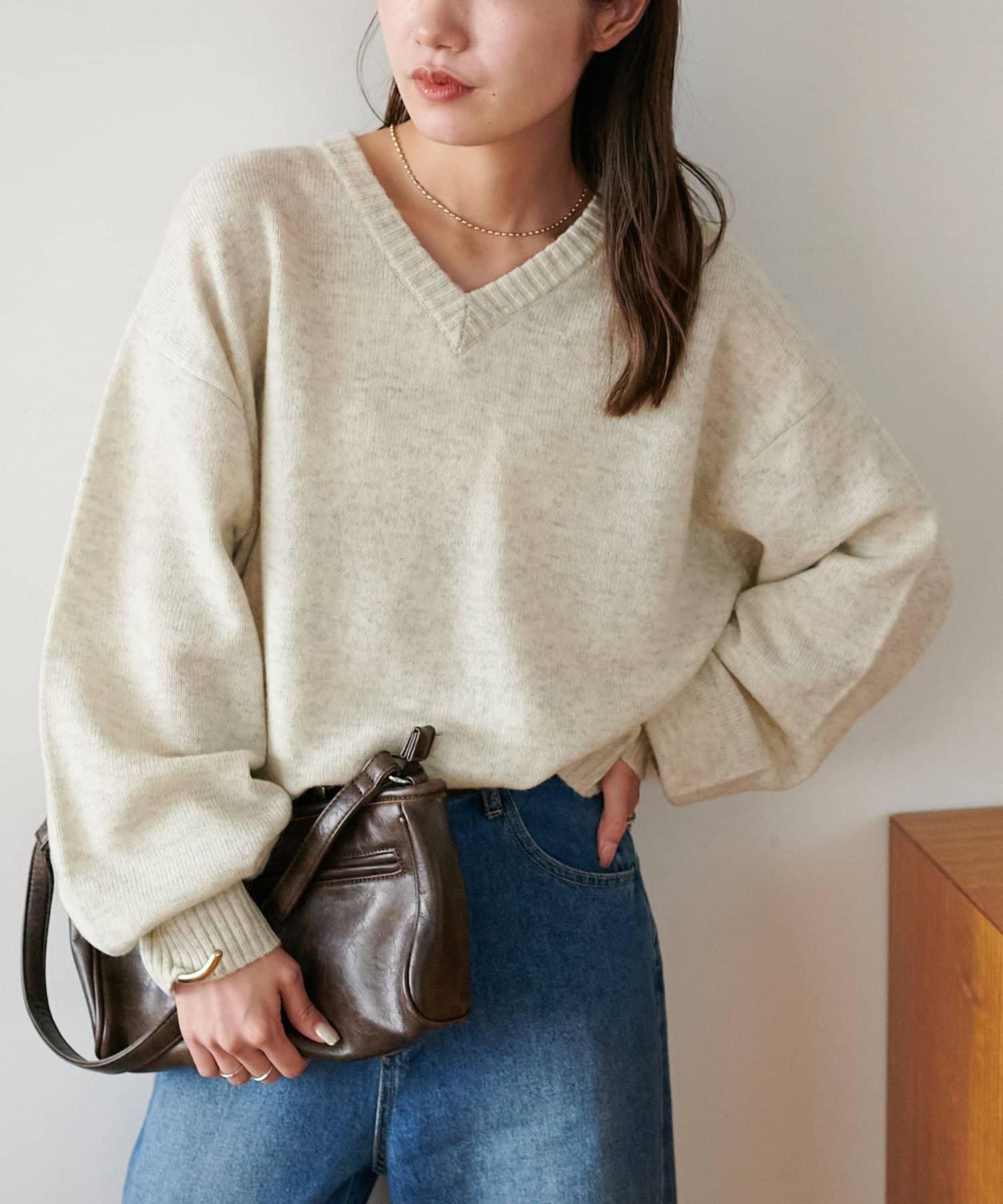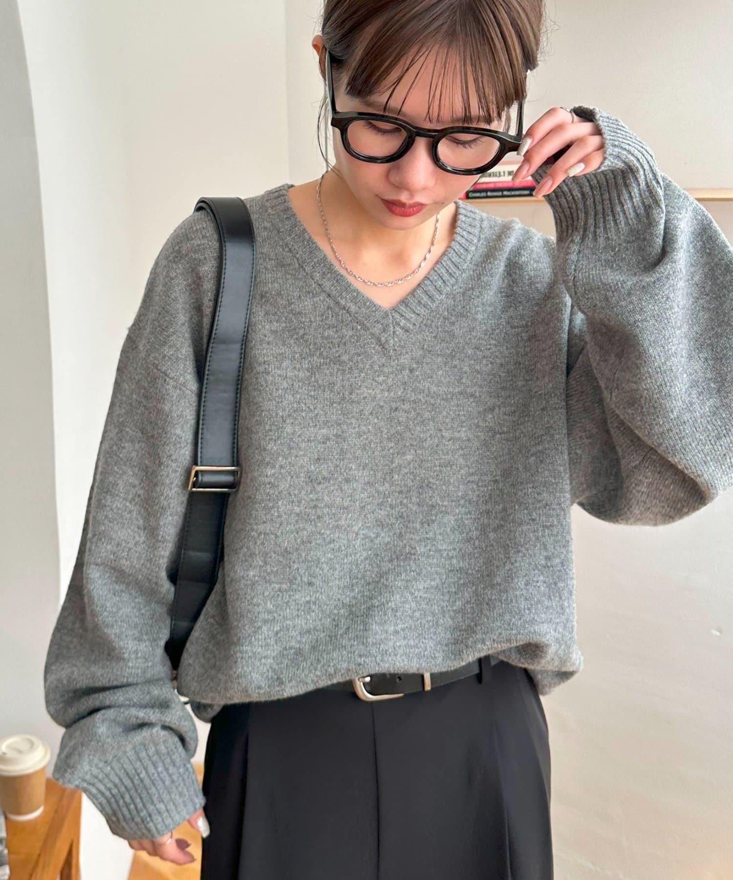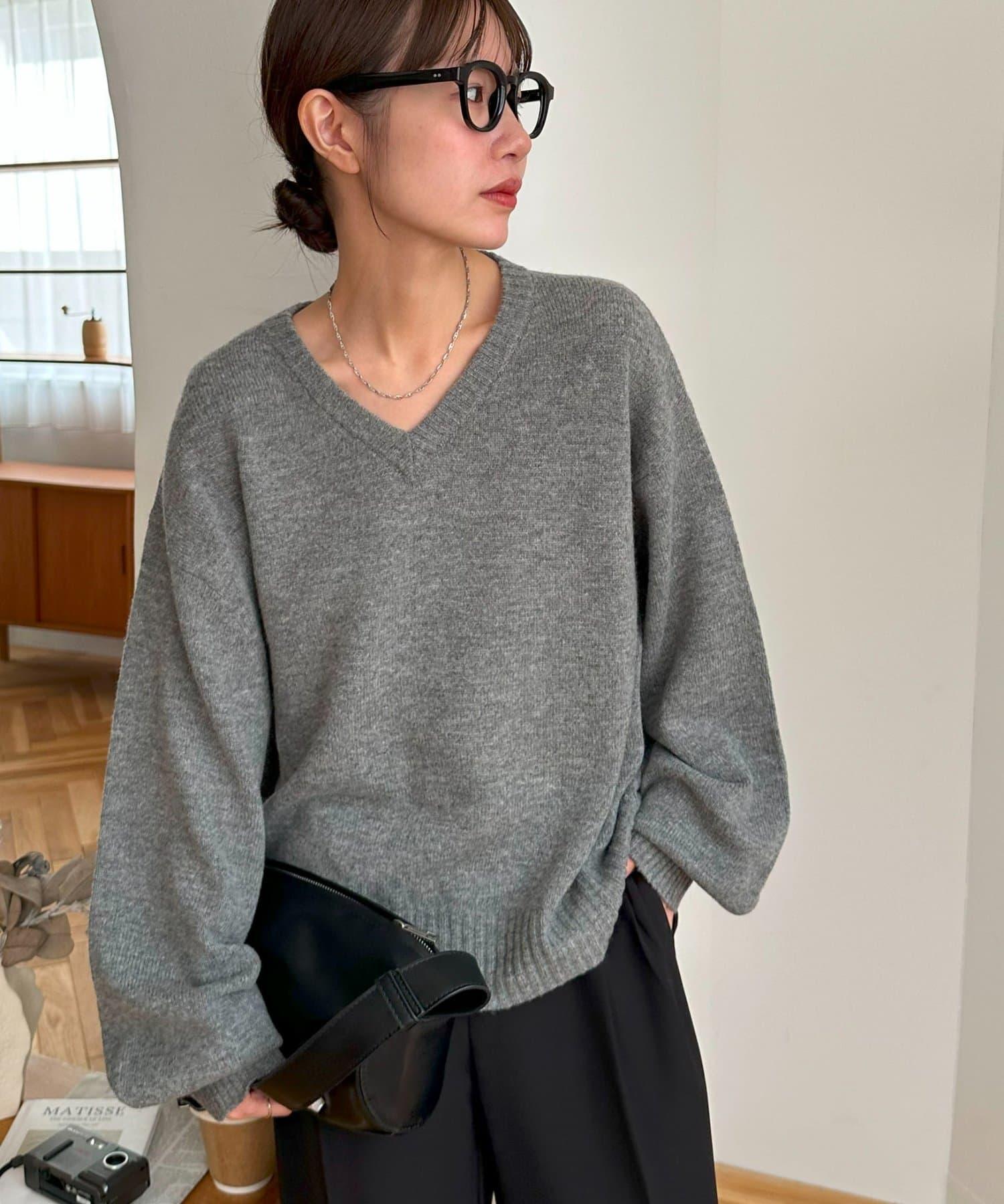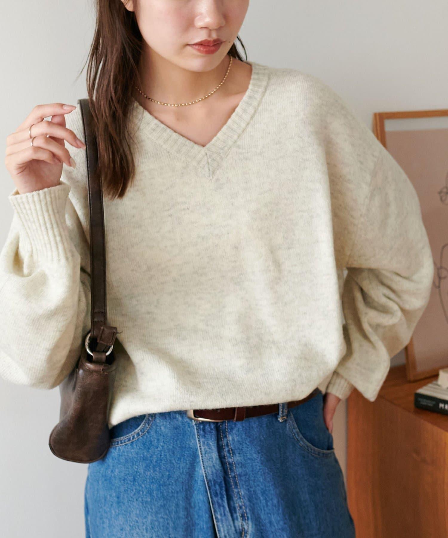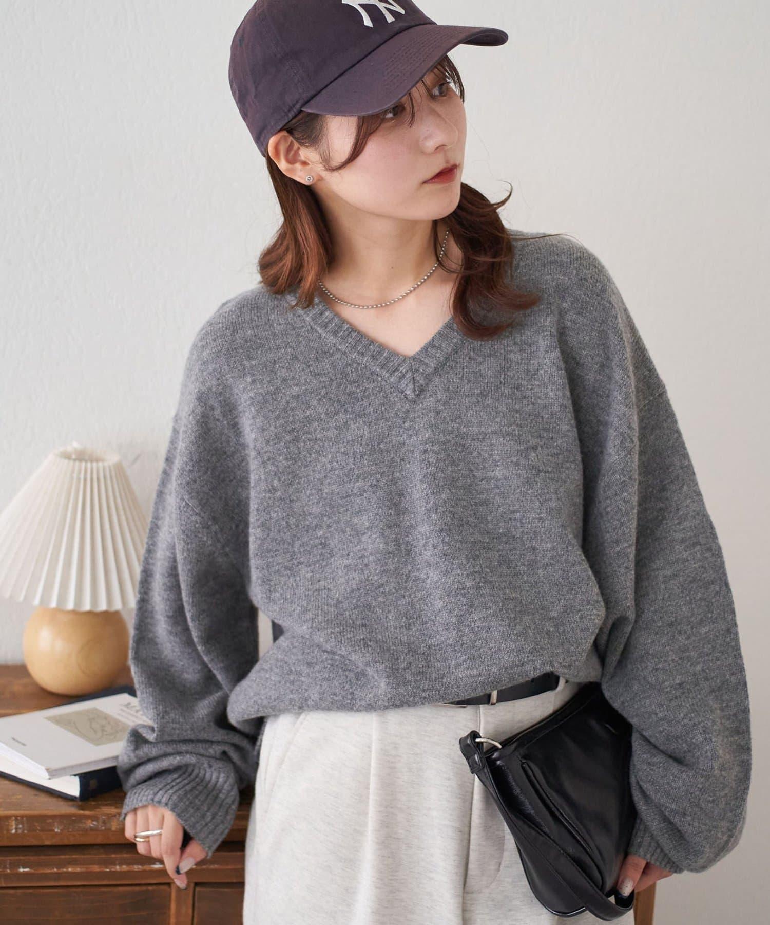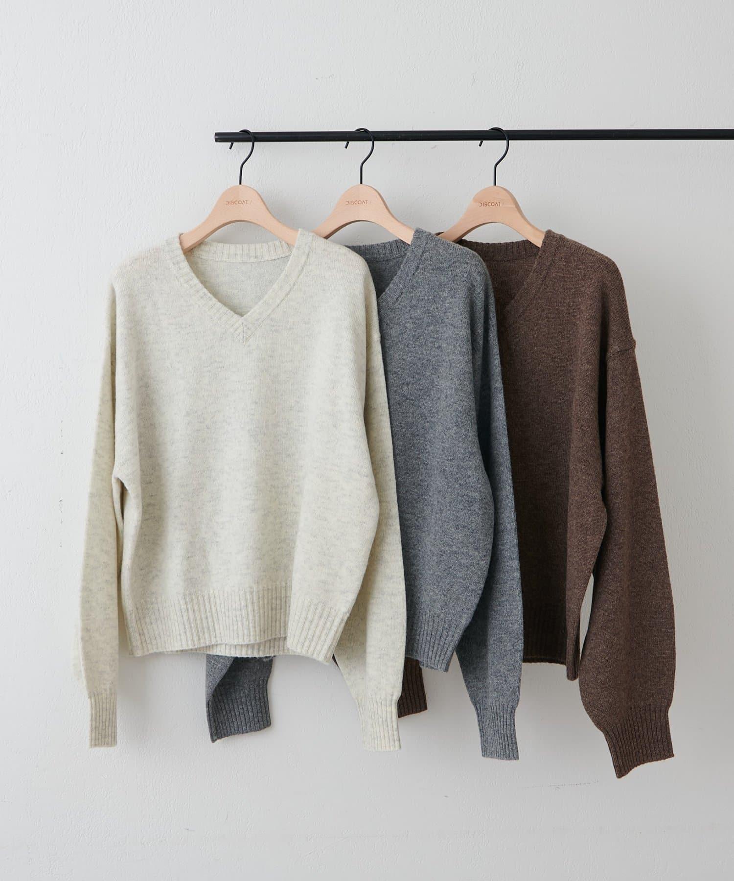 美利奴羊毛 V 領針織衫,精緻簡約。領口處的 V 形線條使臉部看起來乾淨利落,而基本款的外觀則給人優雅成熟的印象。寬鬆的剪裁略顯寬鬆,不會過於突顯身體線條。袖口和下襬採用羅紋設計,自然貼身,同時增加了整體輪廓的立體感。