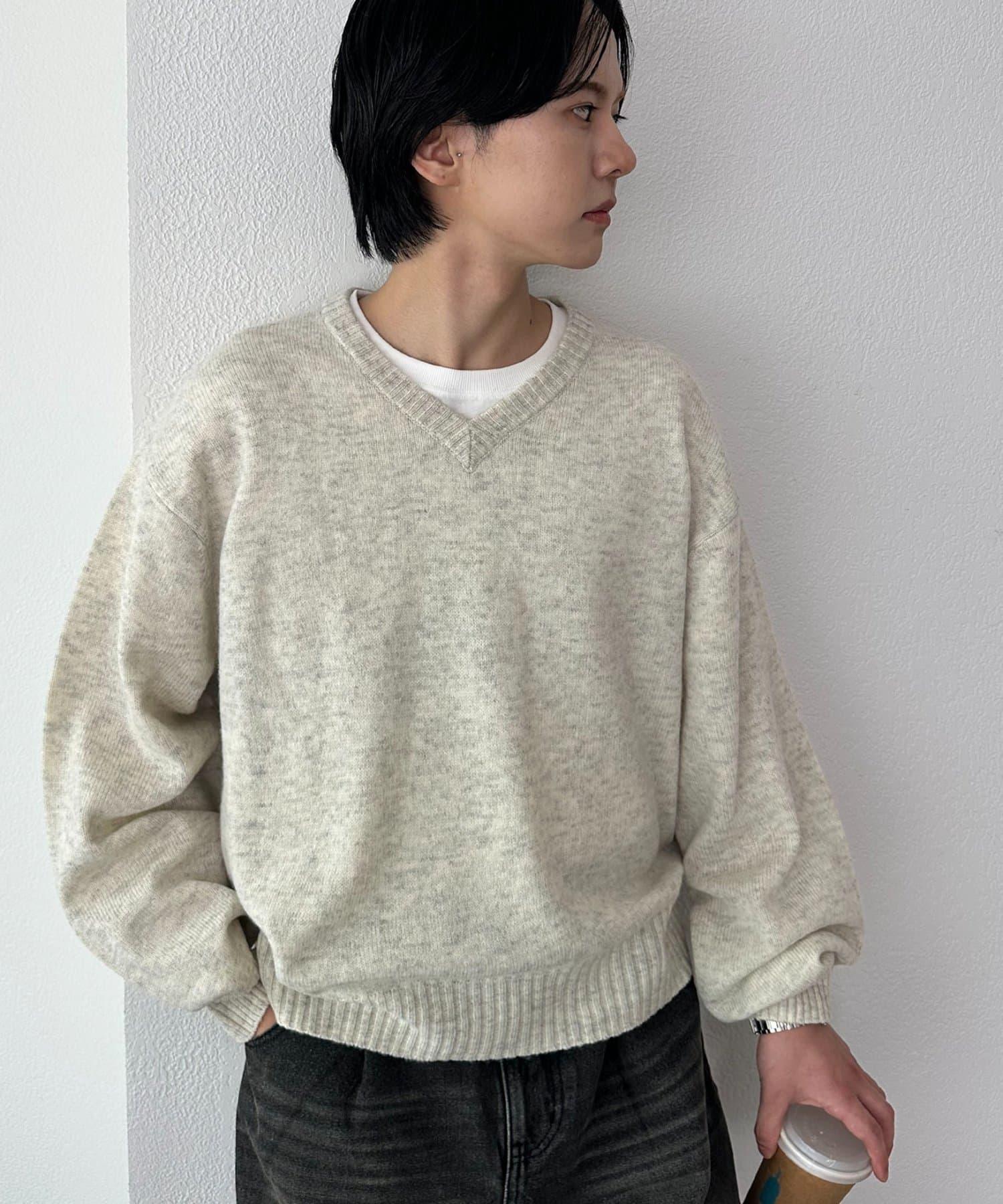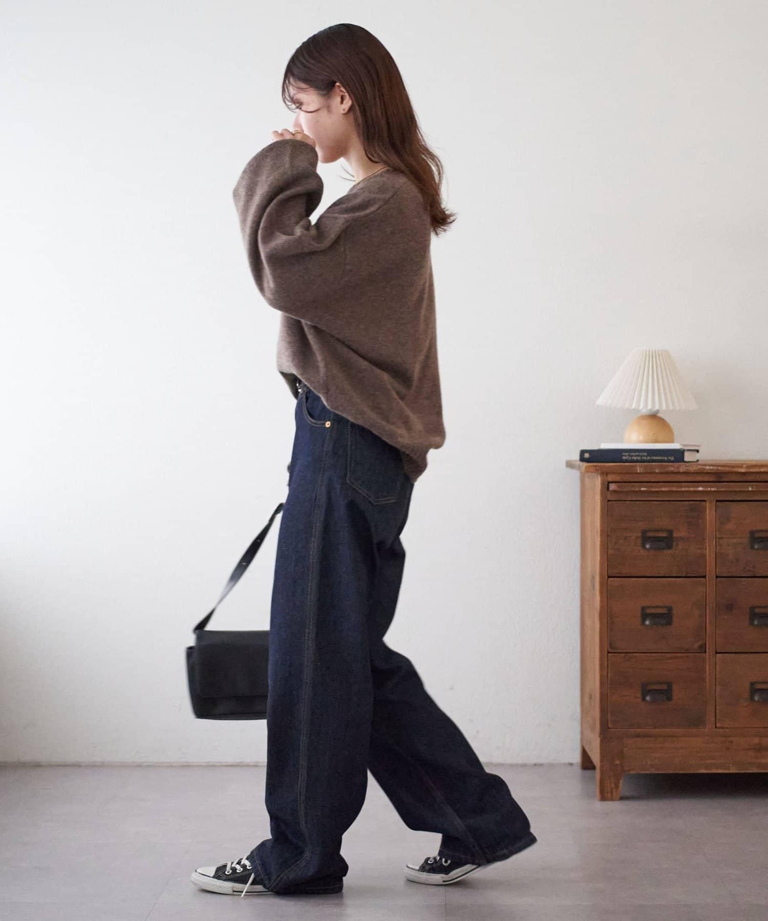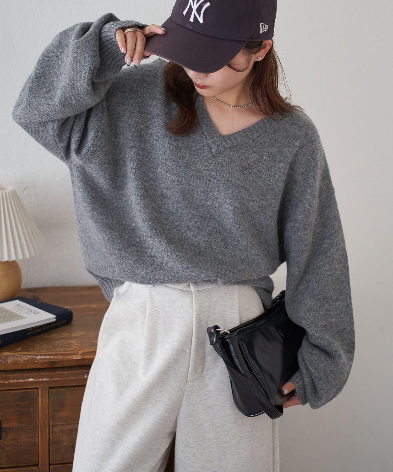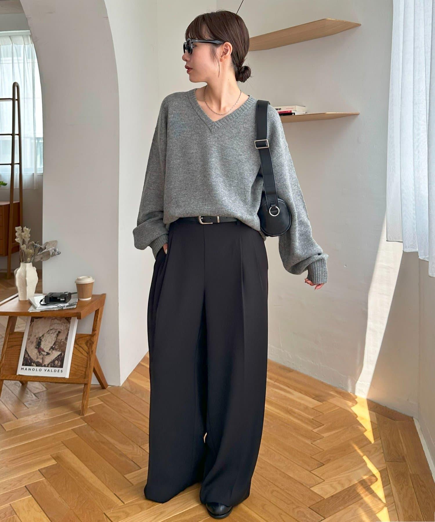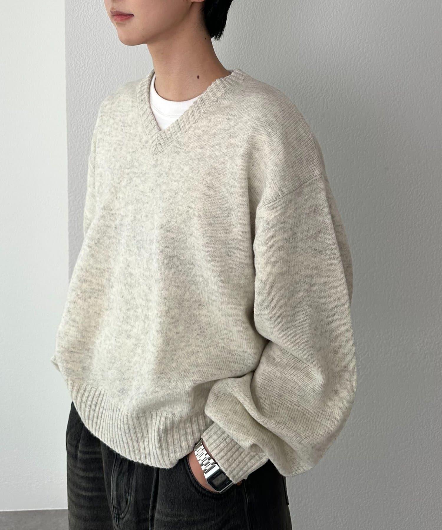 美利奴羊毛 V 領針織衫,精緻簡約。領口處的 V 形線條使臉部看起來乾淨利落,而基本款的外觀則給人優雅成熟的印象。寬鬆的剪裁略顯寬鬆,不會過於突顯身體線條。袖口和下襬採用羅紋設計,自然貼身,同時增加了整體輪廓的立體感。
