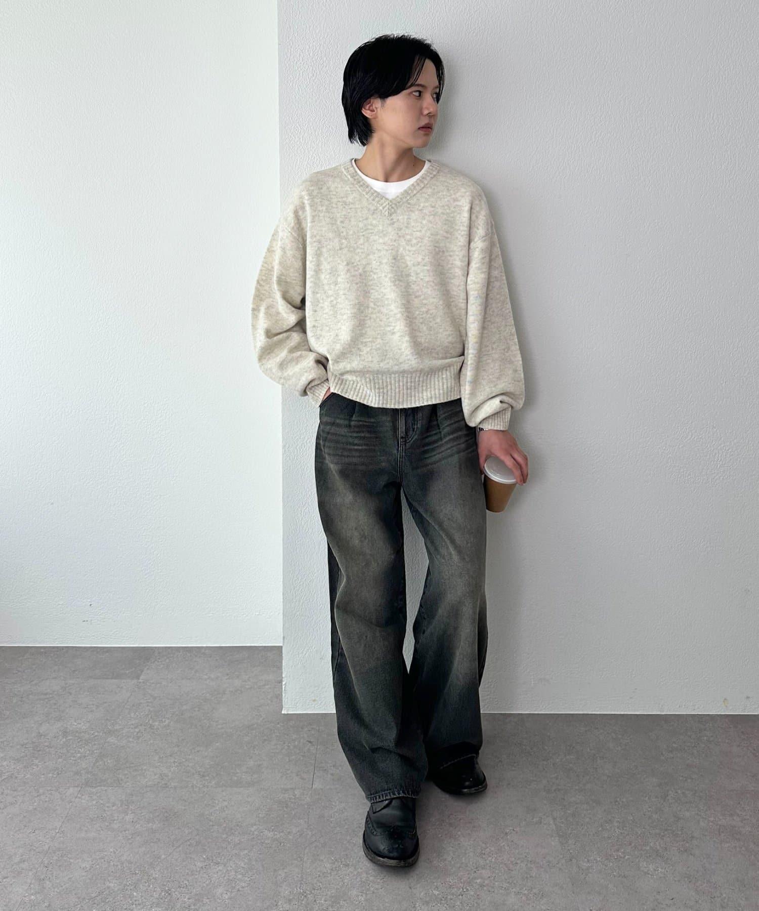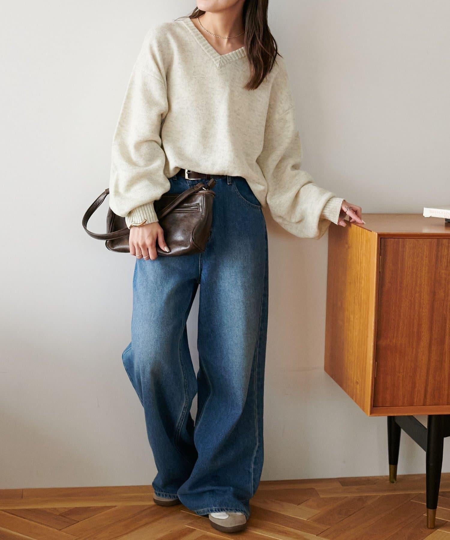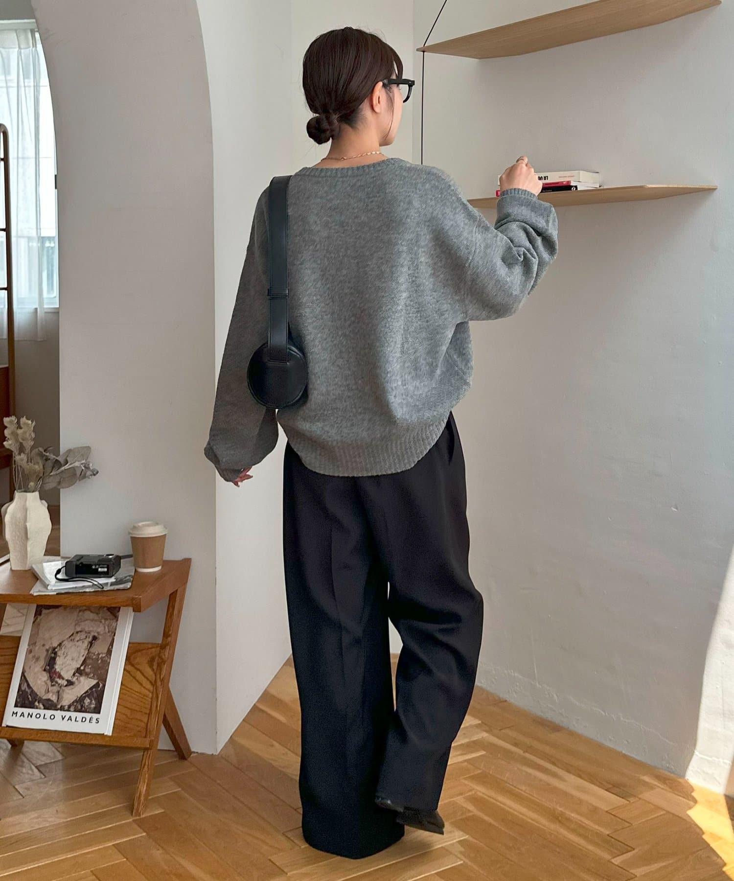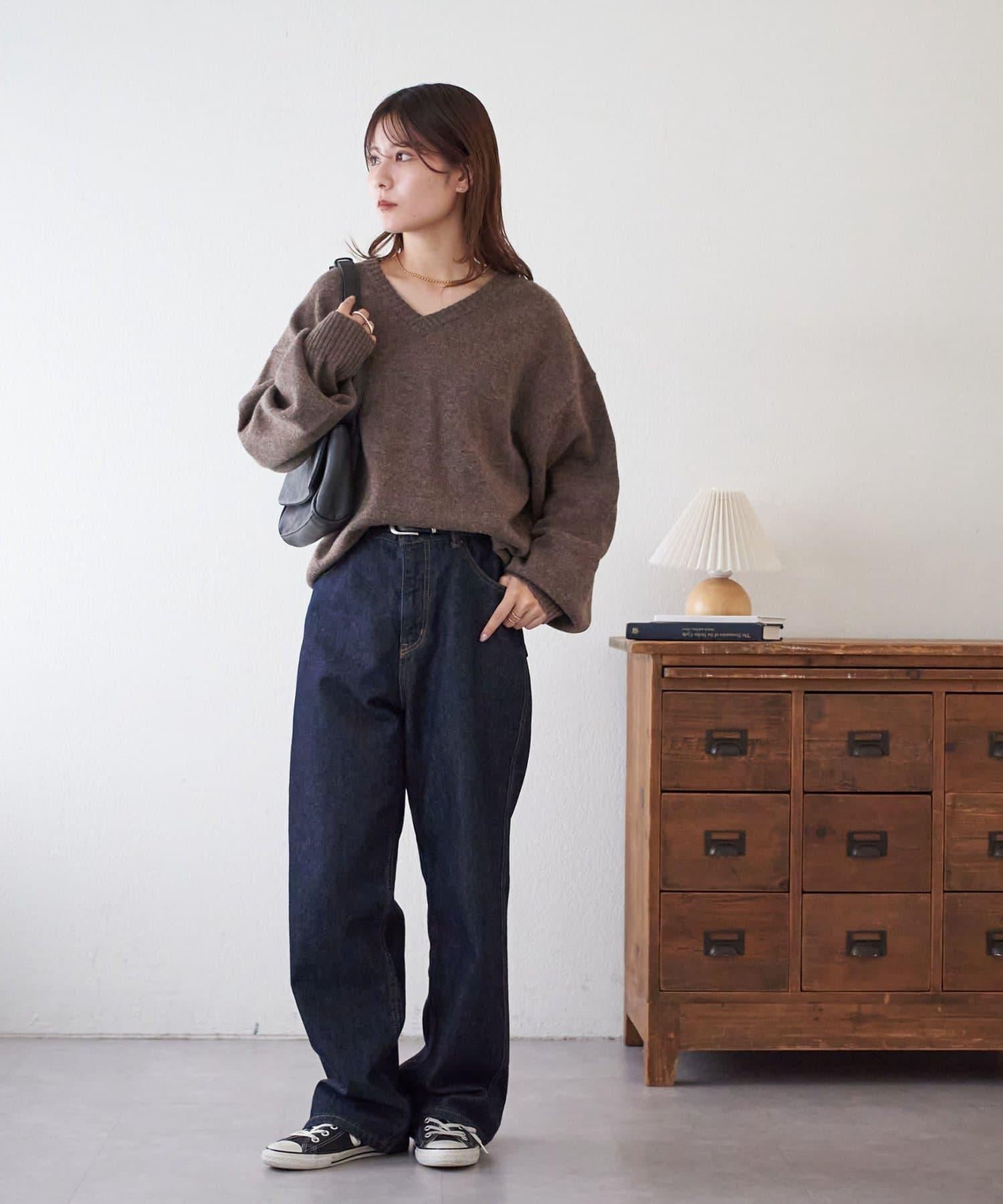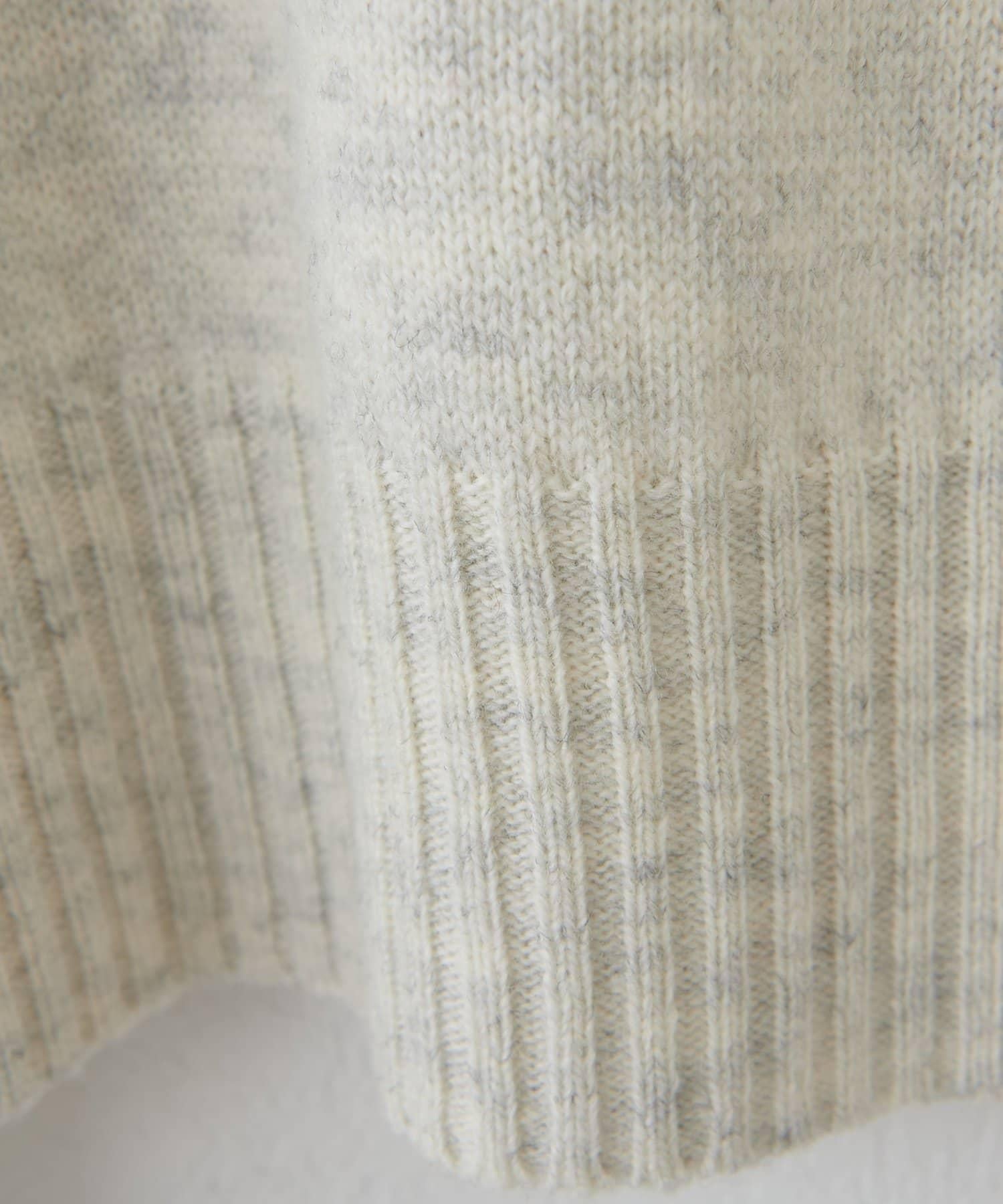 美利奴羊毛 V 領針織衫,精緻簡約。領口處的 V 形線條使臉部看起來乾淨利落,而基本款的外觀則給人優雅成熟的印象。寬鬆的剪裁略顯寬鬆,不會過於突顯身體線條。袖口和下襬採用羅紋設計,自然貼身,同時增加了整體輪廓的立體感。