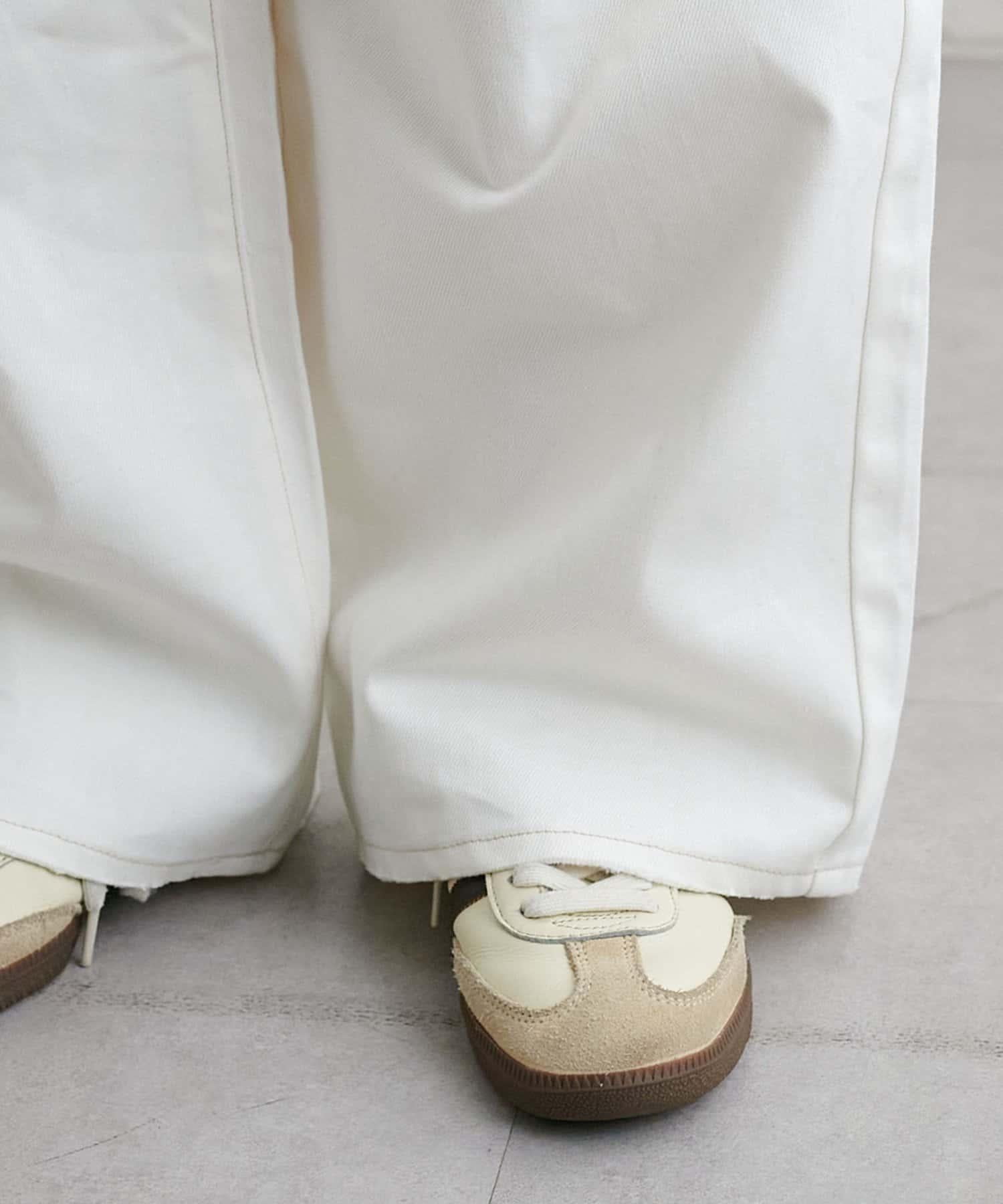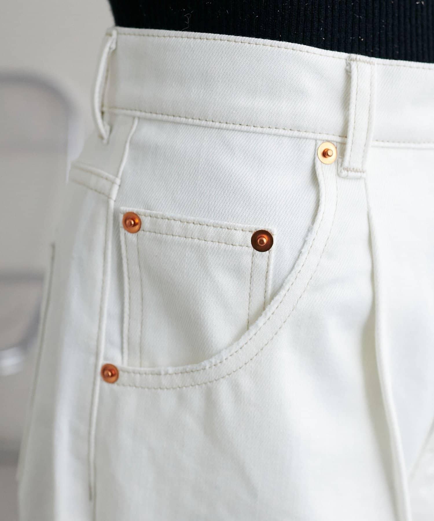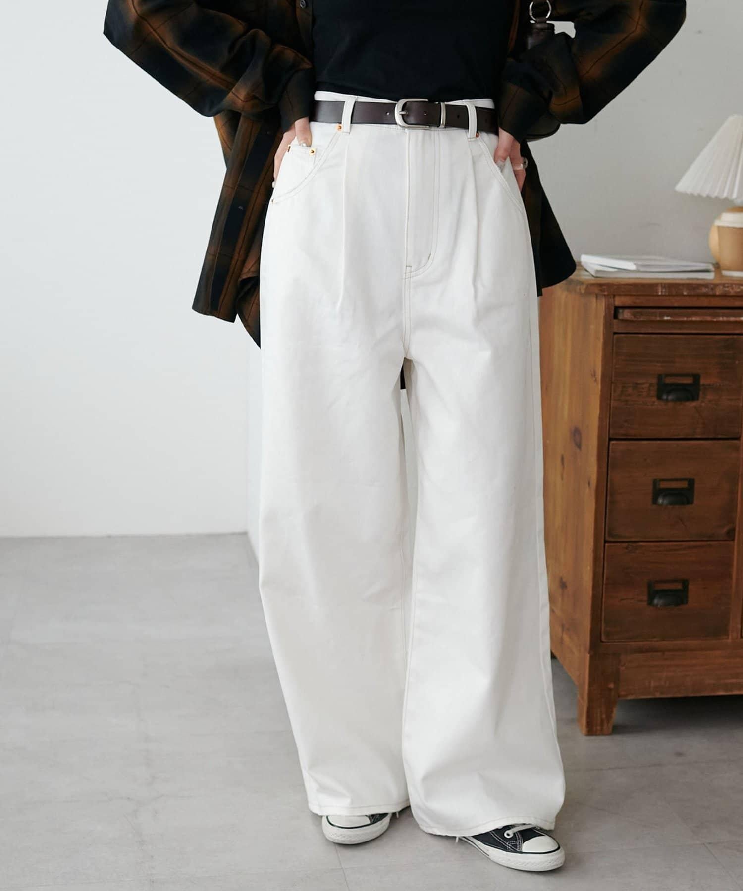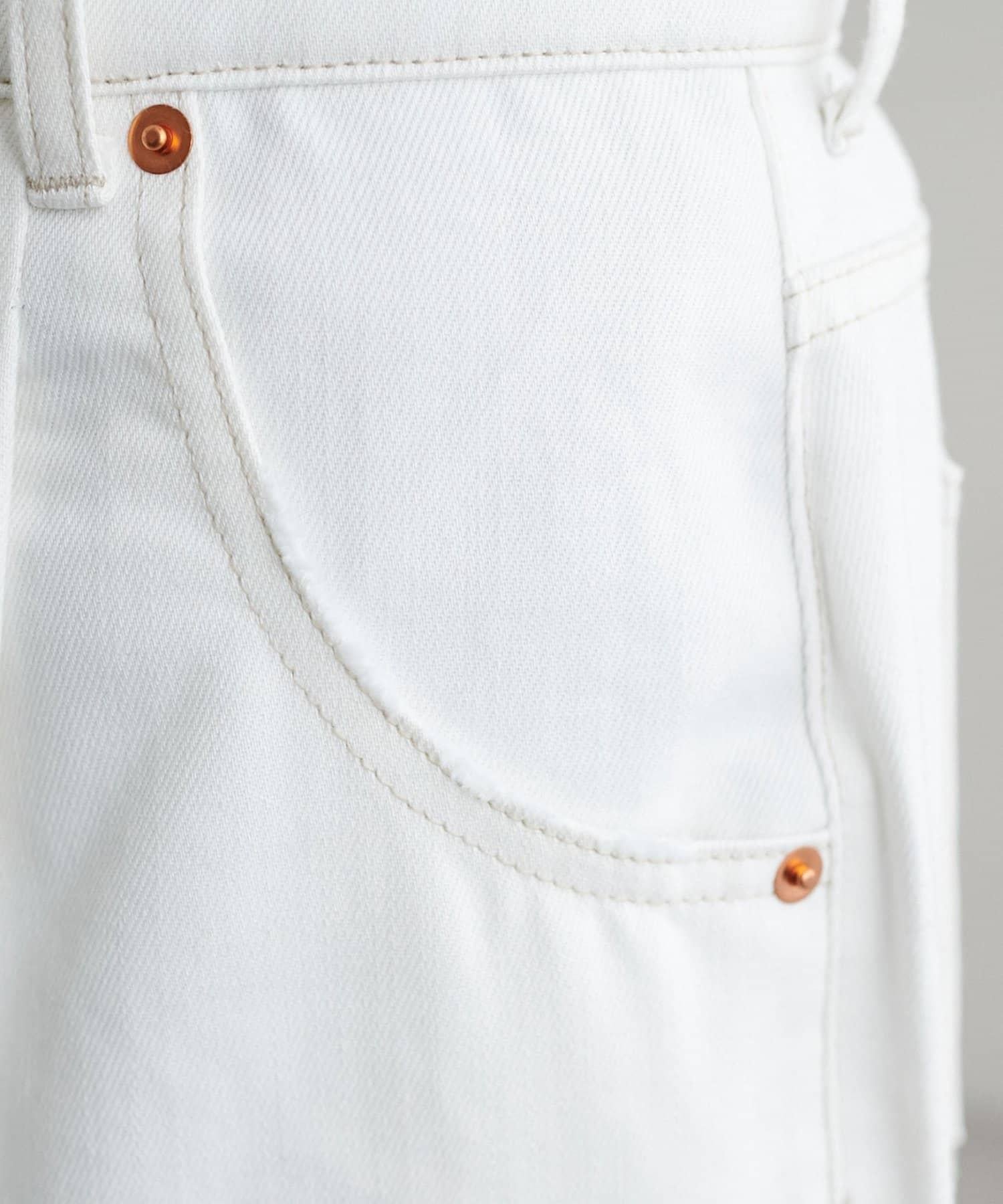白色牛仔長褲,寬直筒剪裁。
