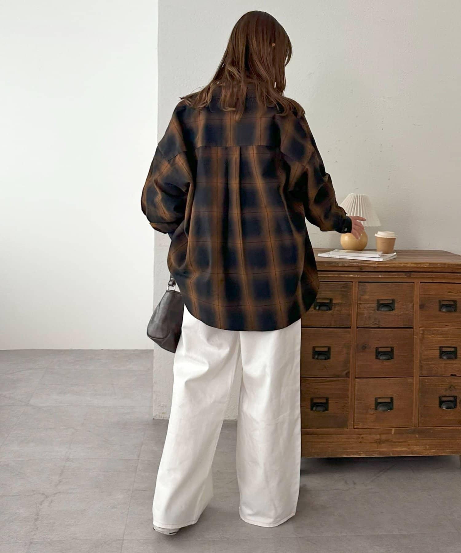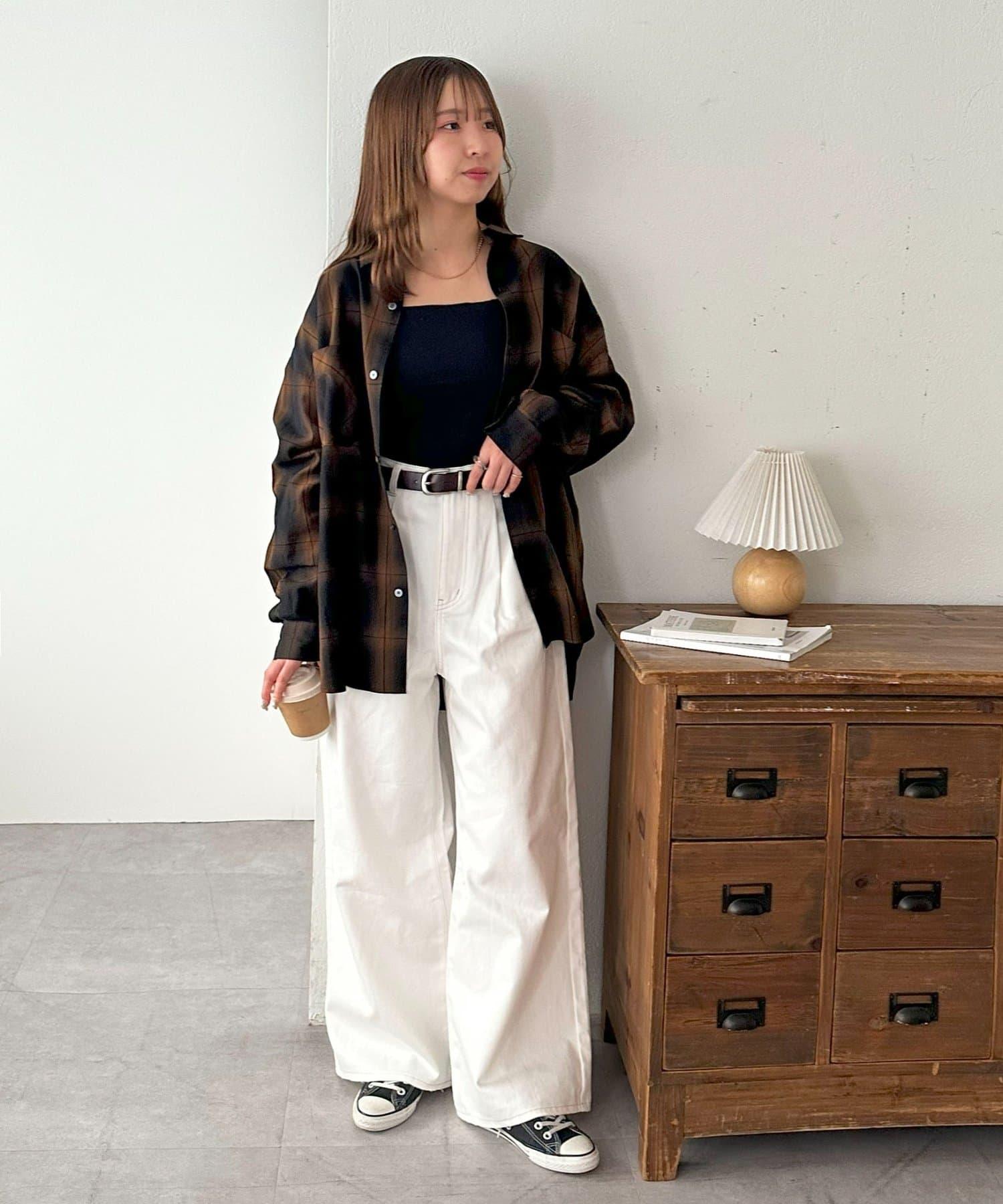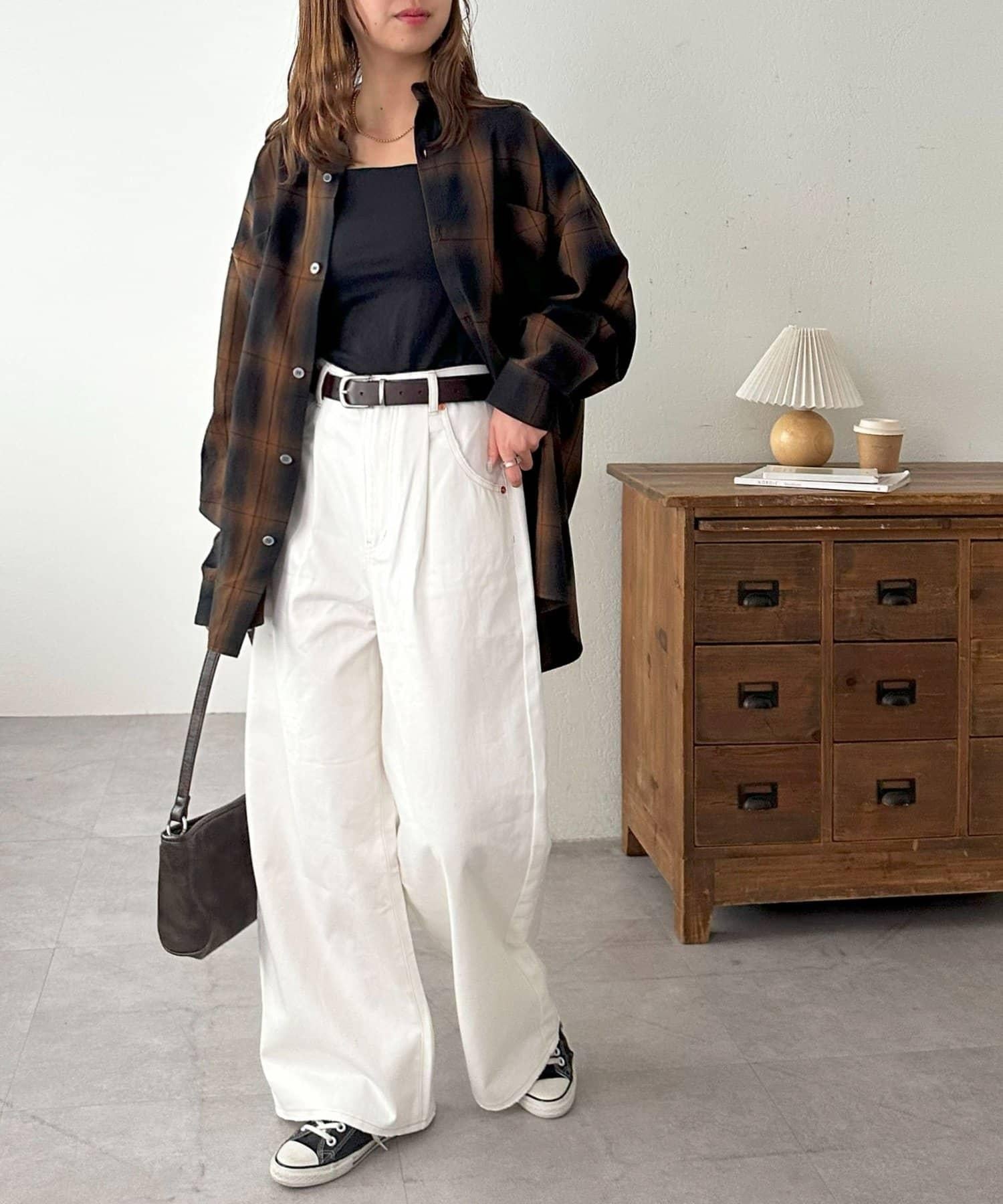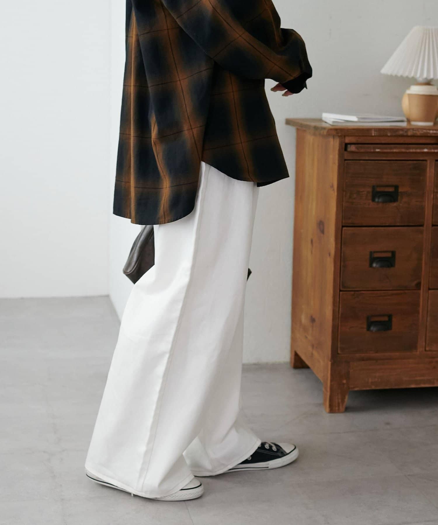 170cm男職員(穿 L 碼):寬大的長褲給人腰部整潔的印象。