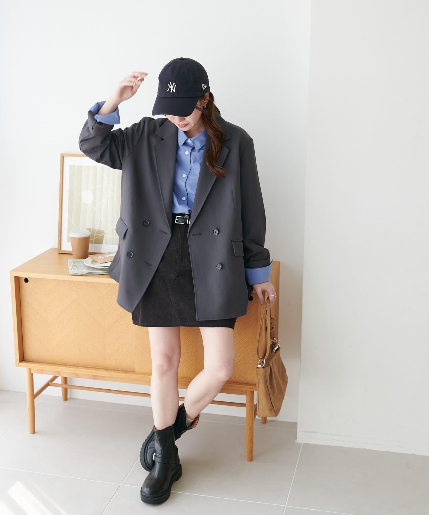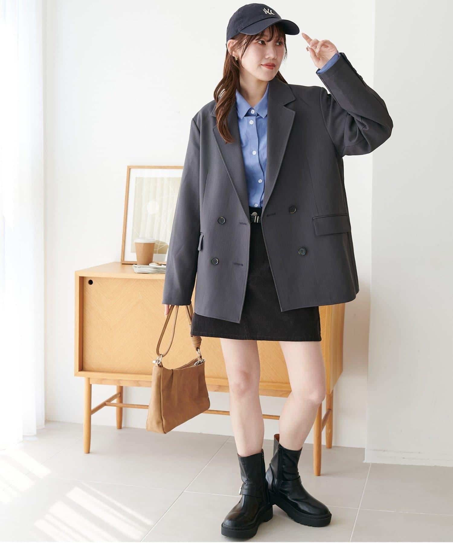 大紐扣和略顯誇張的剪裁營造出輕鬆、時尚的氛圍。