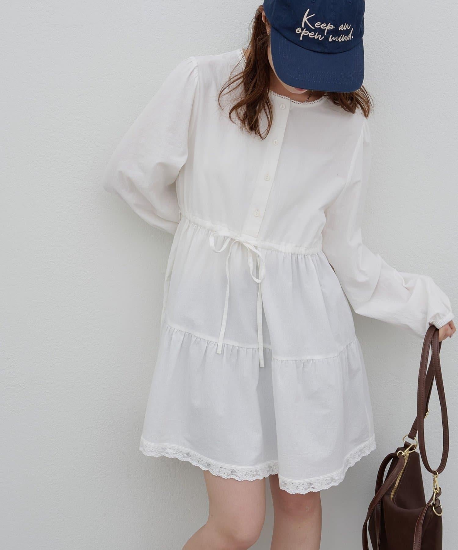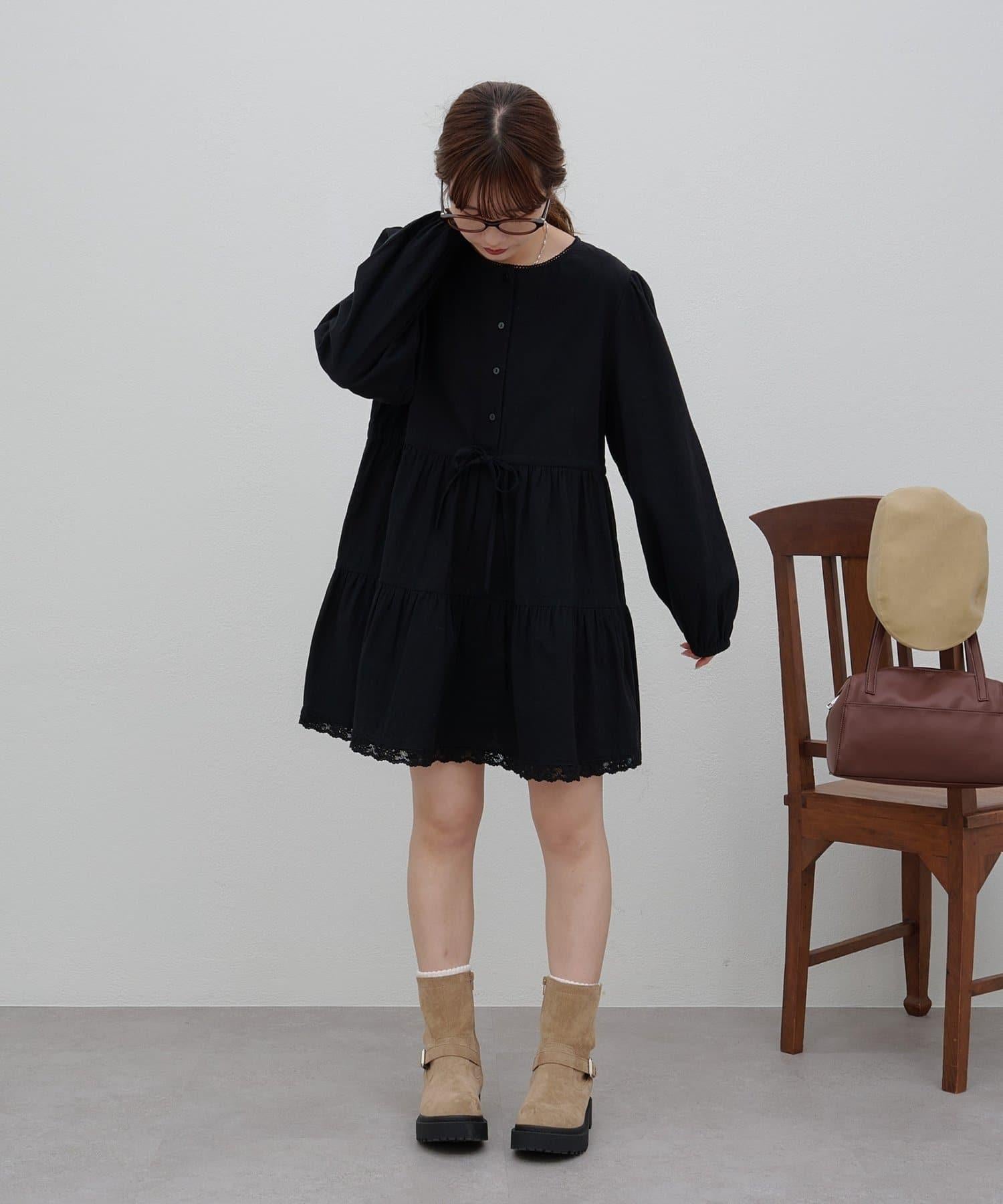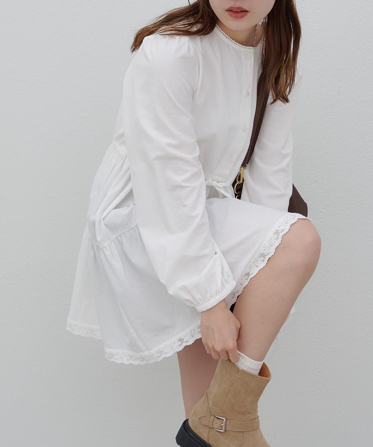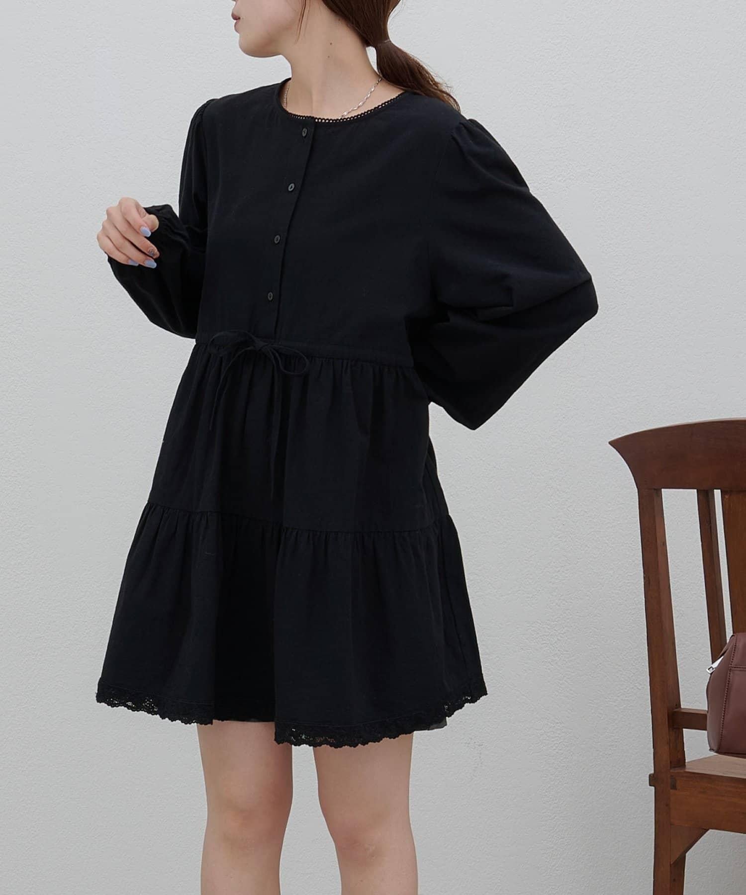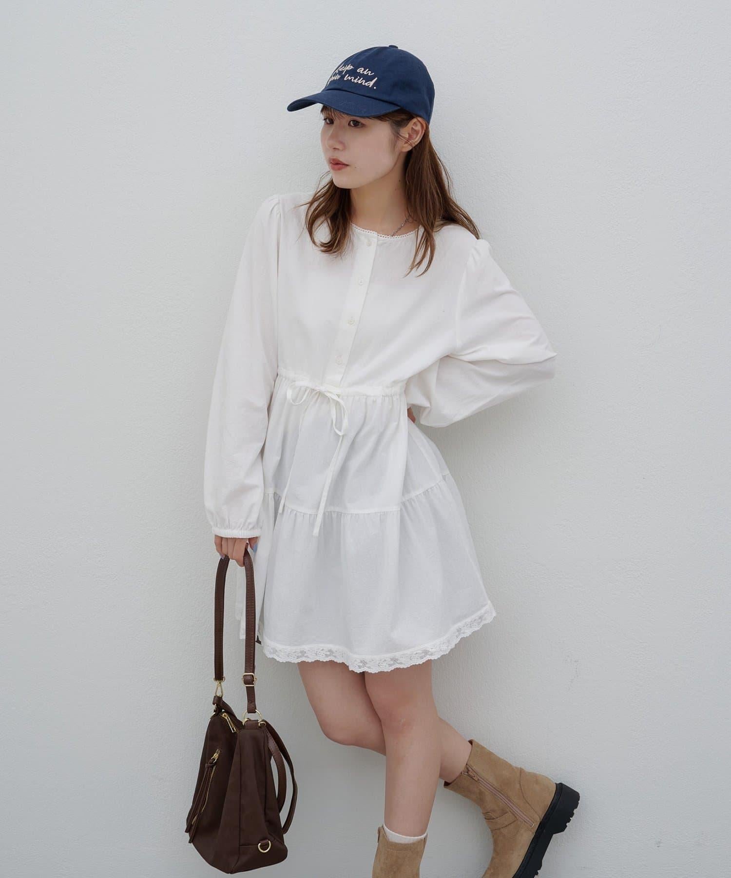 【Discoat】【umm.】下襬蕾絲層疊迷你連衣裙