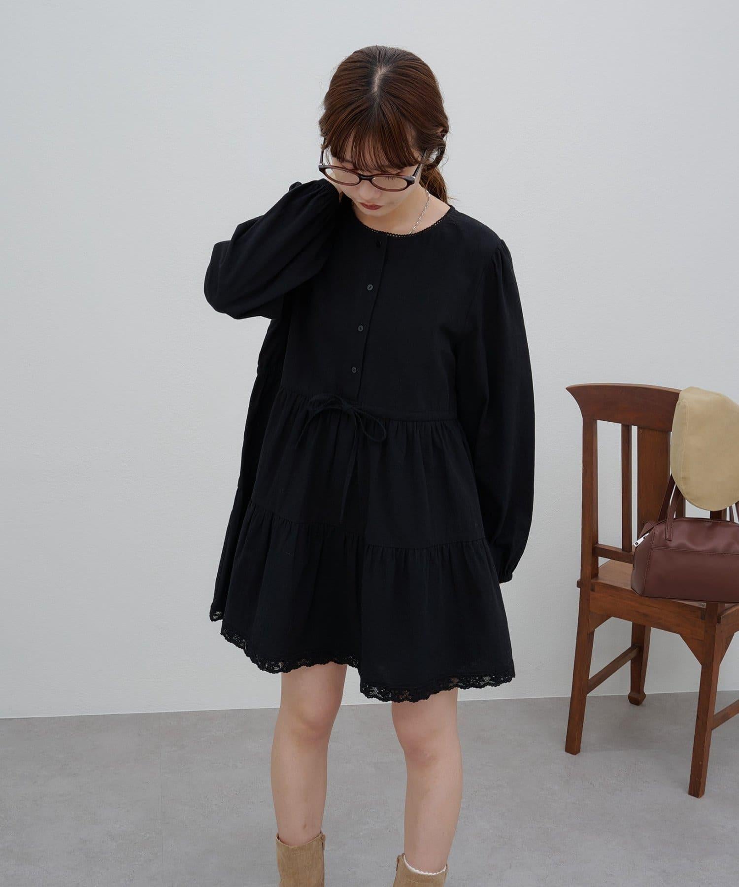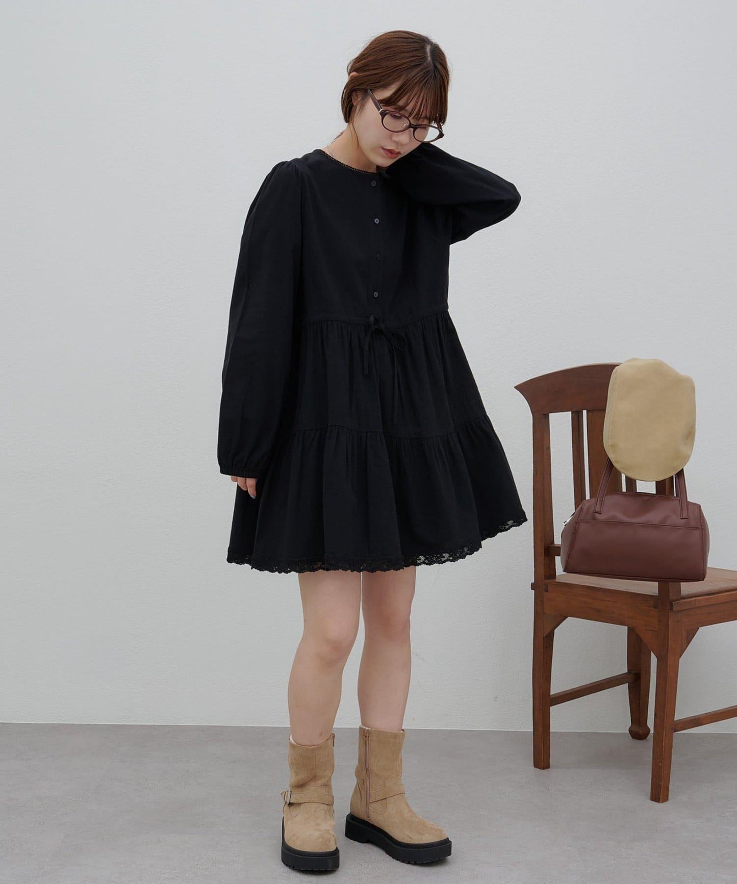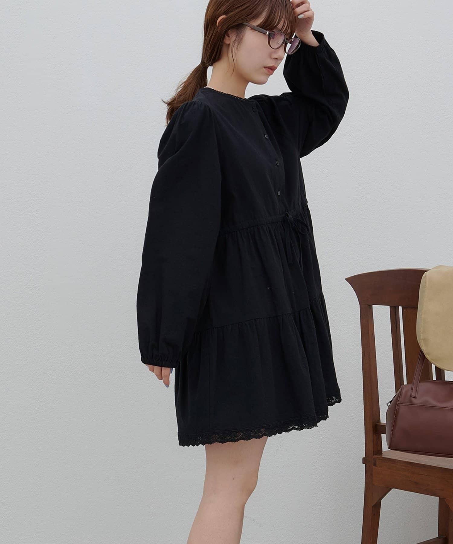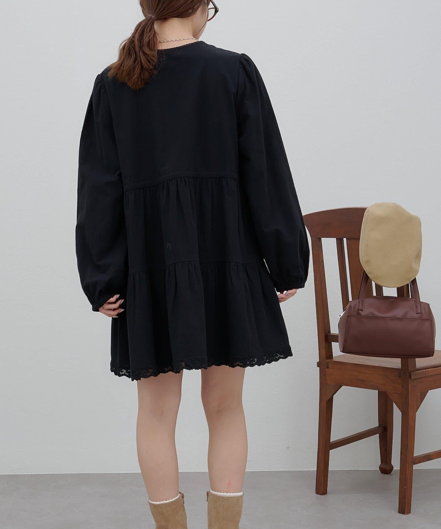 【Discoat】【umm.】下襬蕾絲層疊迷你連衣裙