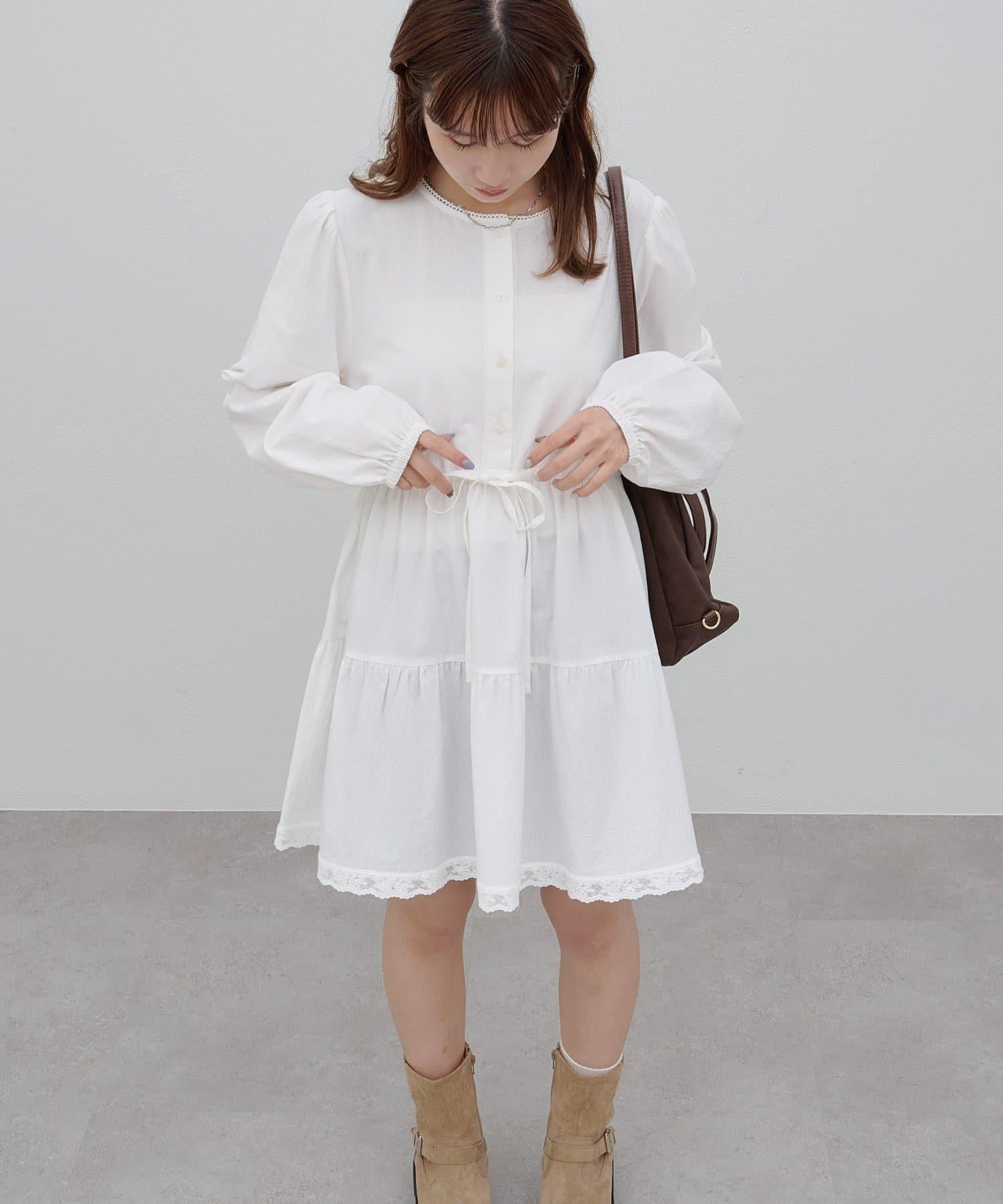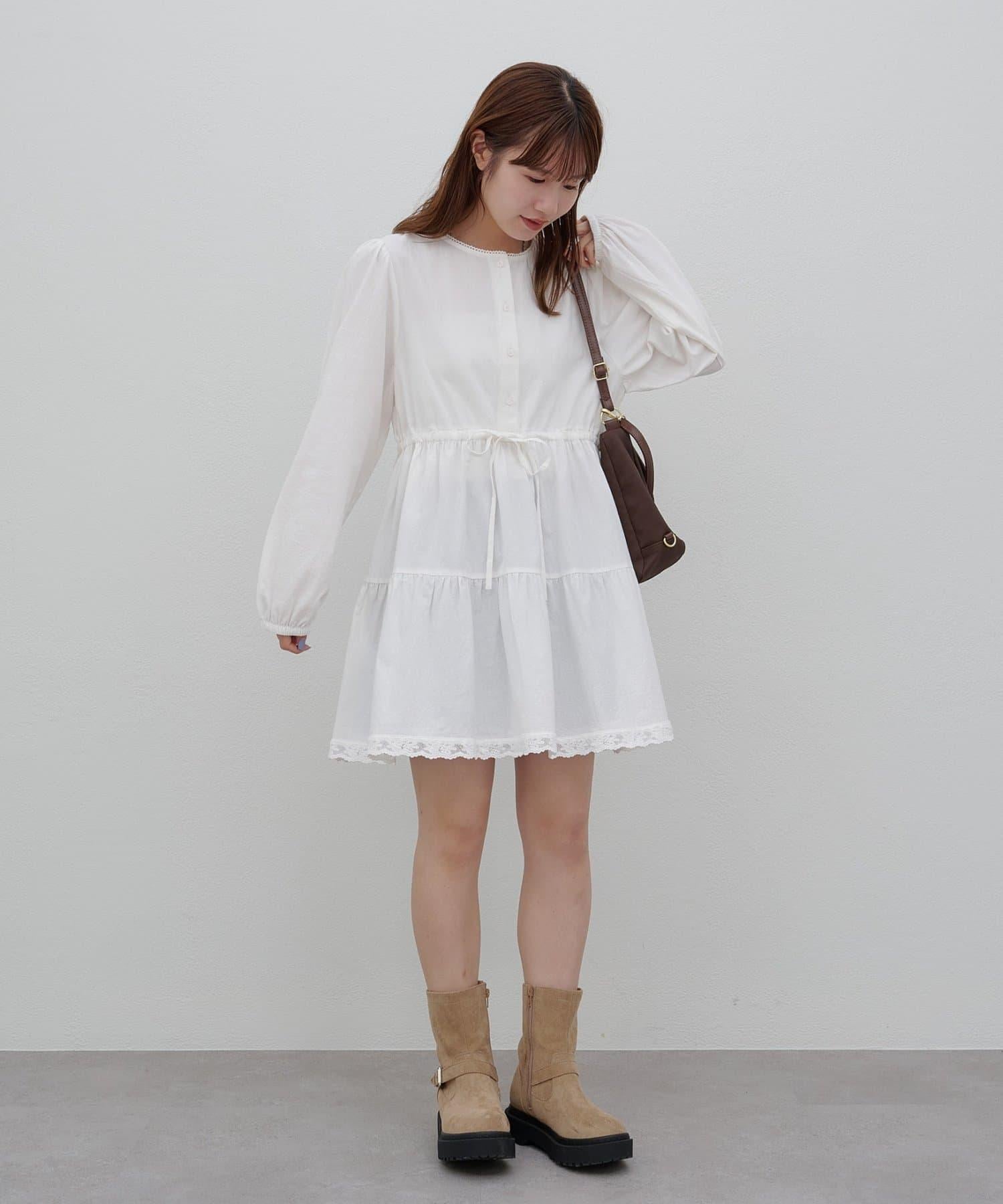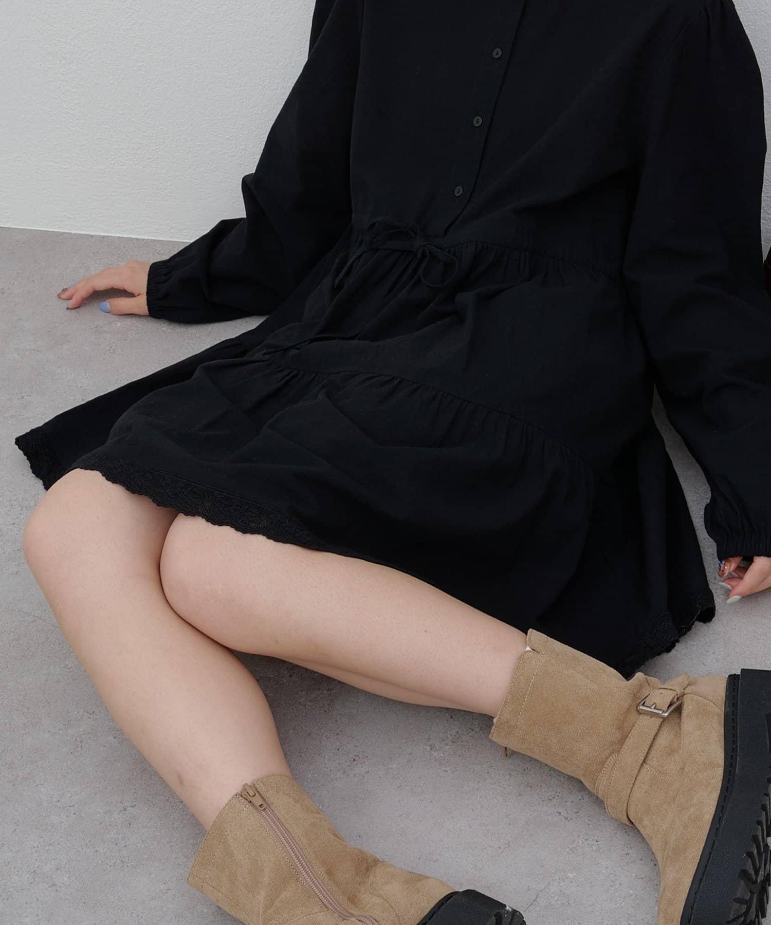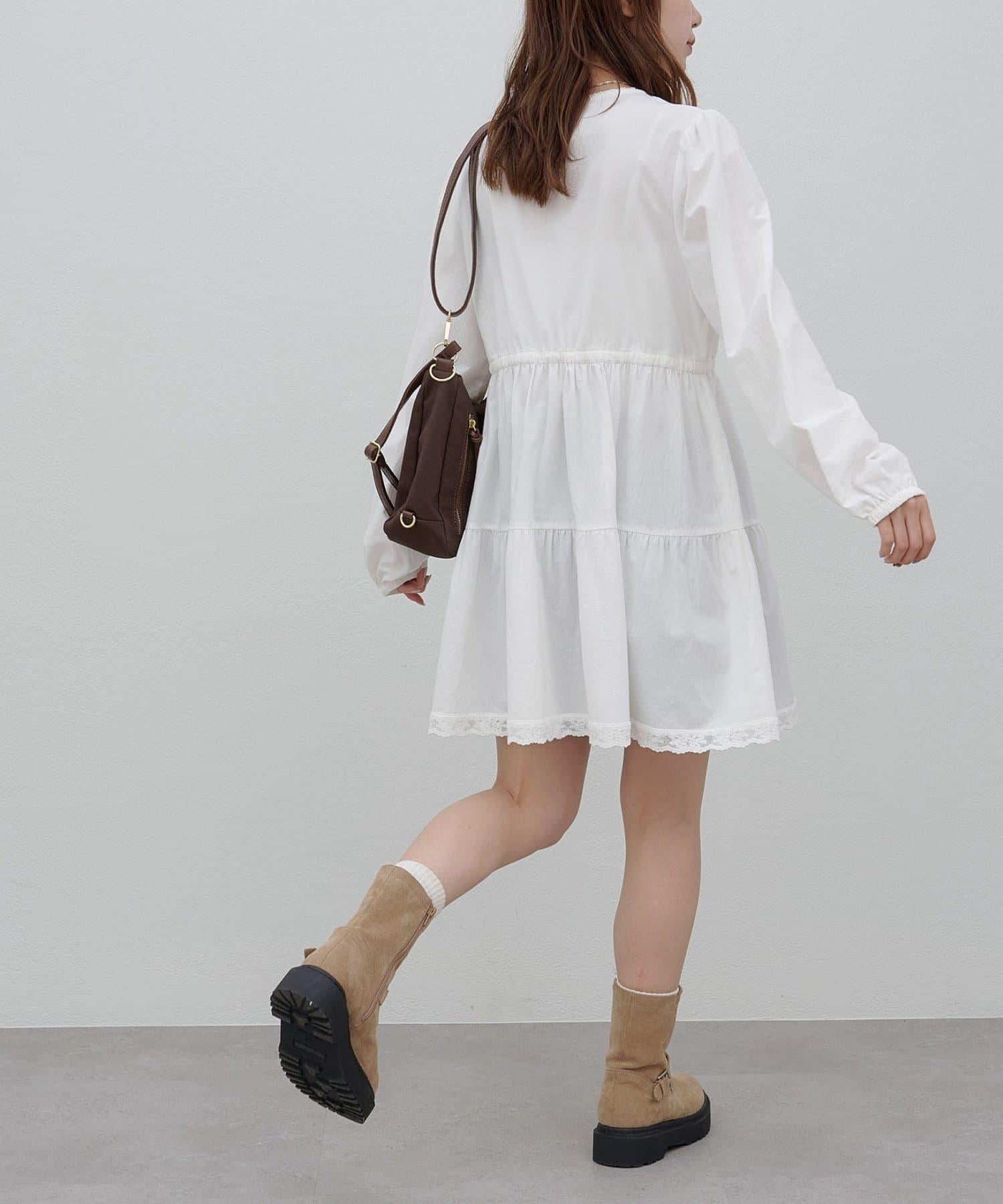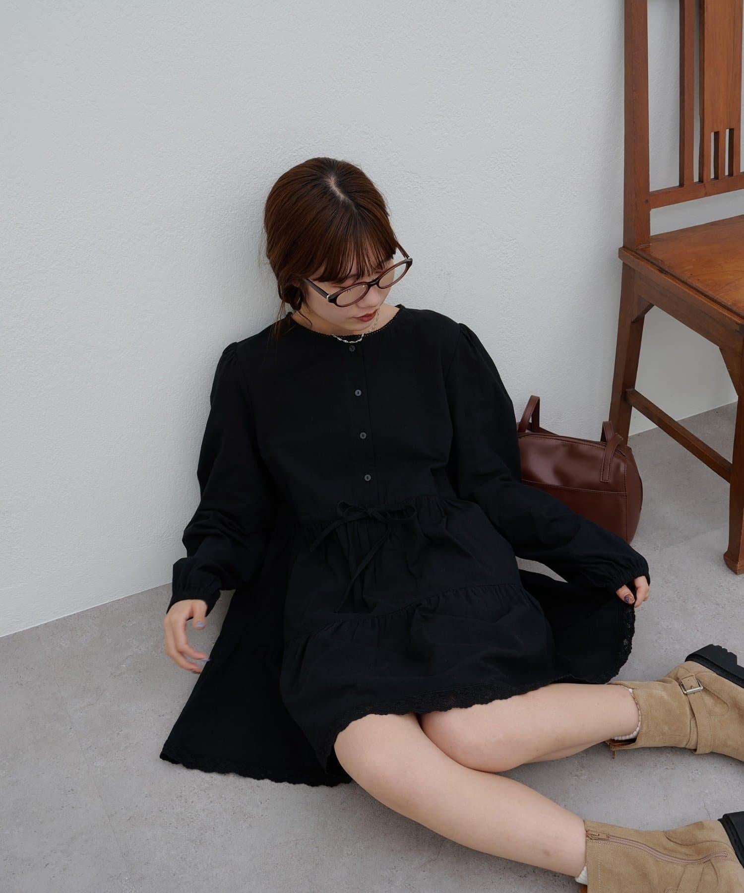 【Discoat】【umm.】下襬蕾絲層疊迷你連衣裙