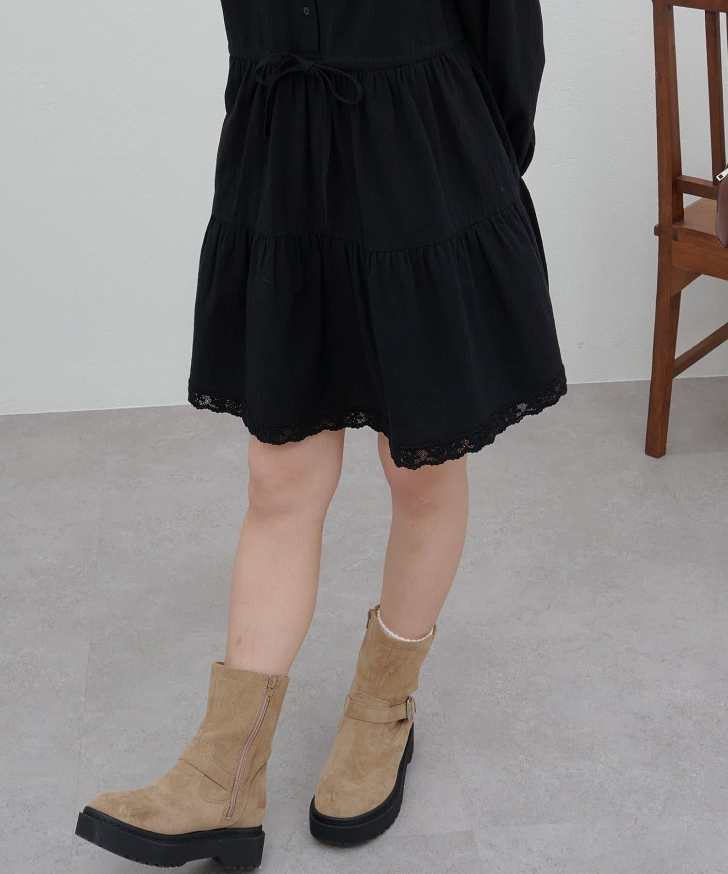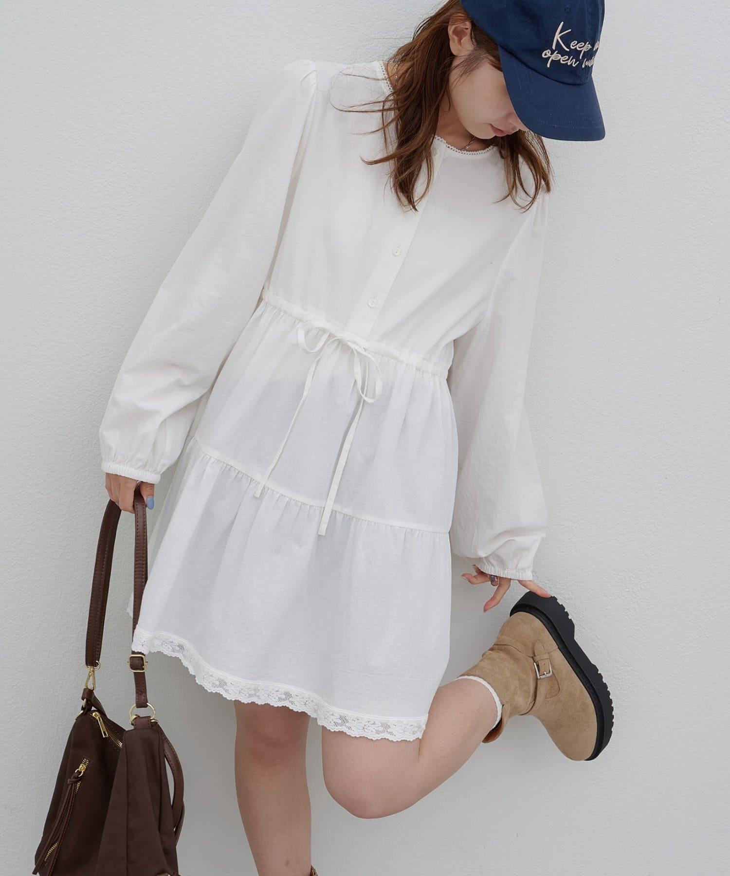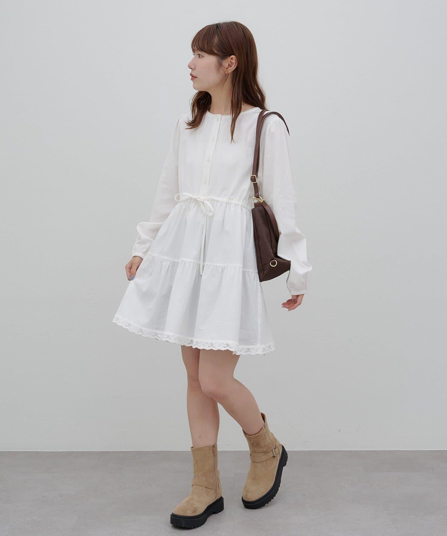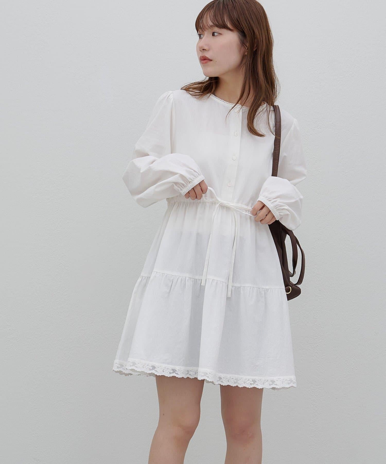 【Discoat】【umm.】下襬蕾絲層疊迷你連衣裙