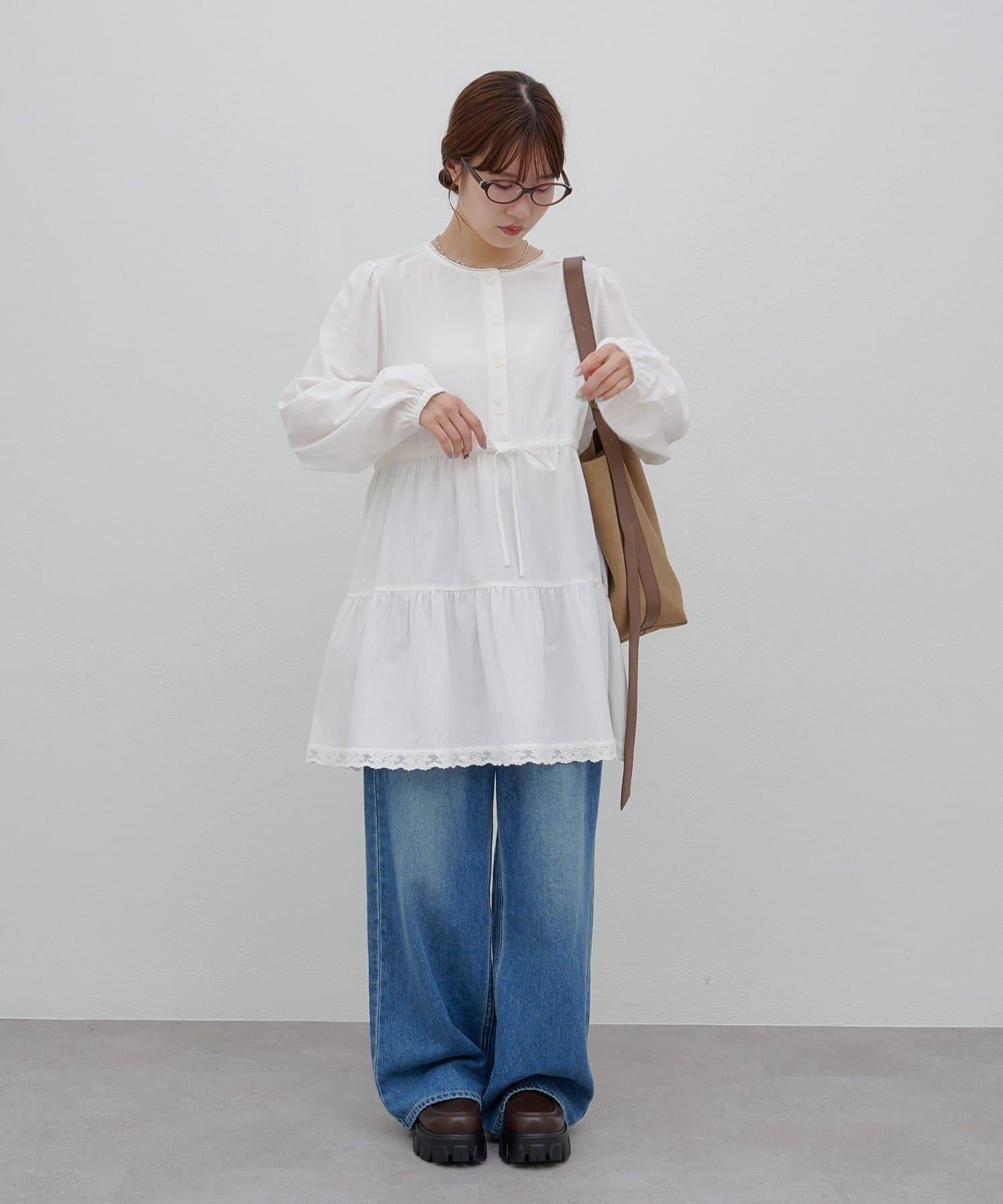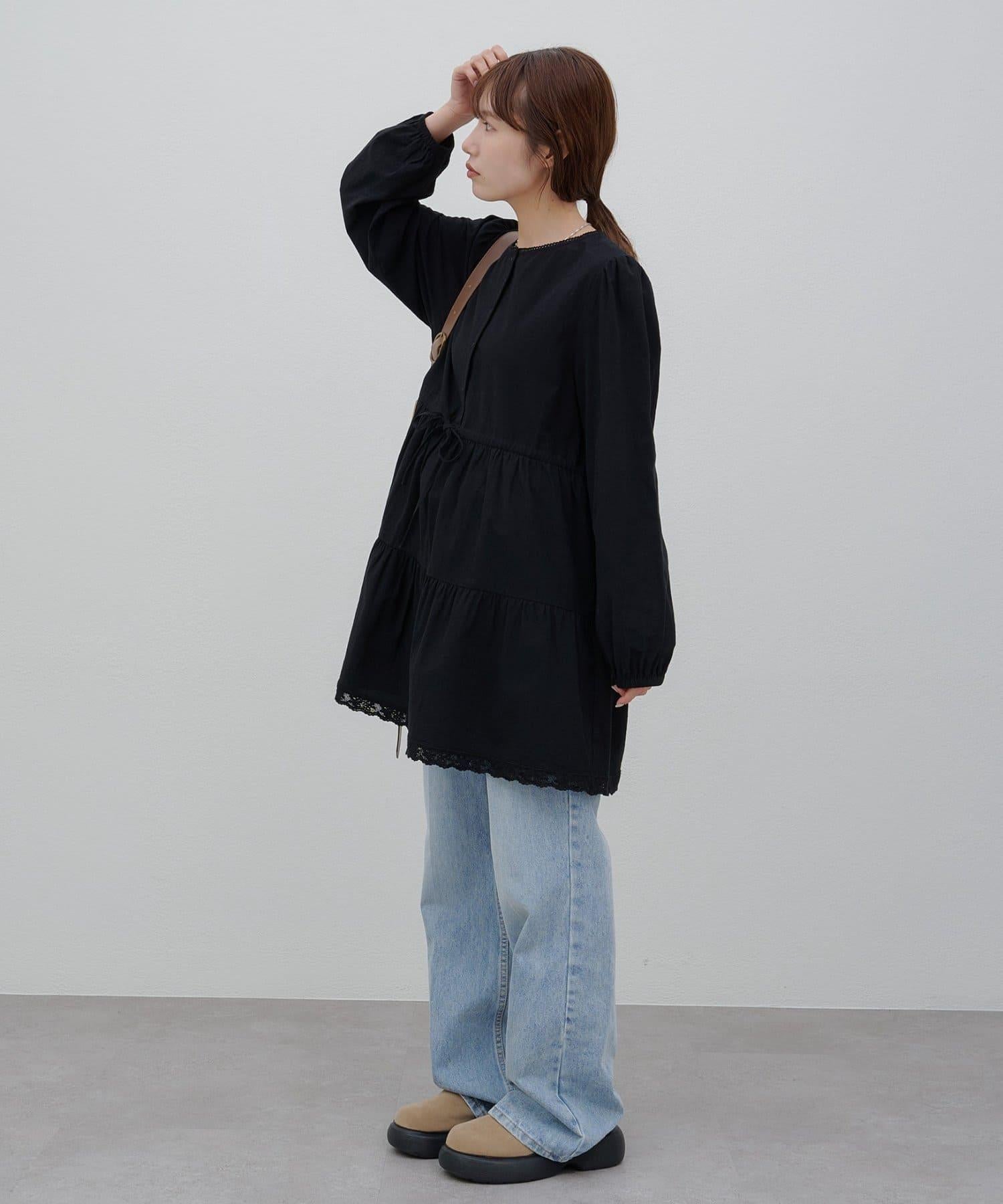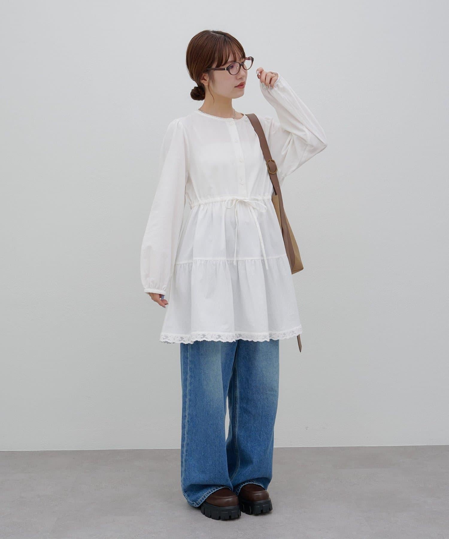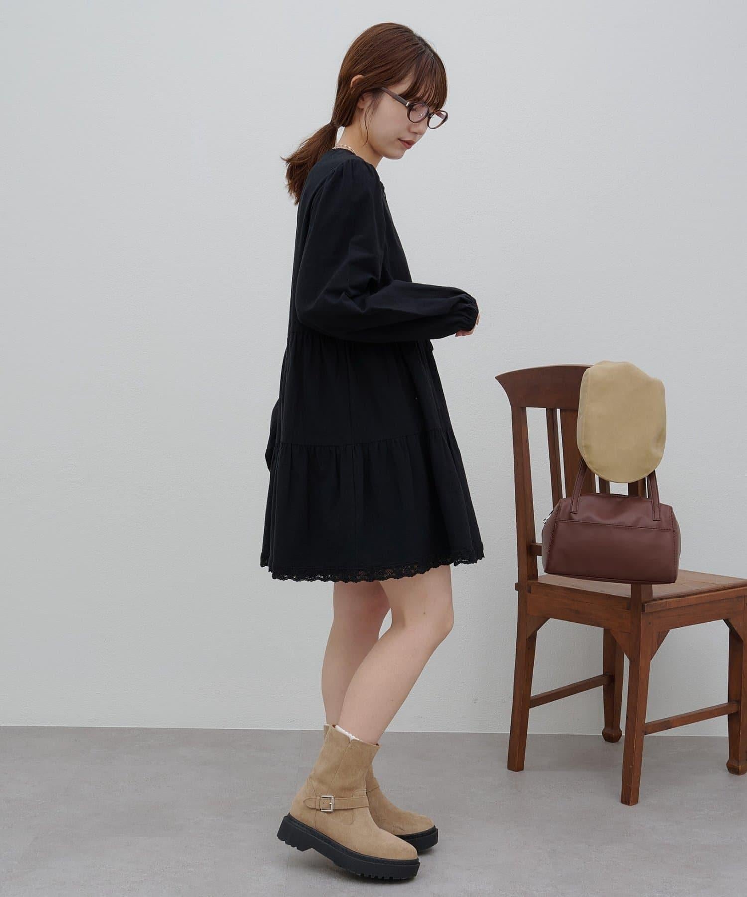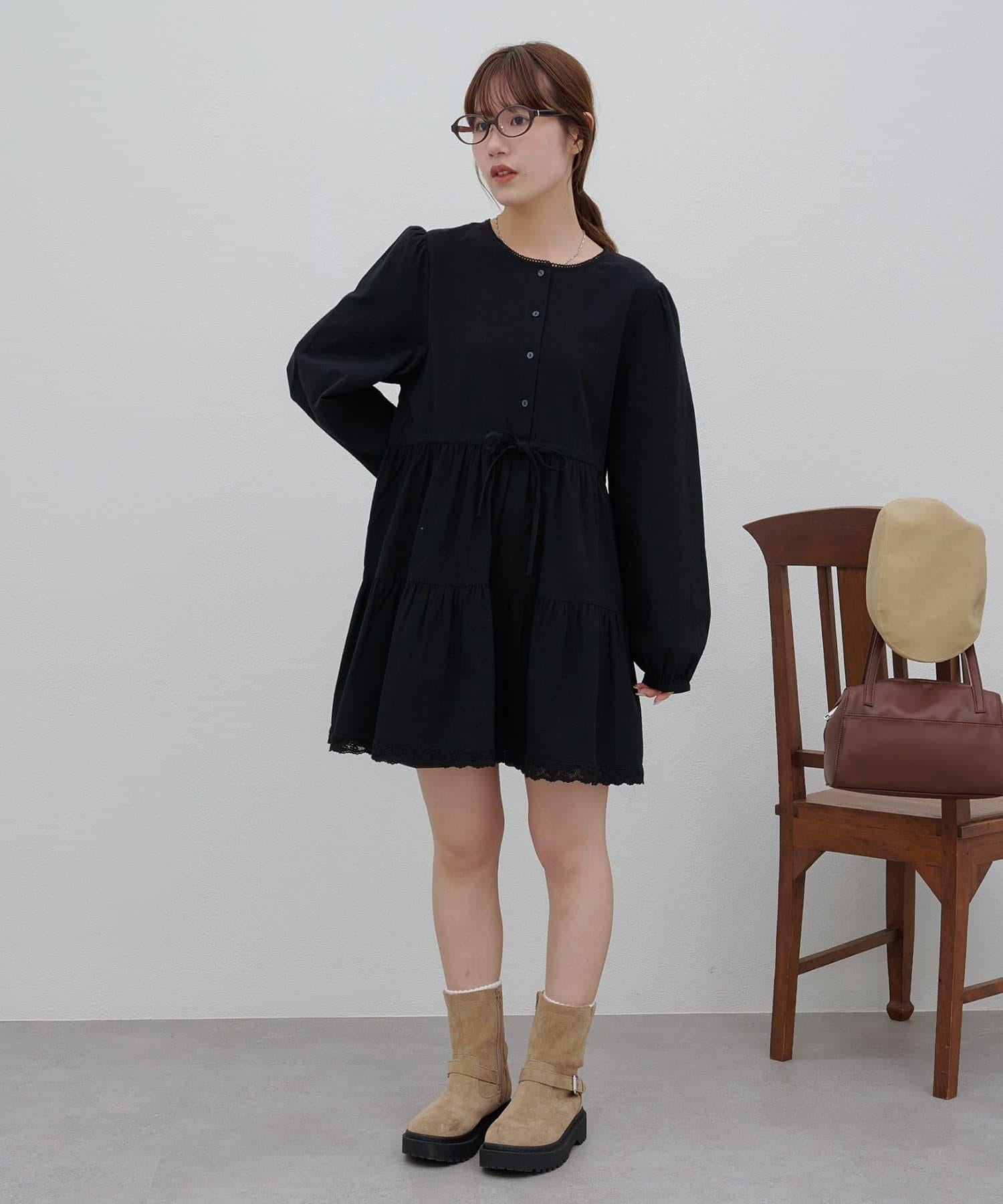【Discoat】【umm.】下襬蕾絲層疊迷你連衣裙