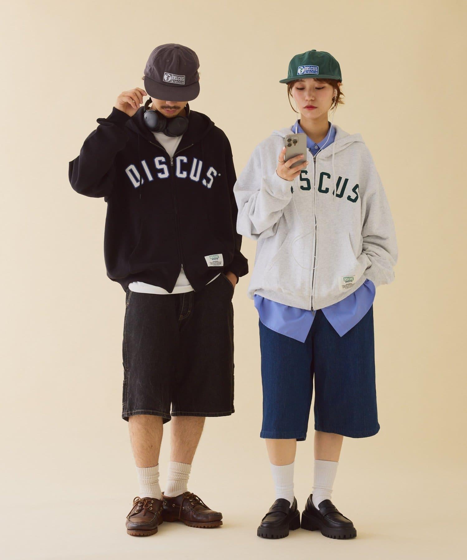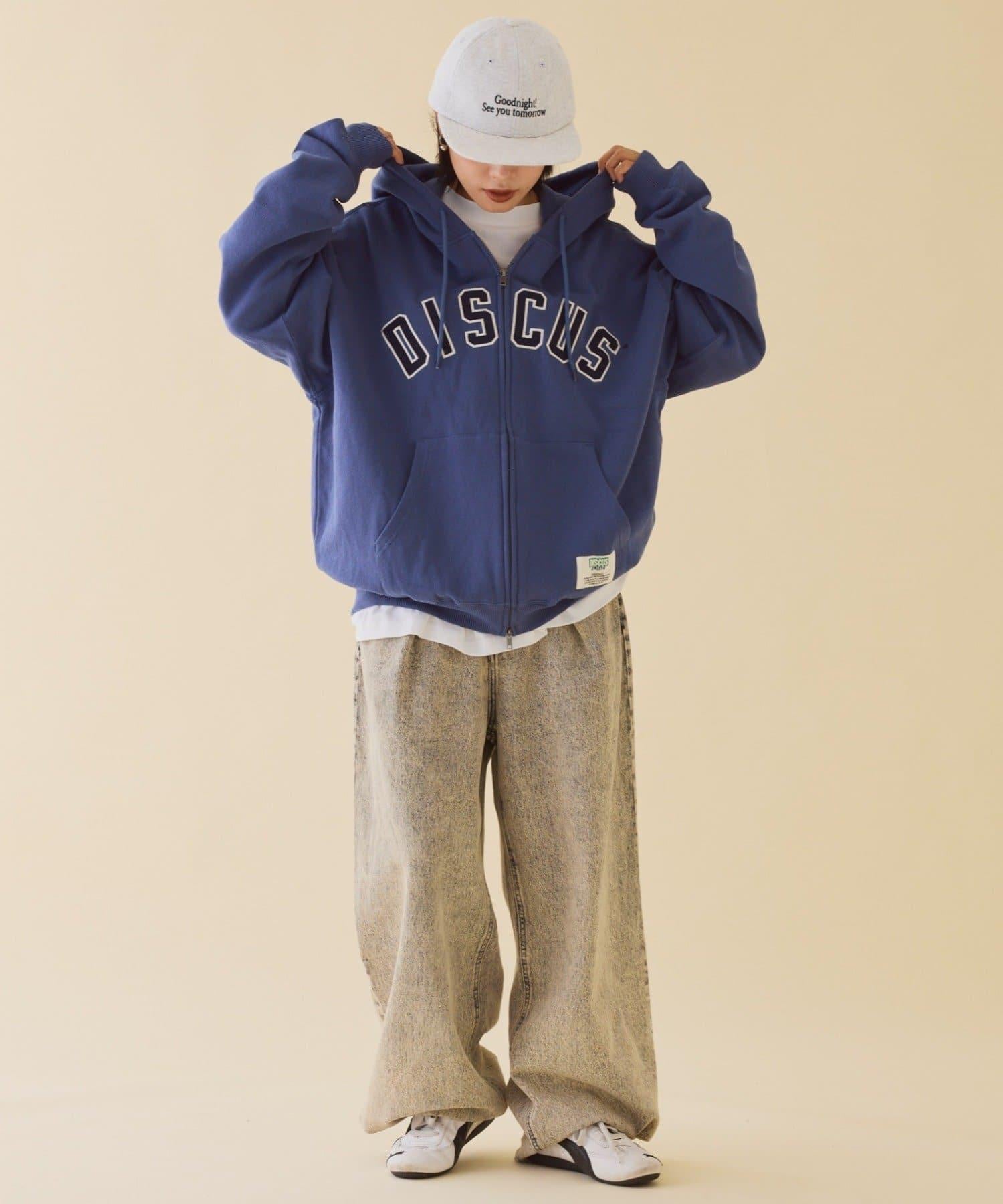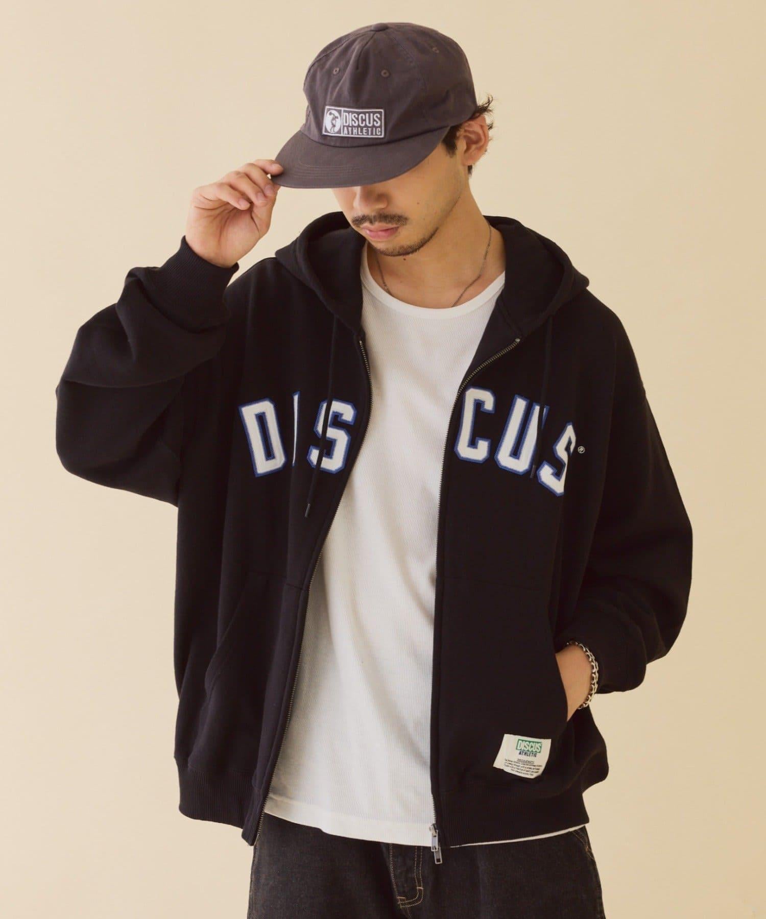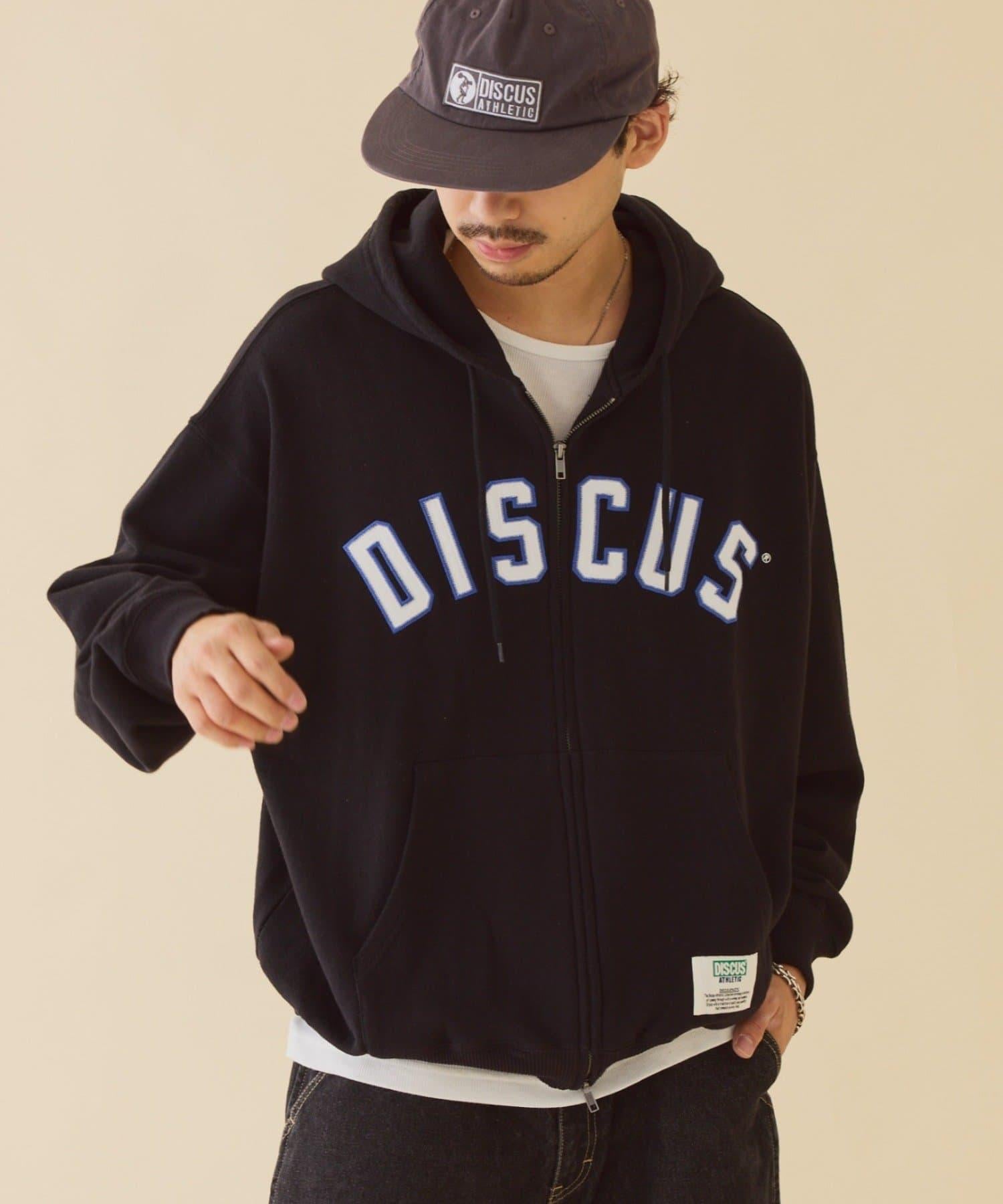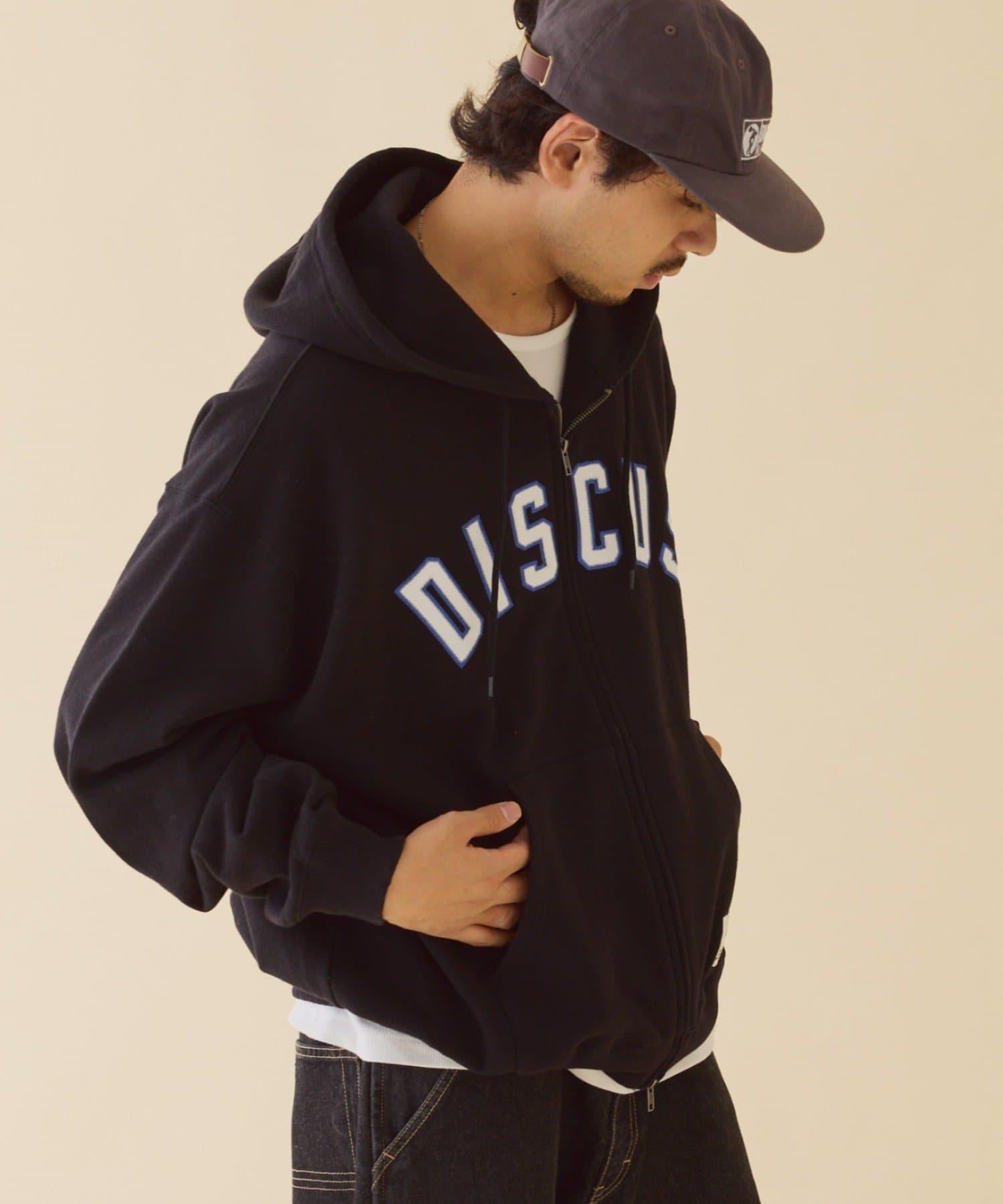 【DISCUS】標誌刺繡加絨全拉鍊連帽衛衣