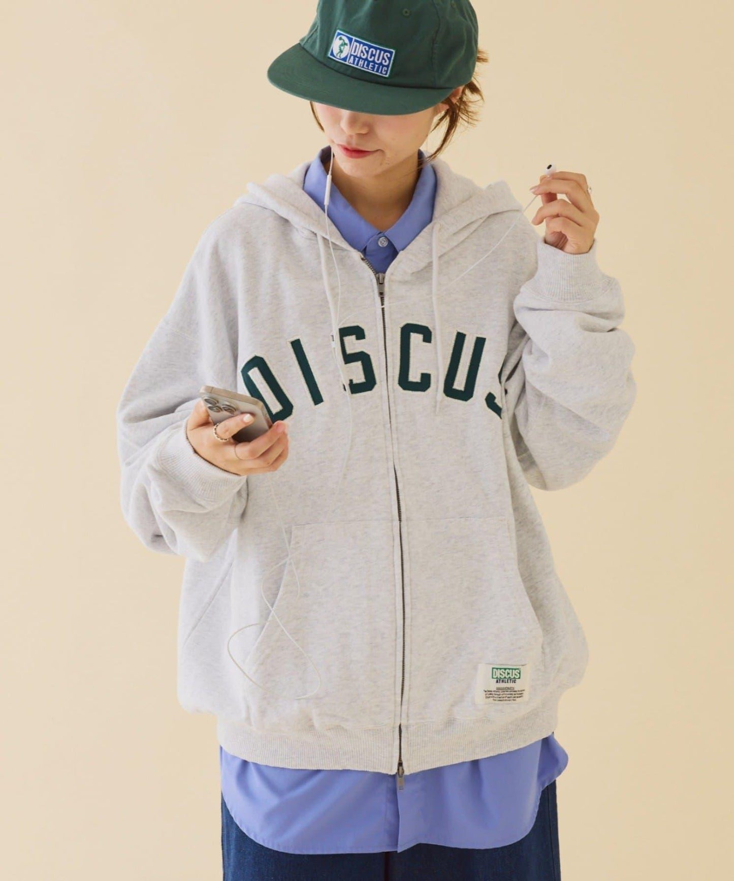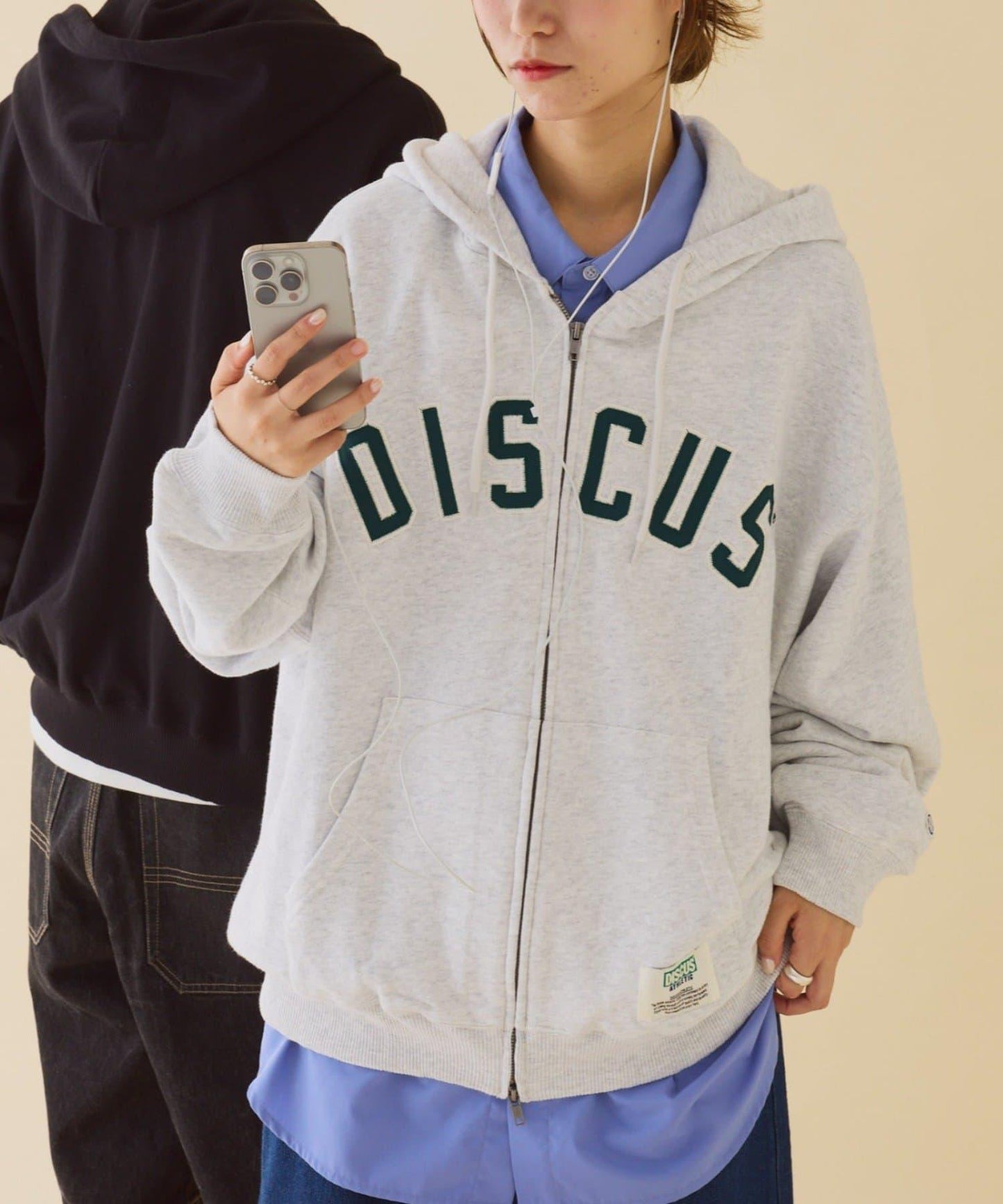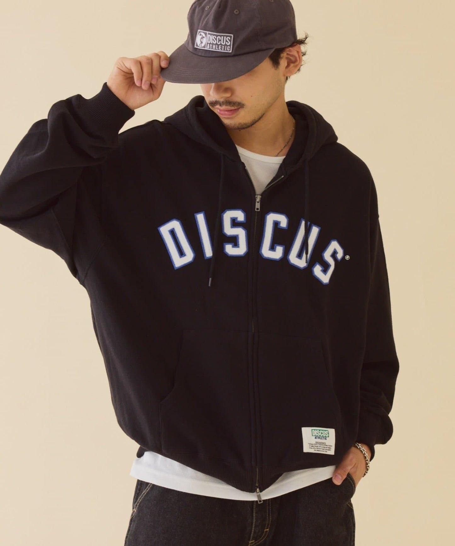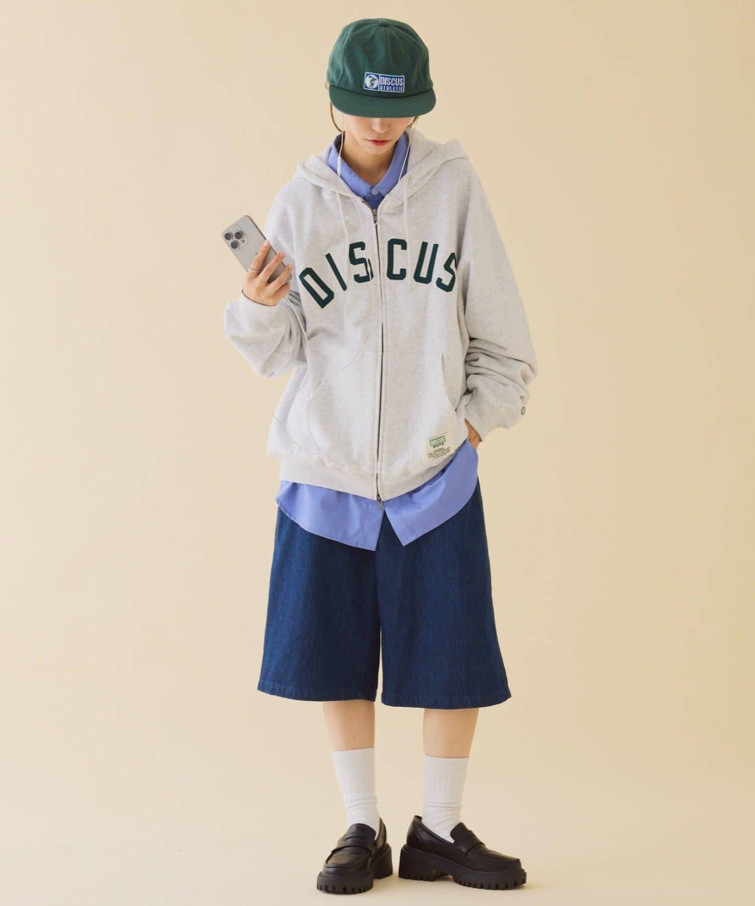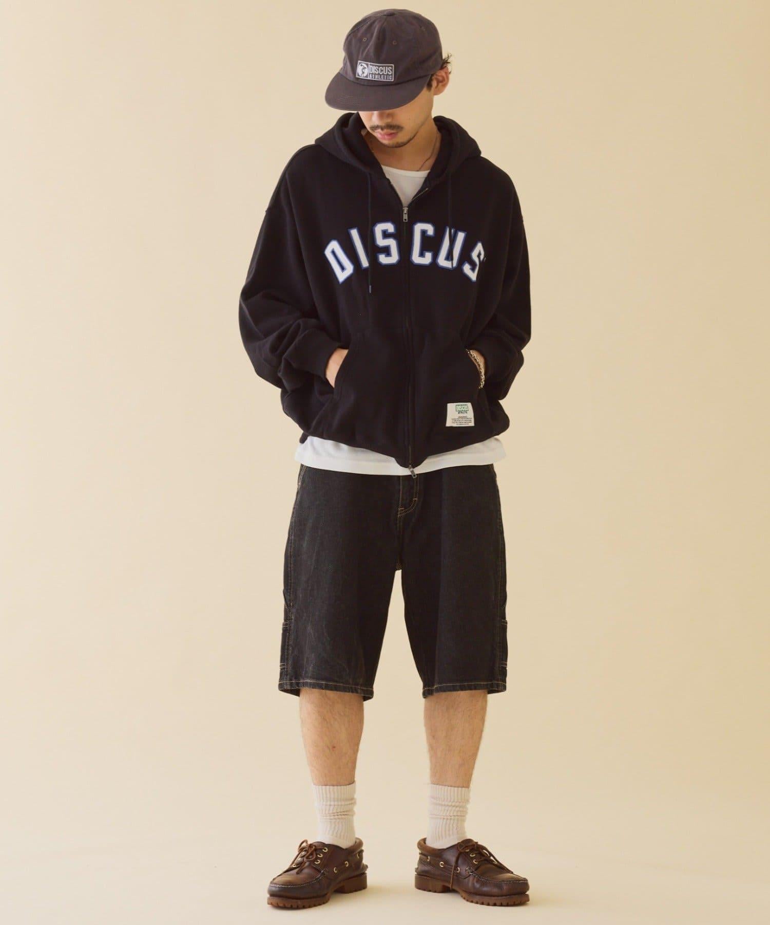 【DISCUS】標誌刺繡加絨全拉鍊連帽衛衣