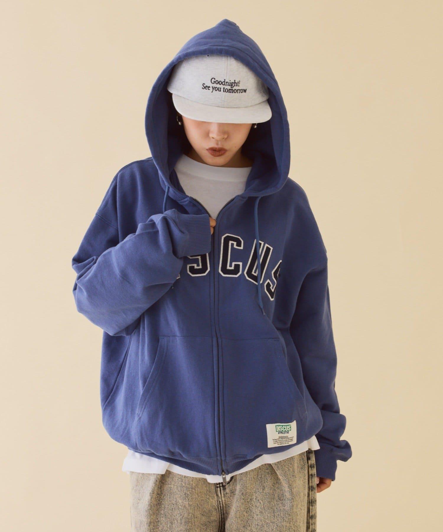 【DISCUS】標誌刺繡加絨全拉鍊連帽衛衣