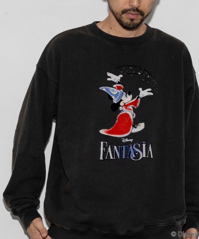 DISNEY/《迪士尼》/《幻想曲》/魔法/米老鼠/植絨印花圓領衛衣寬鬆版