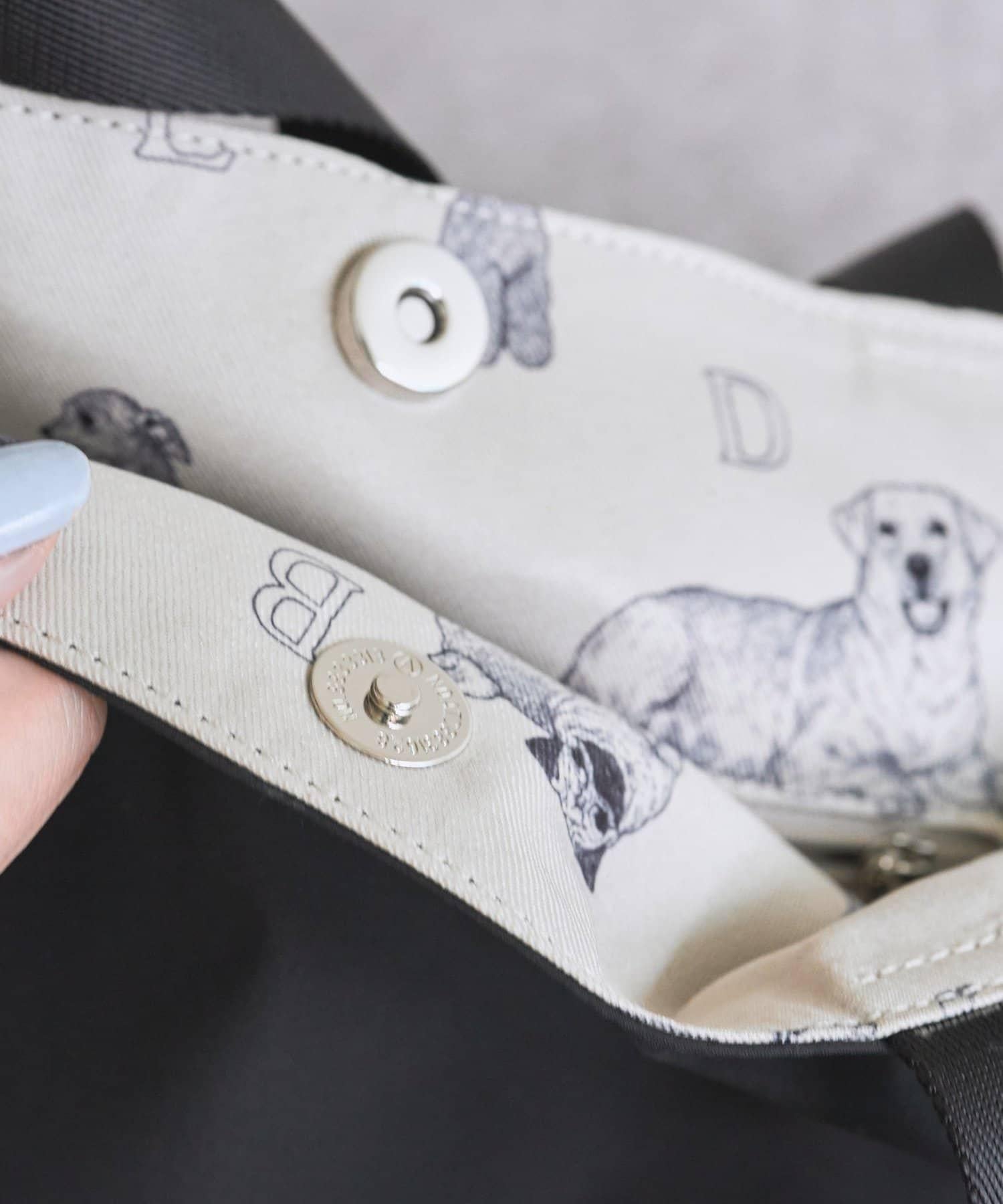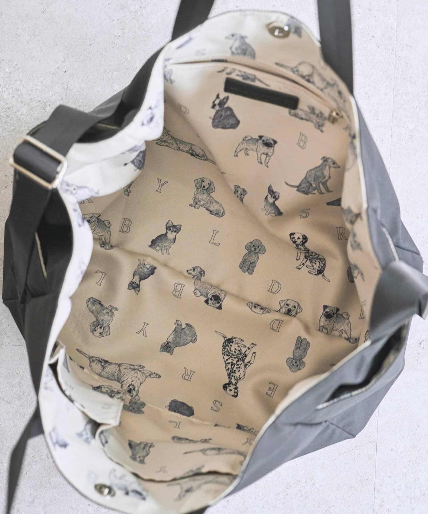 包的外層簡單樸素,易於融入日常搭配,而內層則裝飾有吉娃娃、達克斯獵犬、巴哥犬、柴犬等眾多愛犬的圖案和 BEARDSLEY 字母,無論何時看到,都會讓人精神為之一振。