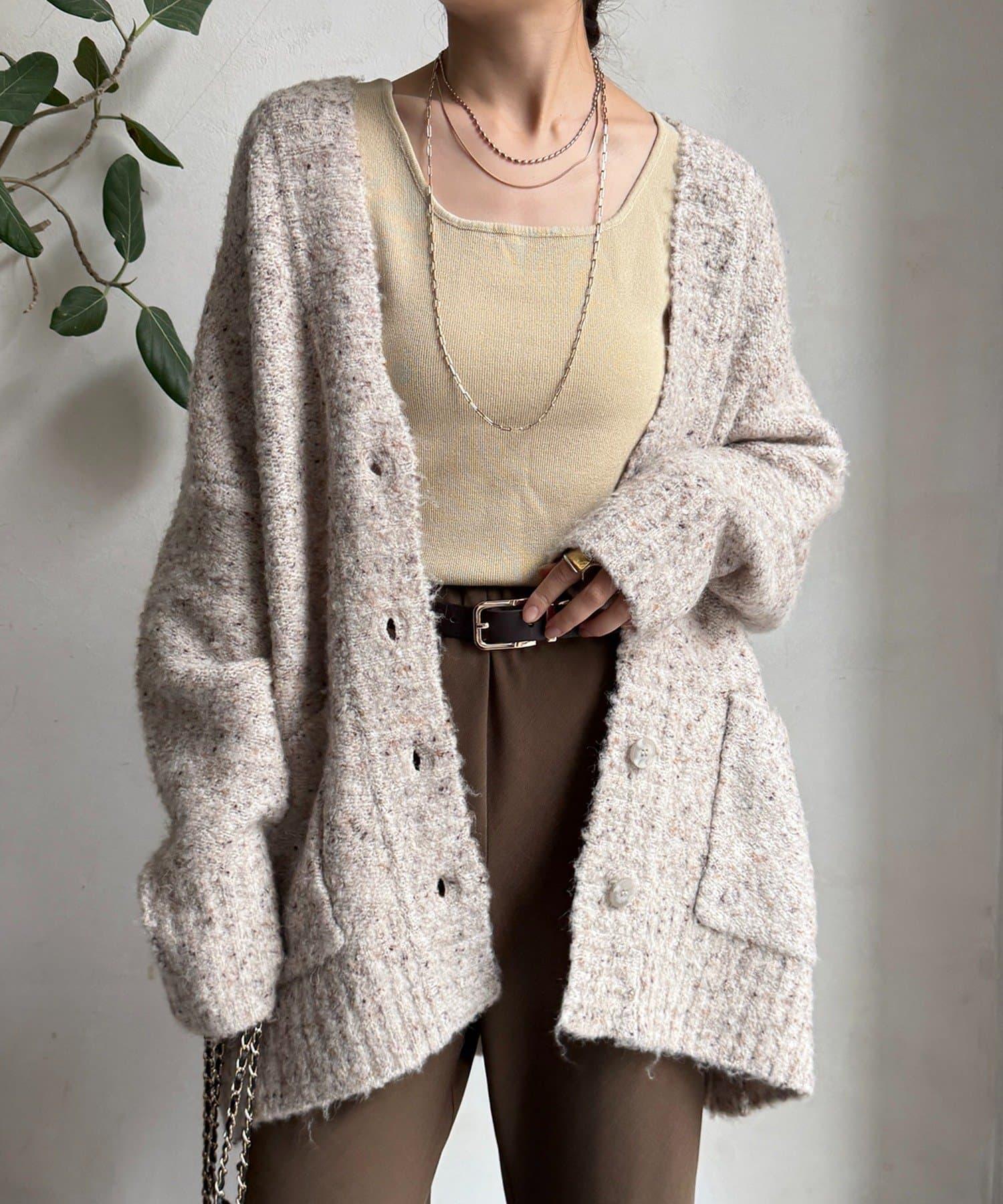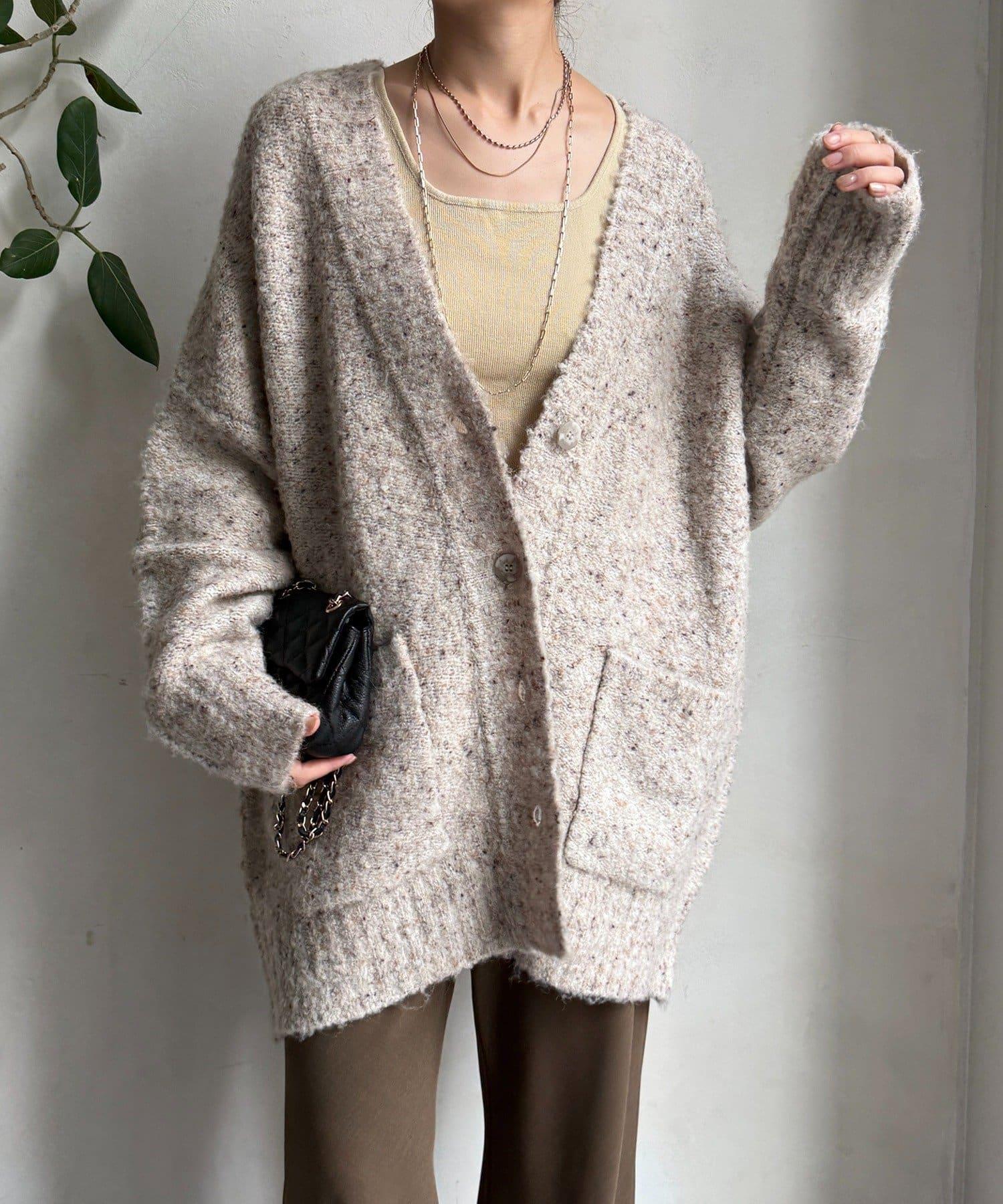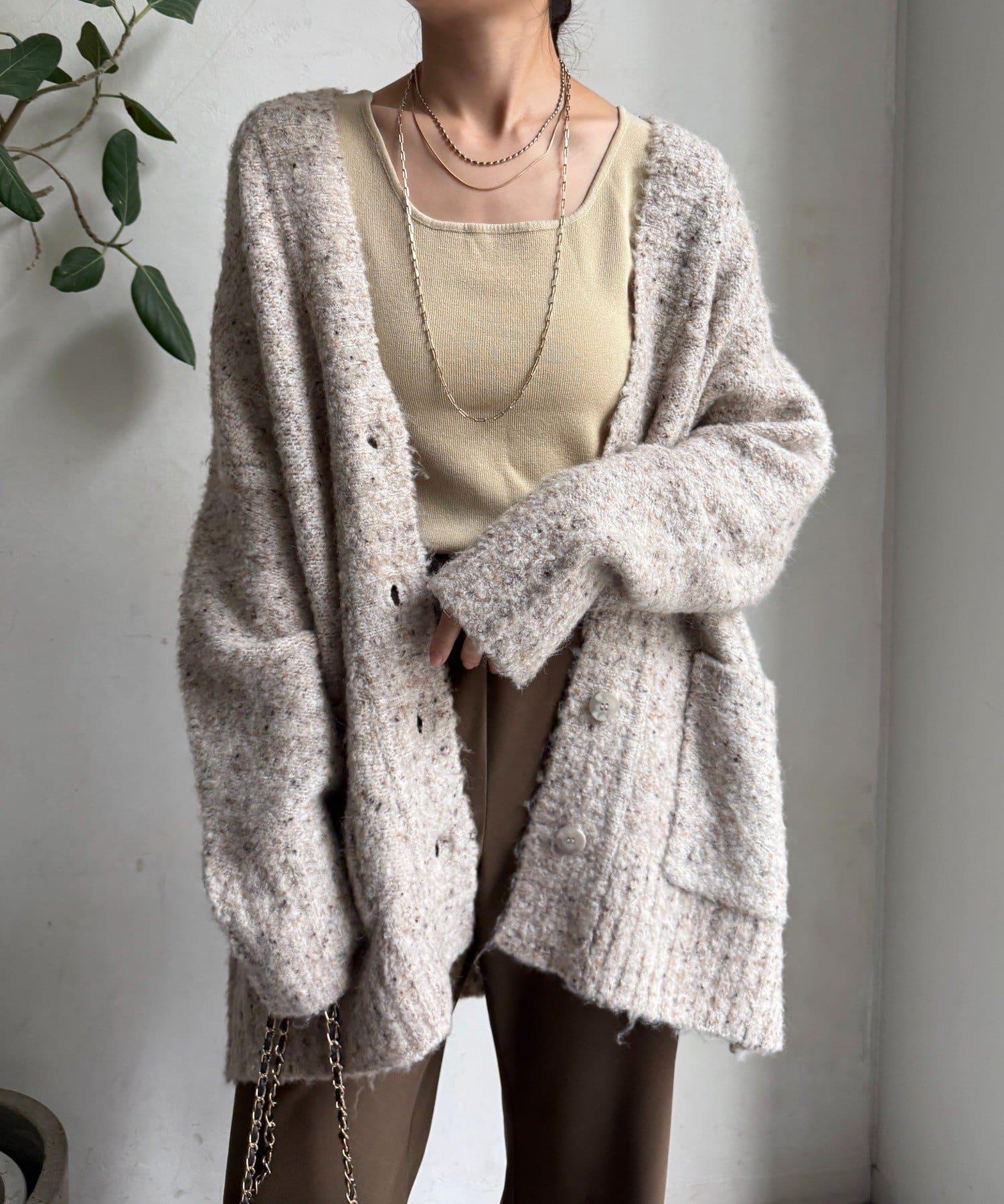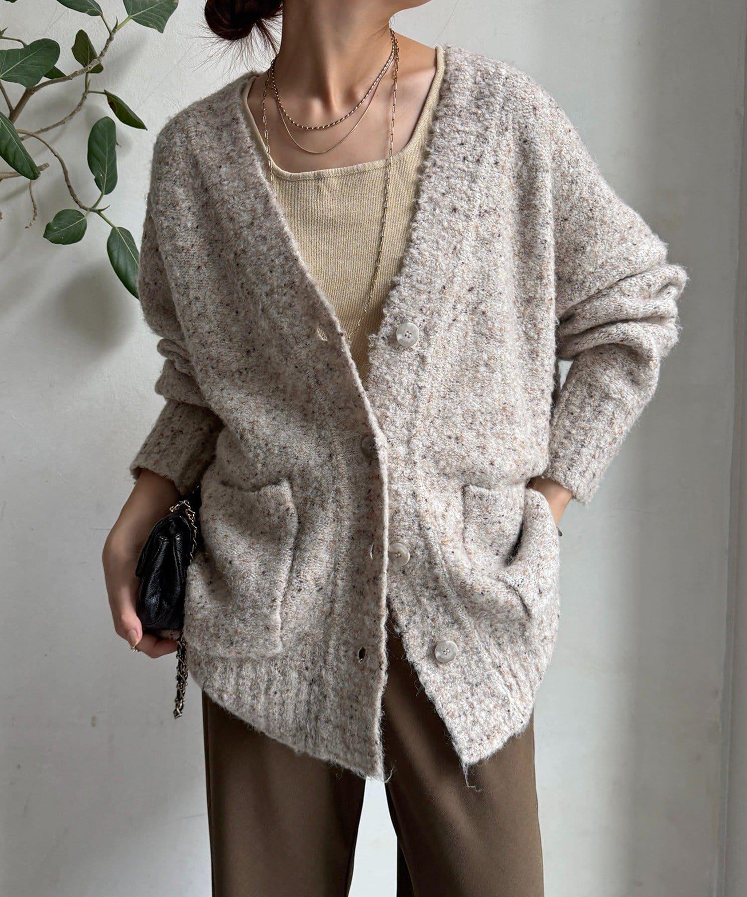 【DouDou】ウォッシャブルカラーネップカーディガン