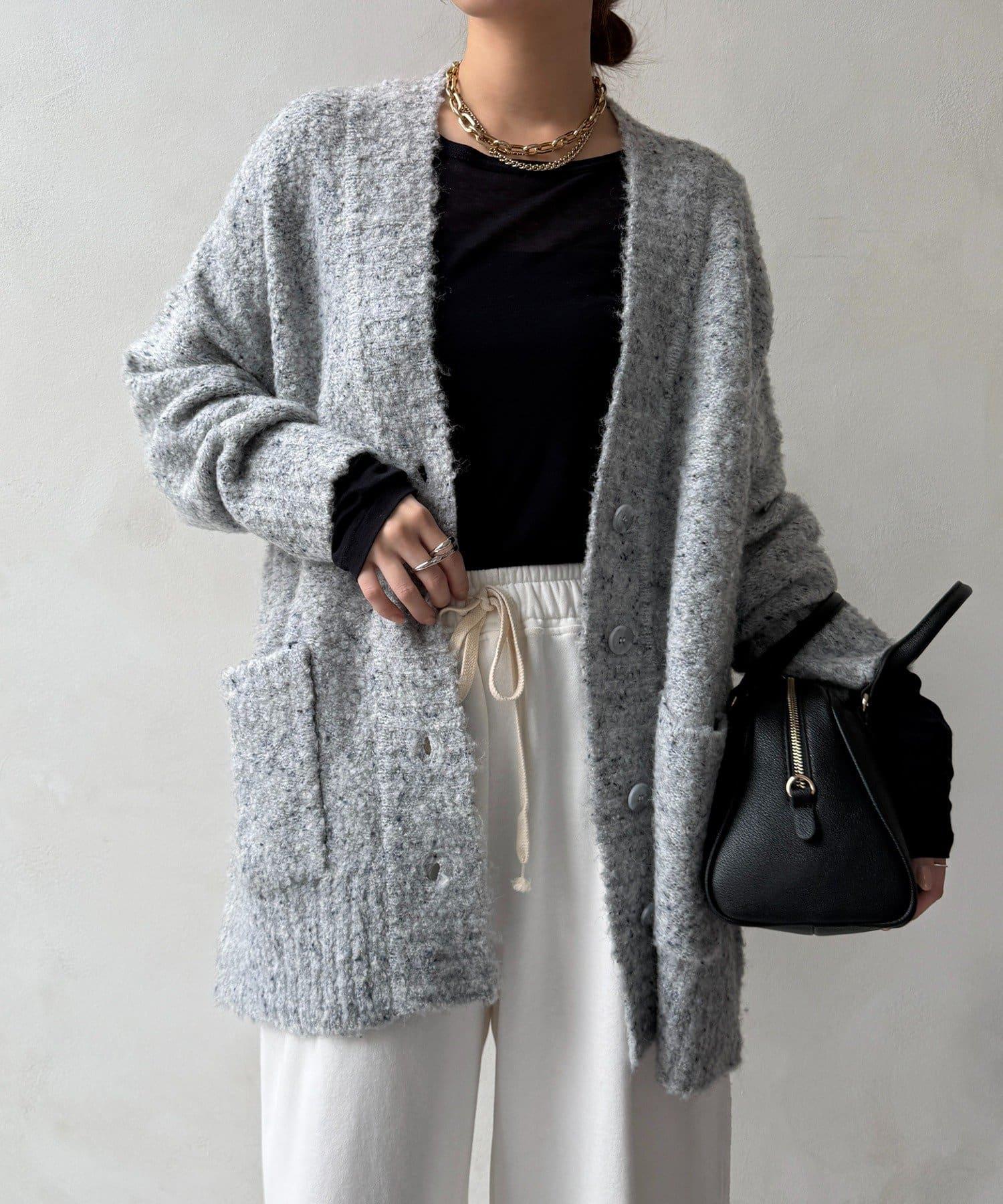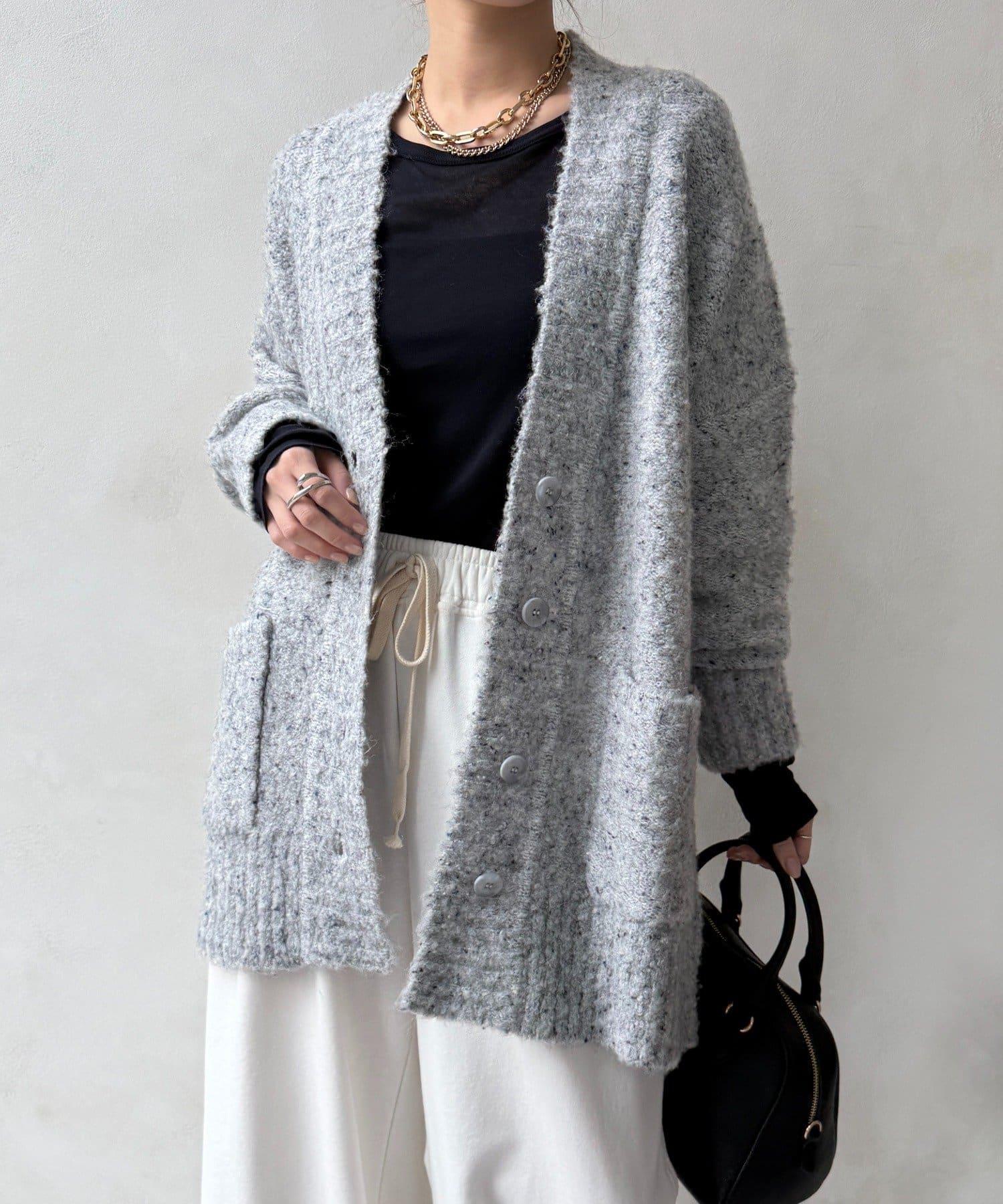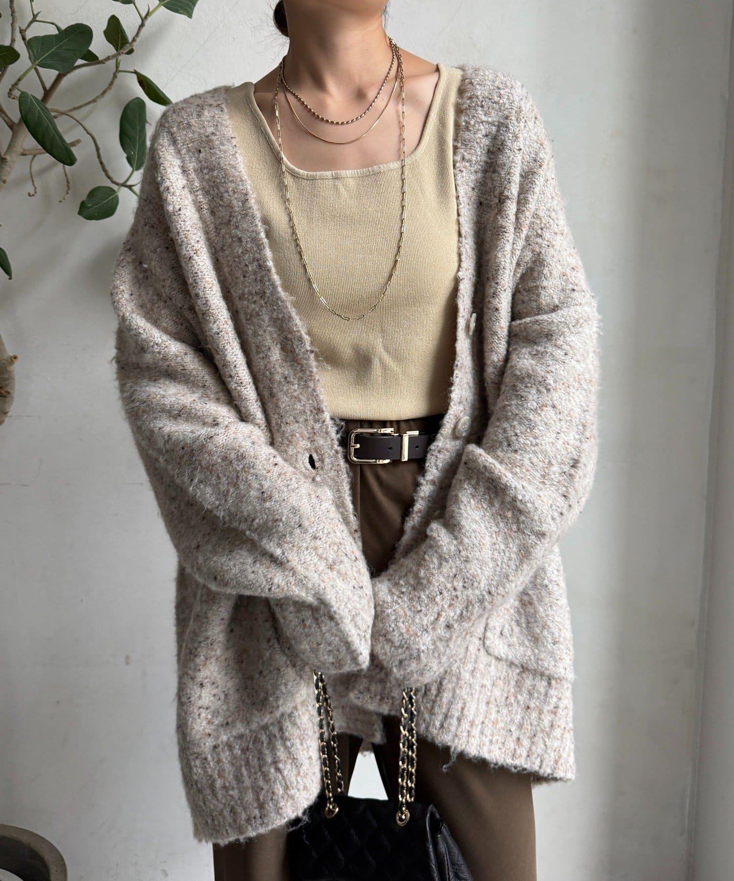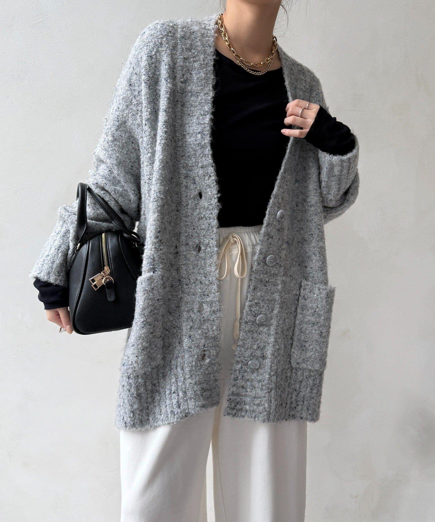 【DouDou】ウォッシャブルカラーネップカーディガン
