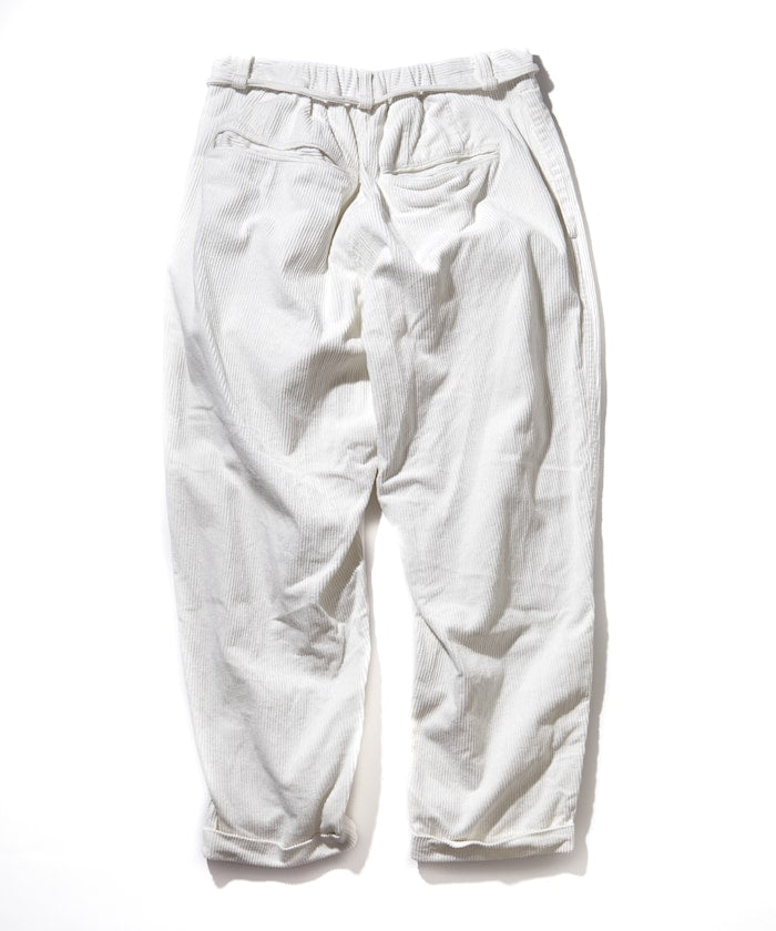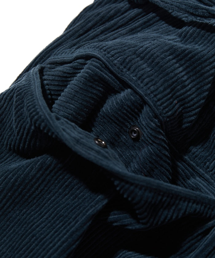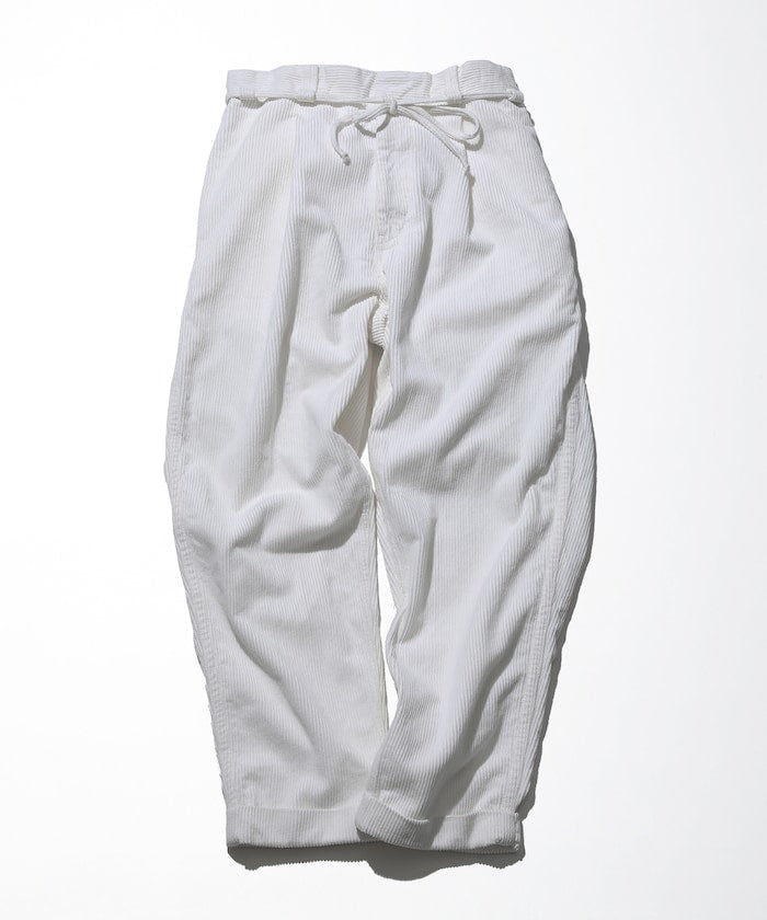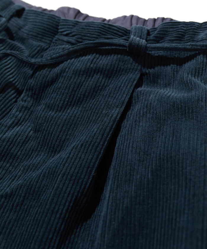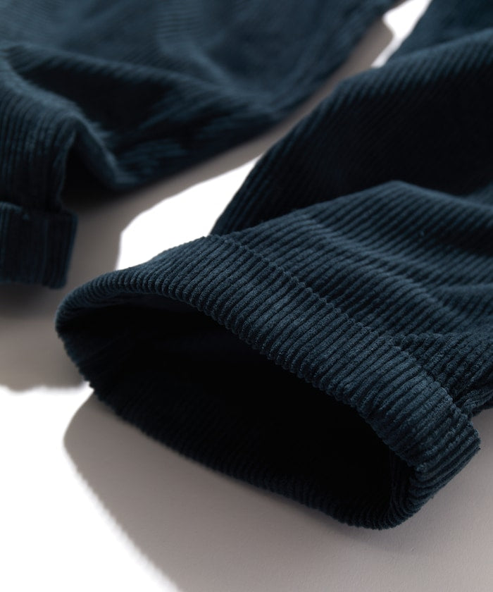 經典款式的單襉燈芯絨長褲。鬆緊腰身和褲腳設計方便穿脫。一水洗的表面處理使其易於搭配日常服裝,搭配剪裁合體的外套時,會有一種不錯的、不太緊繃的感覺。