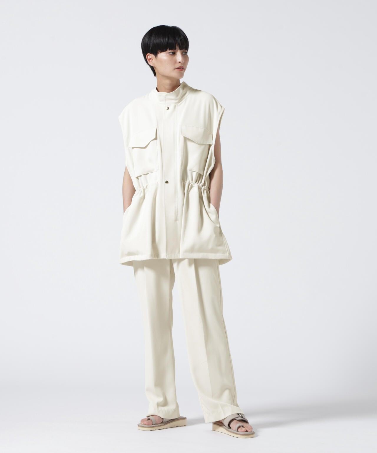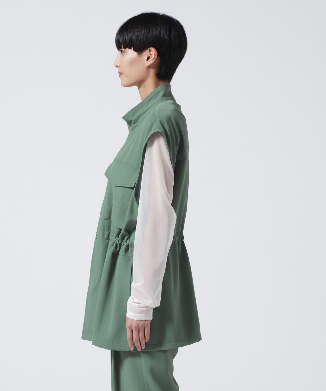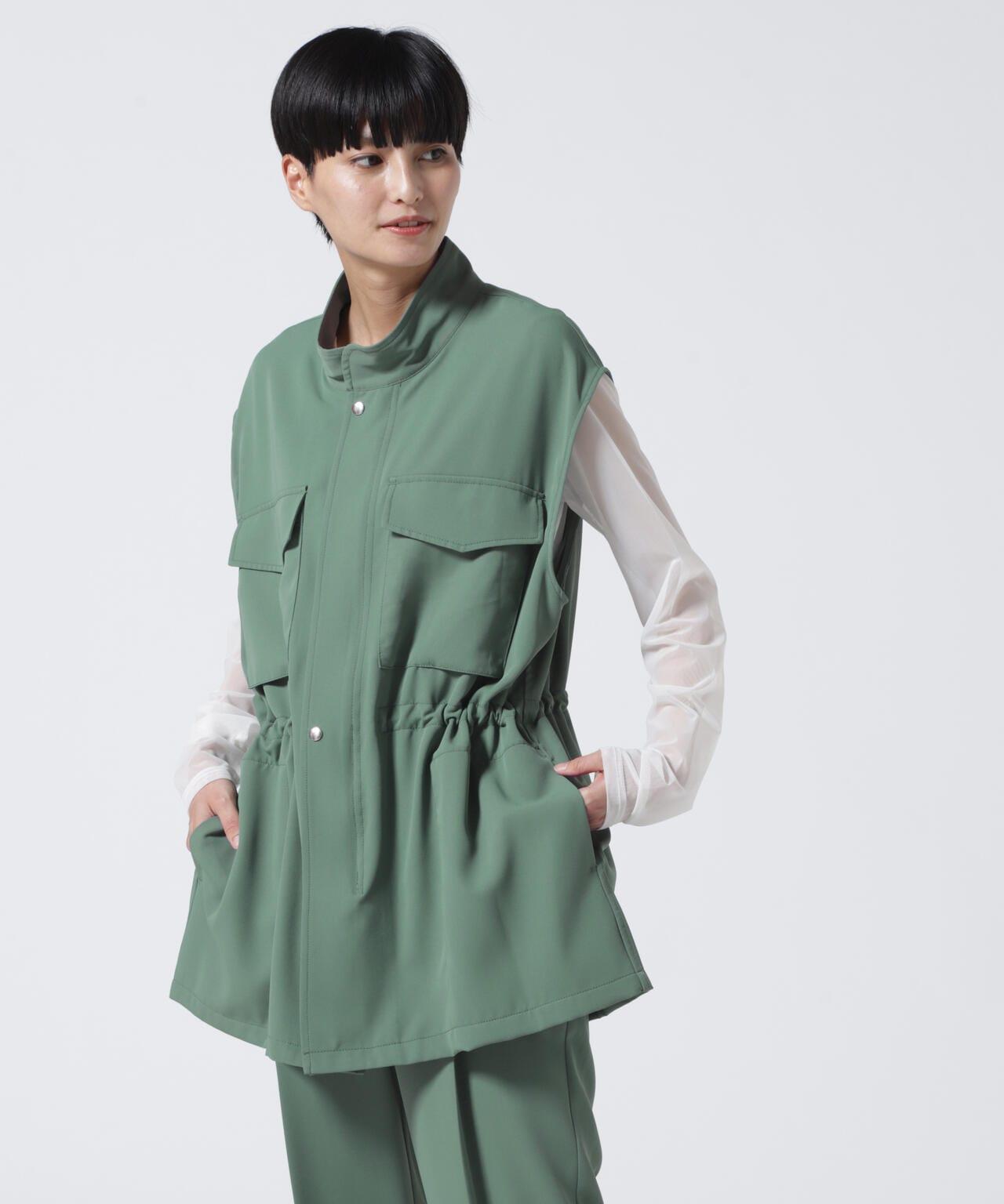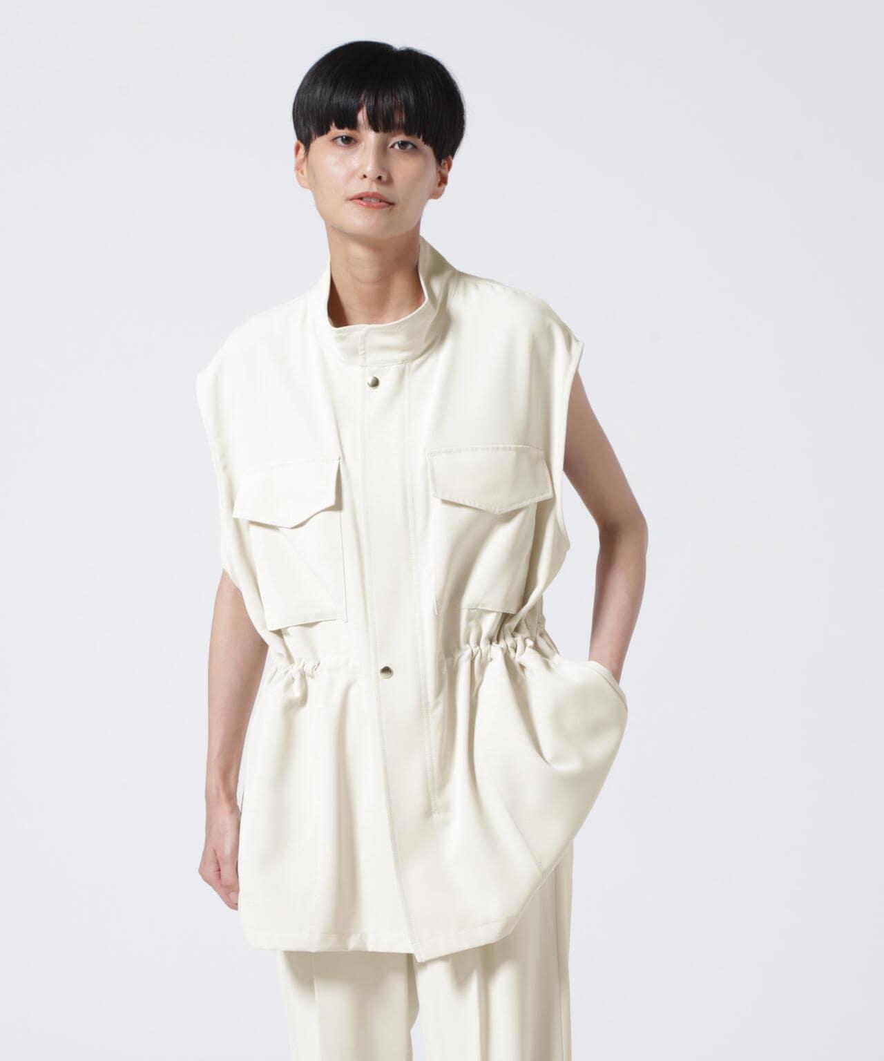 DROIT BELLO 軍用馬甲 採用落滌斜紋布製成的軍用馬甲。這款休閒單品採用了精美的面料,給人一種女性化的感覺。建議搭配同樣材質的長褲作為套裝。DROIT BELLO】2017AW年👍亮相的日本品牌,以三四十歲的人群為目標顧客,注重材質和細節,提出了成年人在上班和下班時都可以穿著的服裝。