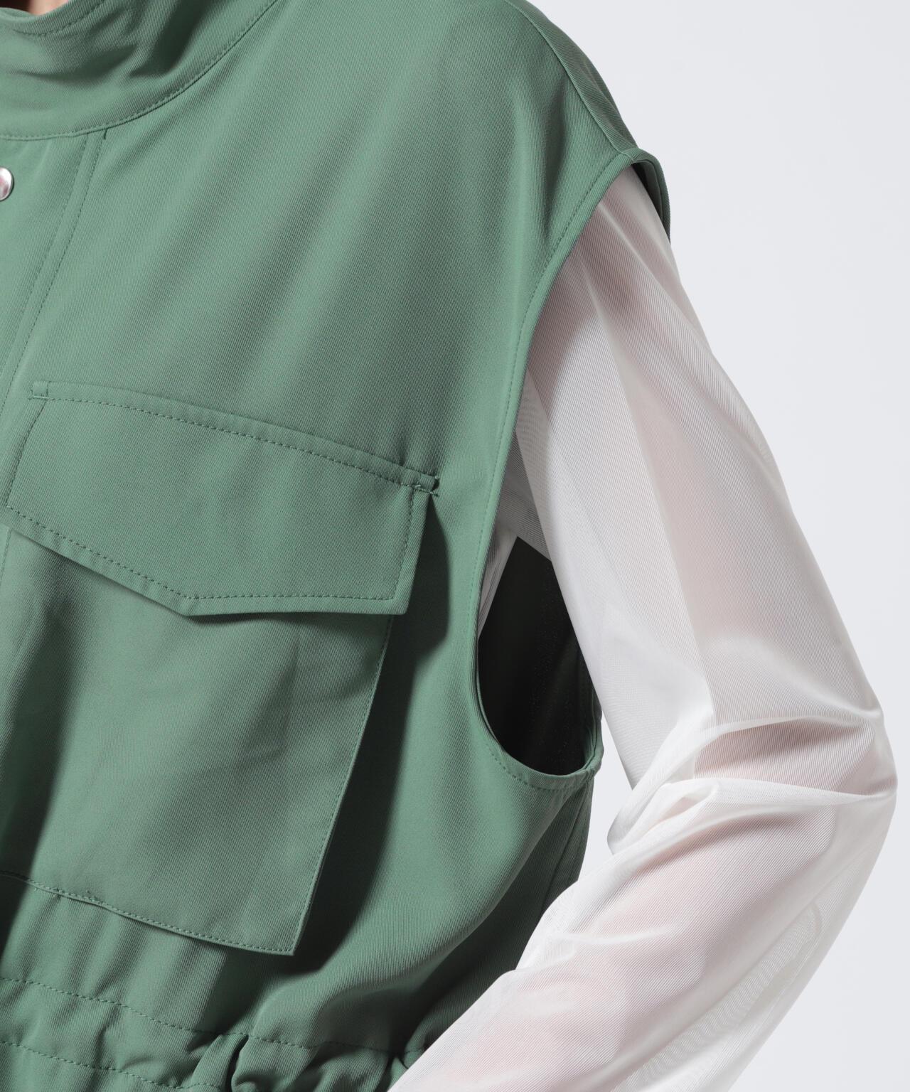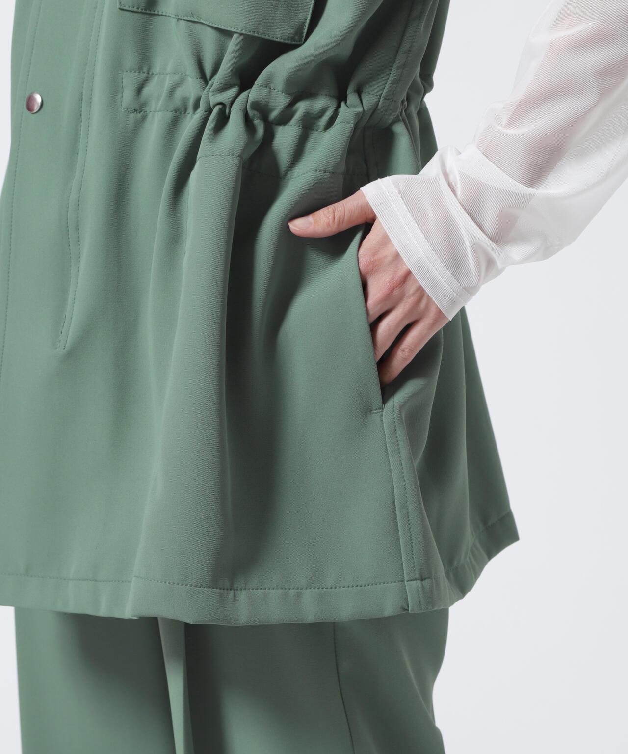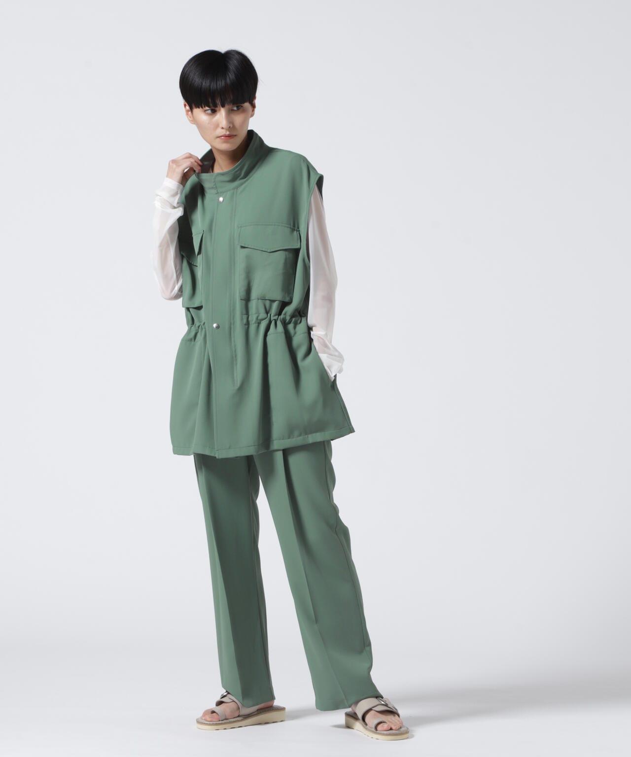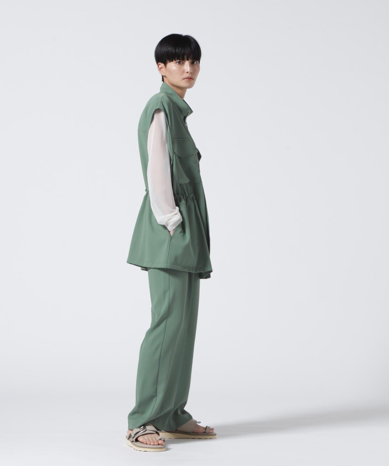 DROIT BELLO 軍用馬甲 採用落滌斜紋布製成的軍用馬甲。這款休閒單品採用了精美的面料,給人一種女性化的感覺。建議搭配同樣材質的長褲作為套裝。DROIT BELLO】2017AW年👍亮相的日本品牌,以三四十歲的人群為目標顧客,注重材質和細節,提出了成年人在上班和下班時都可以穿著的服裝。