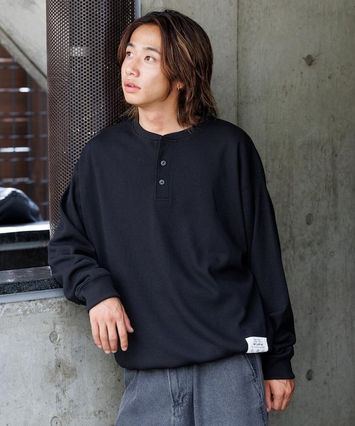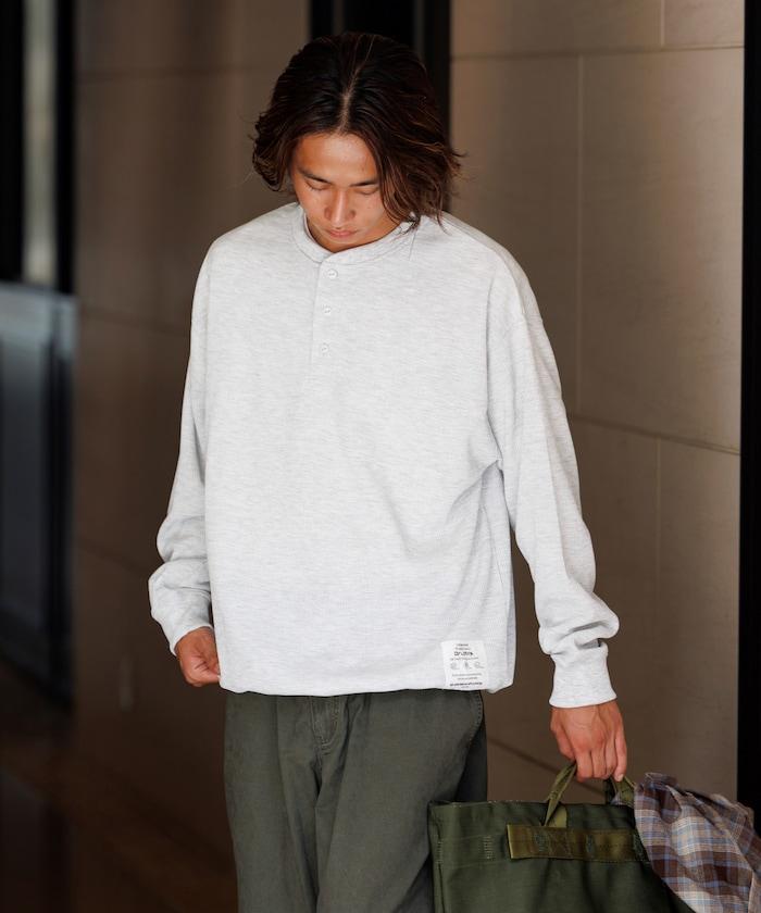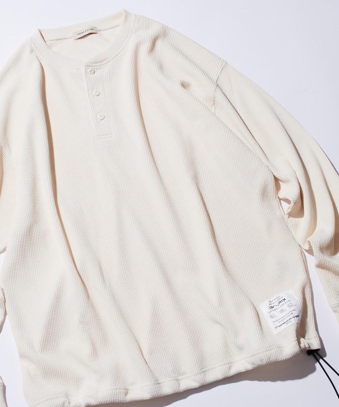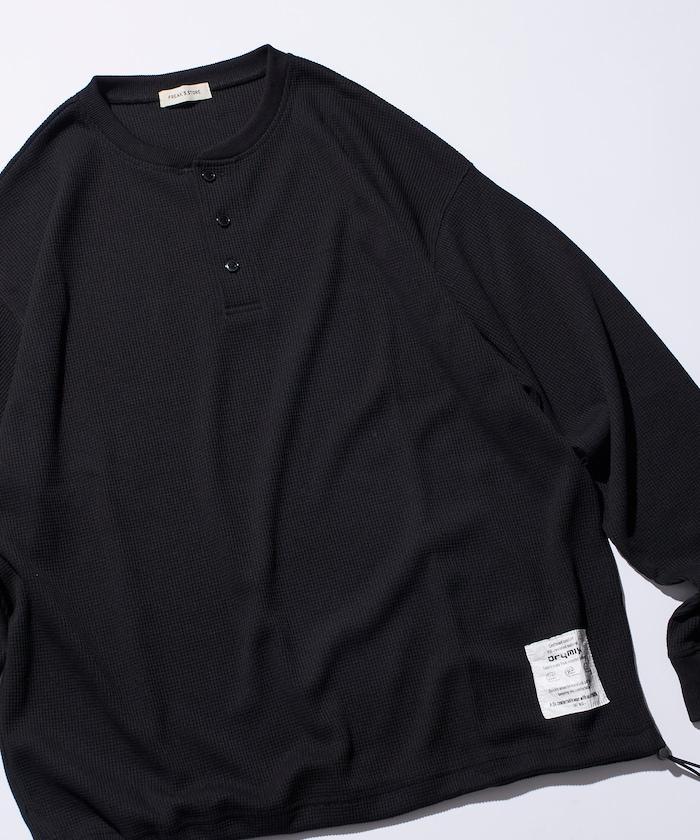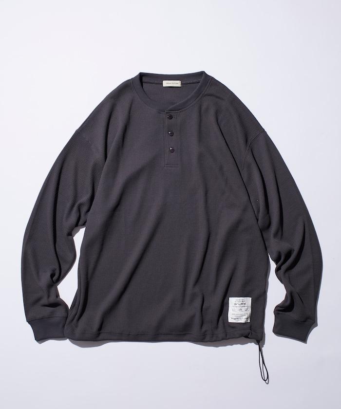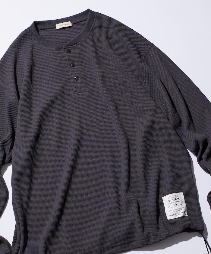Drymix(R) / 乾爽混紡寬鬆版型華夫格亨利領T恤