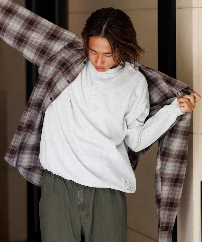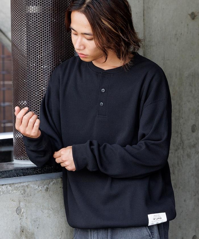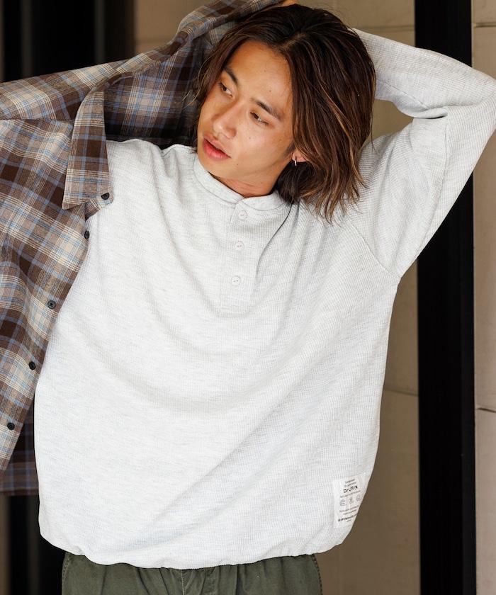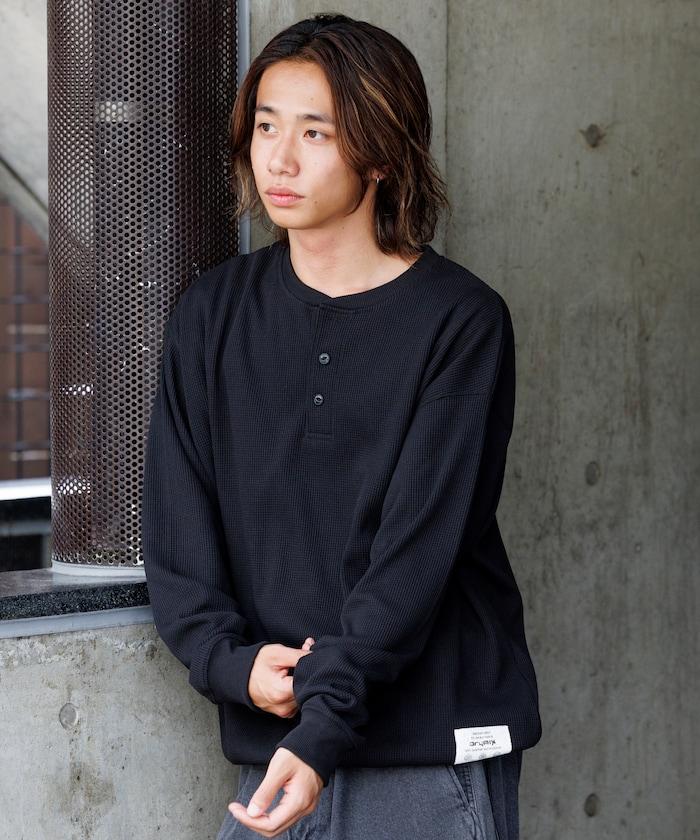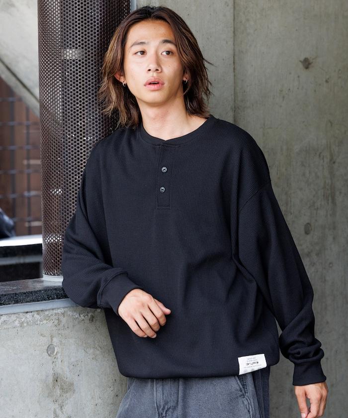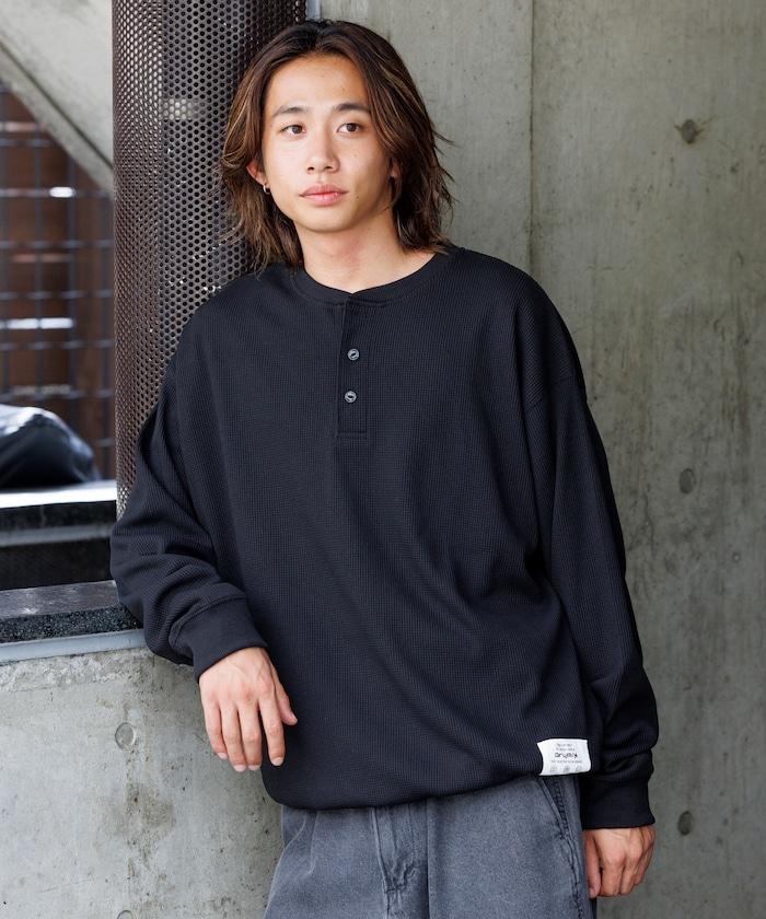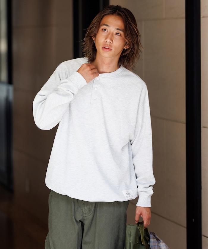 Drymix(R) / 乾爽混紡寬鬆版型華夫格亨利領T恤