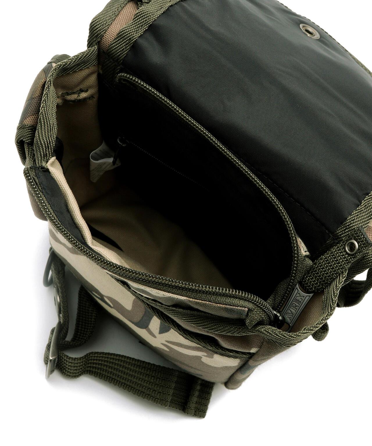 這款雙向腿包不僅設計感強,而且實用性也很強,外層布料上印有磨邊印花,內襯有防水塗層,因此具有濃郁的軍旅味道。主體頂部和底部的腰帶可防止在騎自行車或摩托車時因風壓而飄動,並保持其作為騎行裝備的👍風格。通過將下部腰帶調短,上部腰帶調長,這款包還可作為普通雙肩包使用。AVIREX]成立於 1975 年,是美國空軍的承包商,其知名度因提供飛行夾克而大幅提升。
