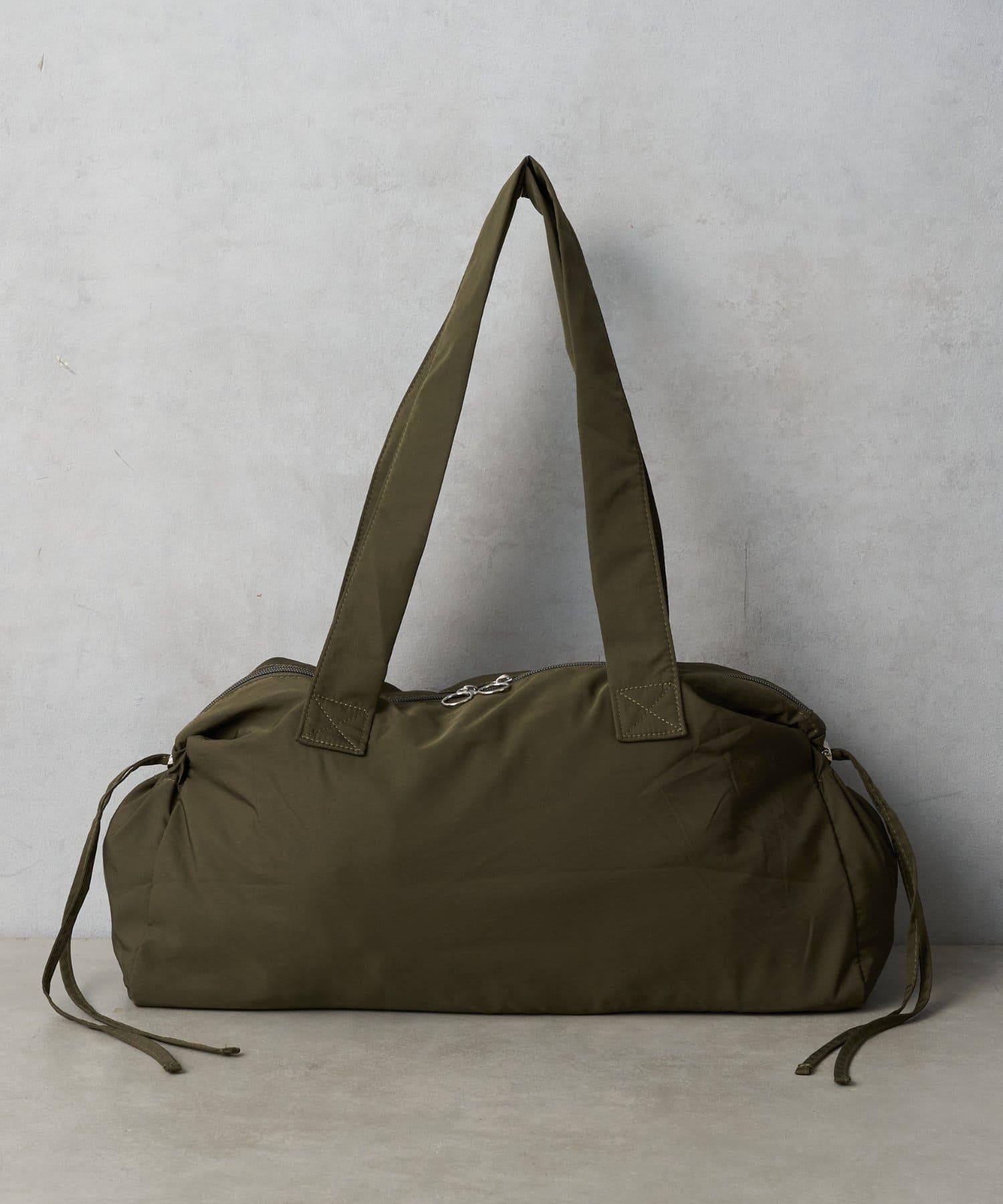 這款輕便手提包採用柔軟蓬鬆的面料製成,具有時尚的橫向輪廓。