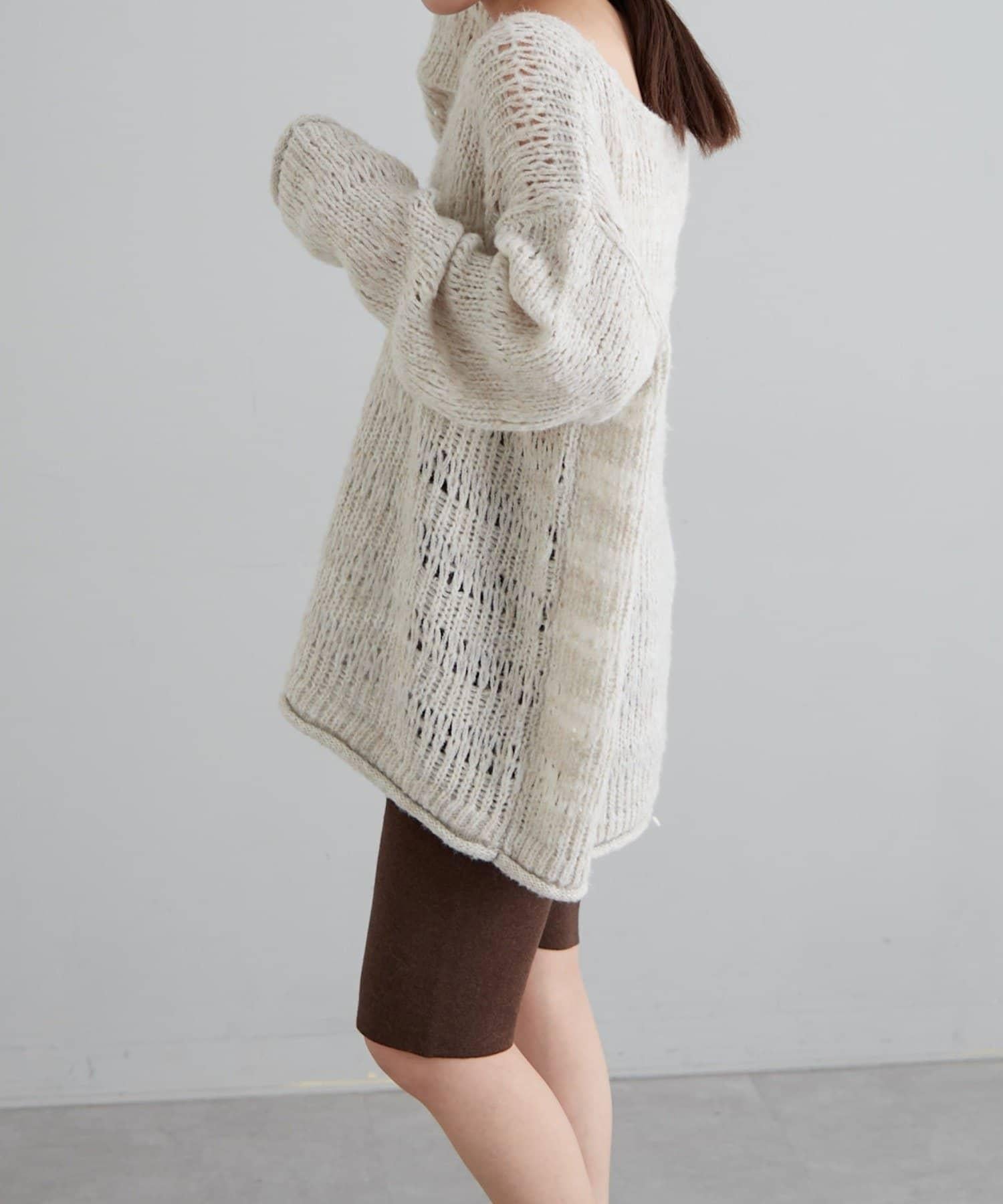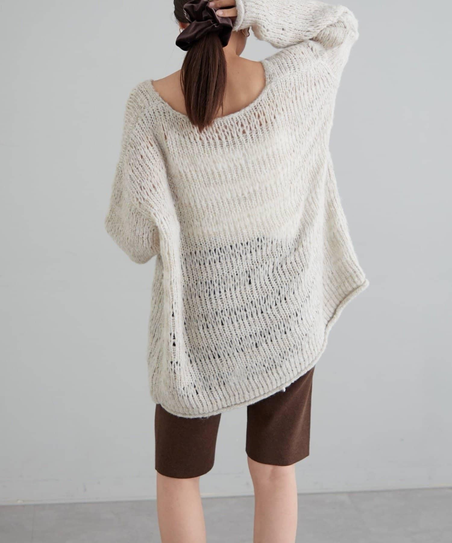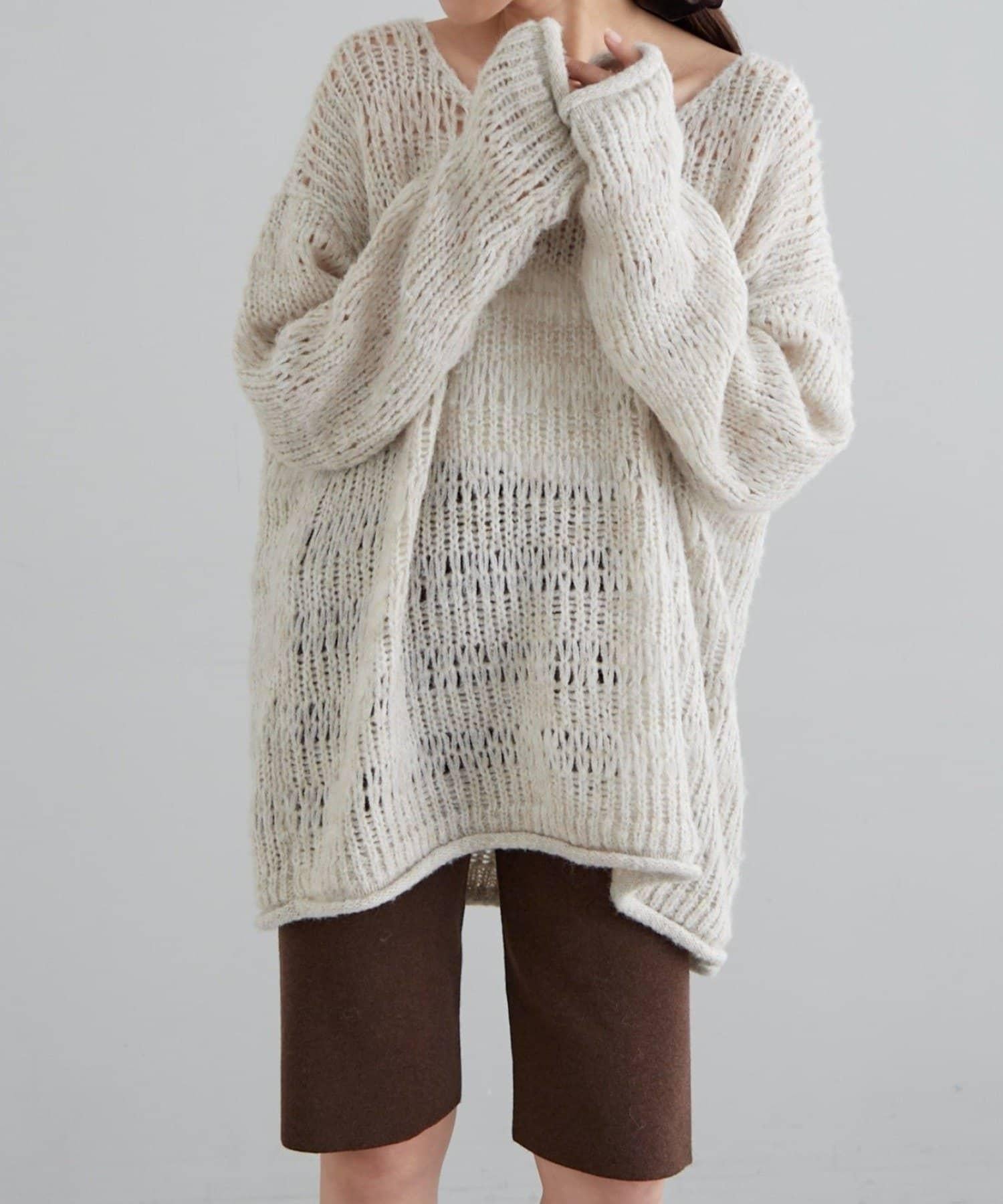 套頭針織衫採用搶眼的超大廓形和鏤空邊!
