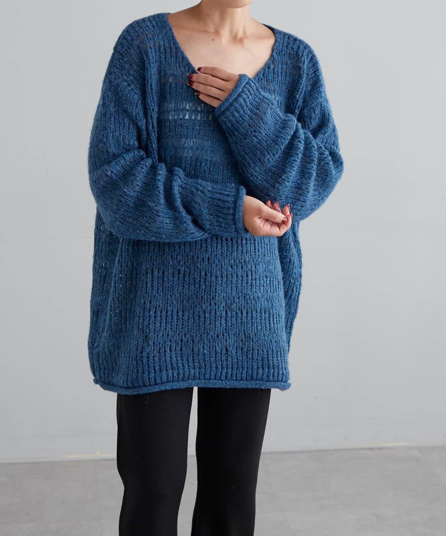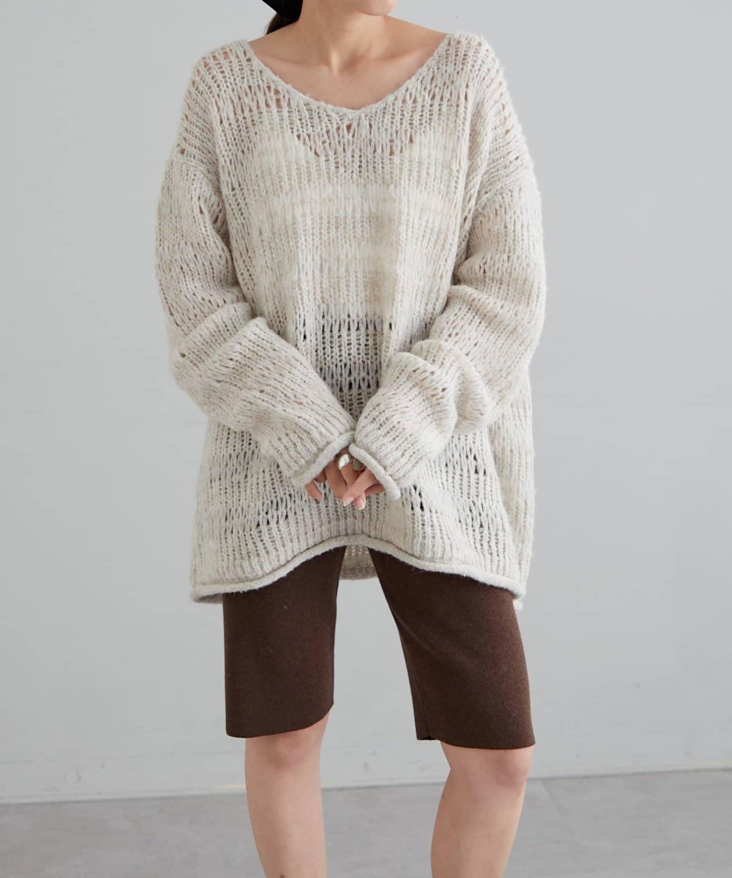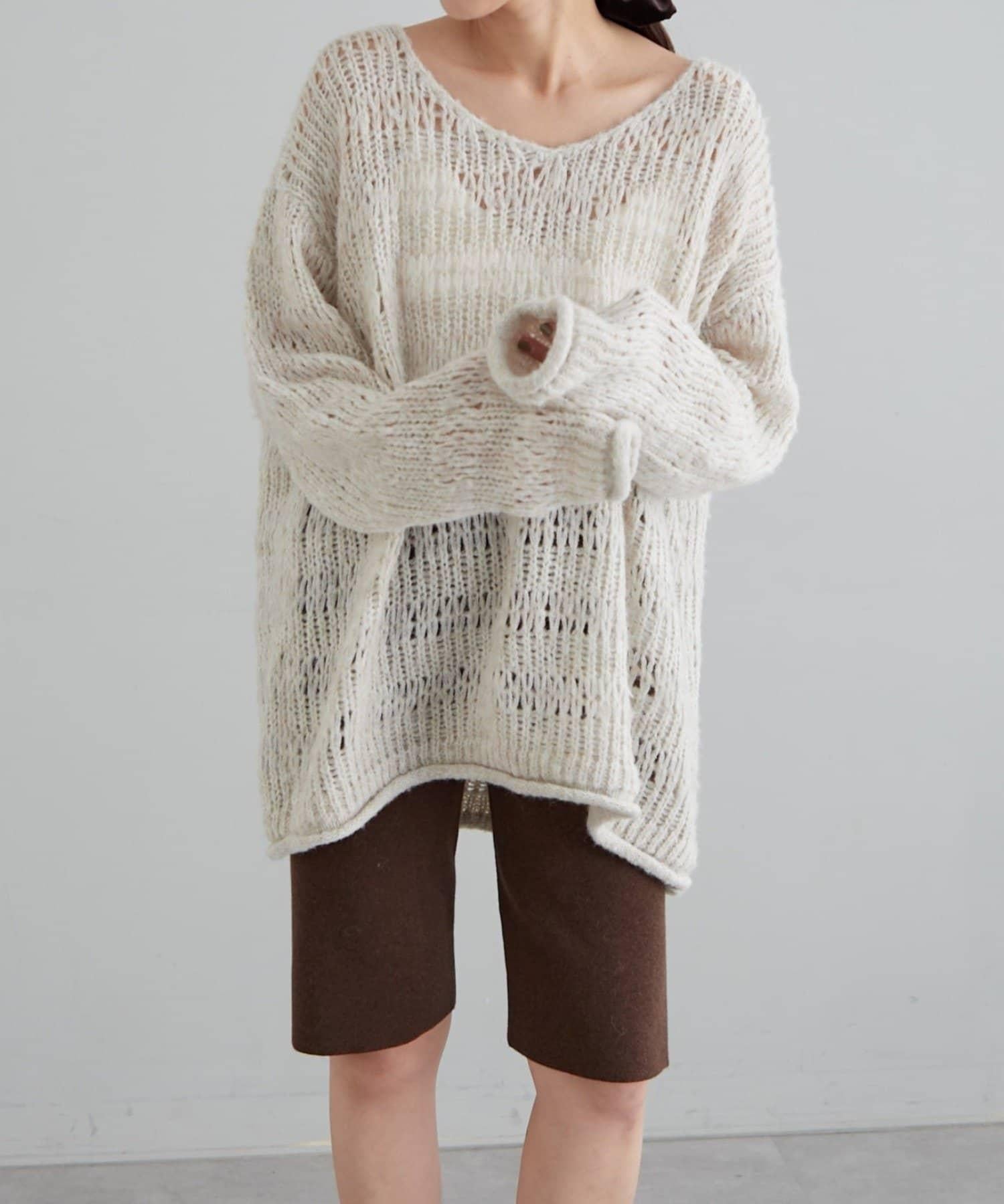 套頭針織衫採用搶眼的超大廓形和鏤空邊!