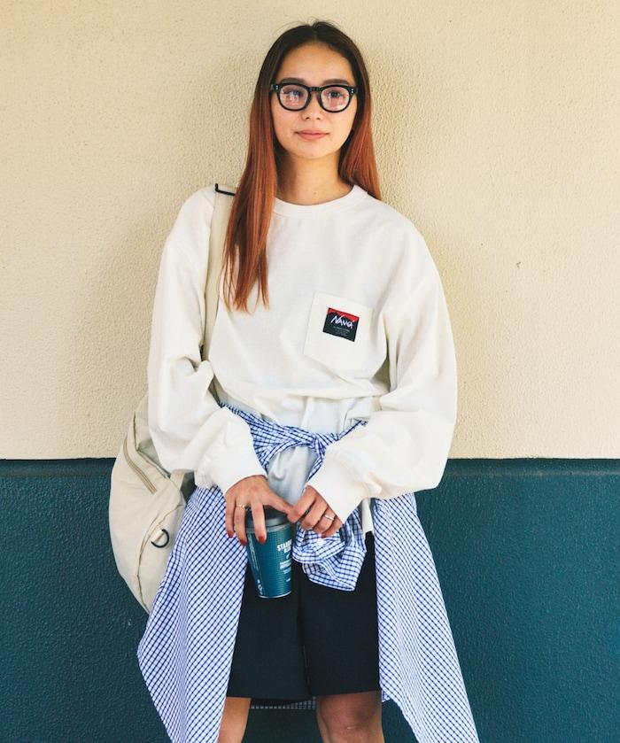 特別定製的口袋長袖 T 恤,口袋上隨意貼有 Nanga 的標準 MT(山)標誌標籤。