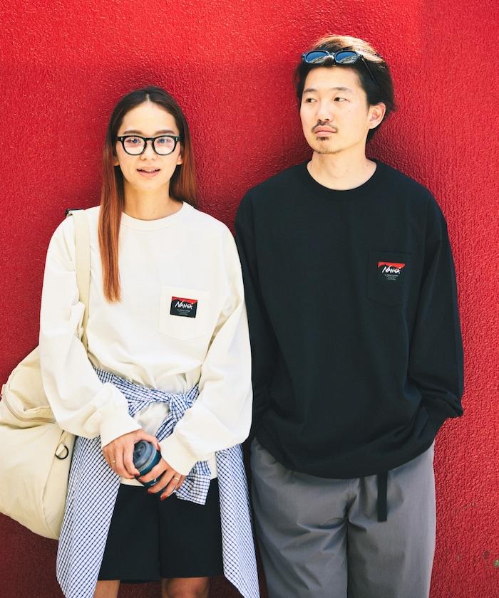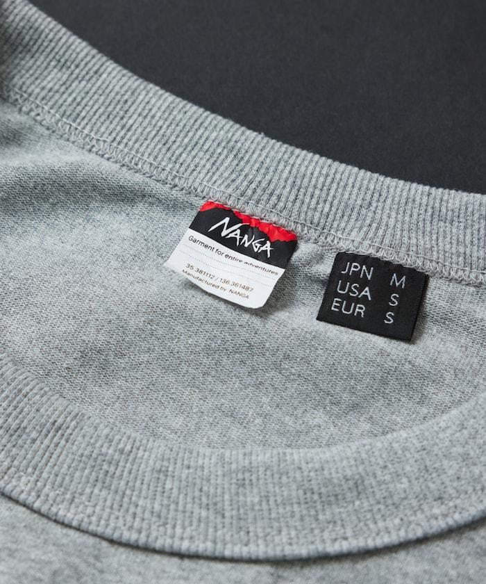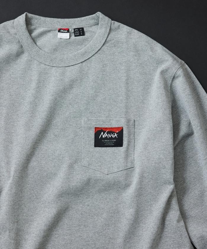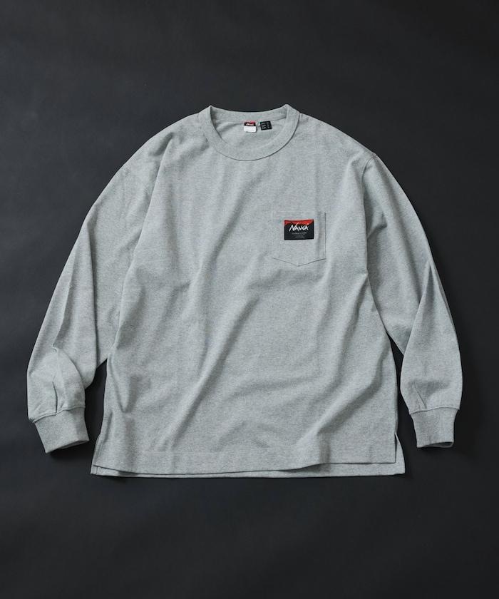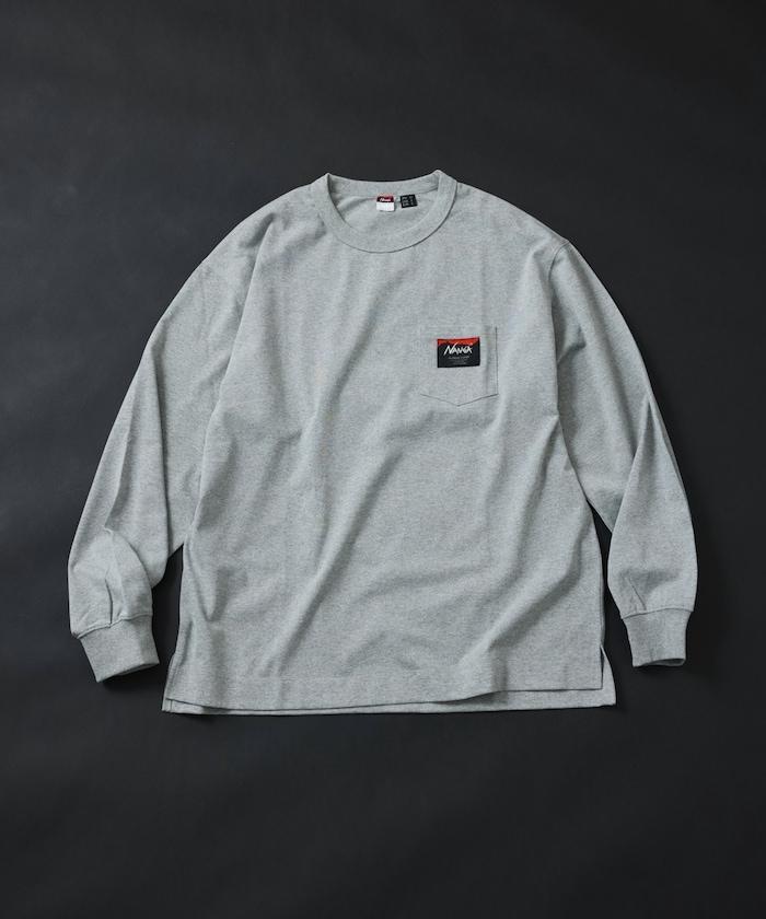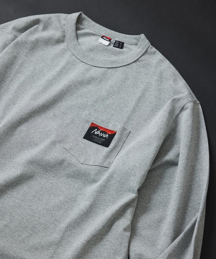 特別定製的口袋長袖 T 恤,口袋上隨意貼有 Nanga 的標準 MT(山)標誌標籤。