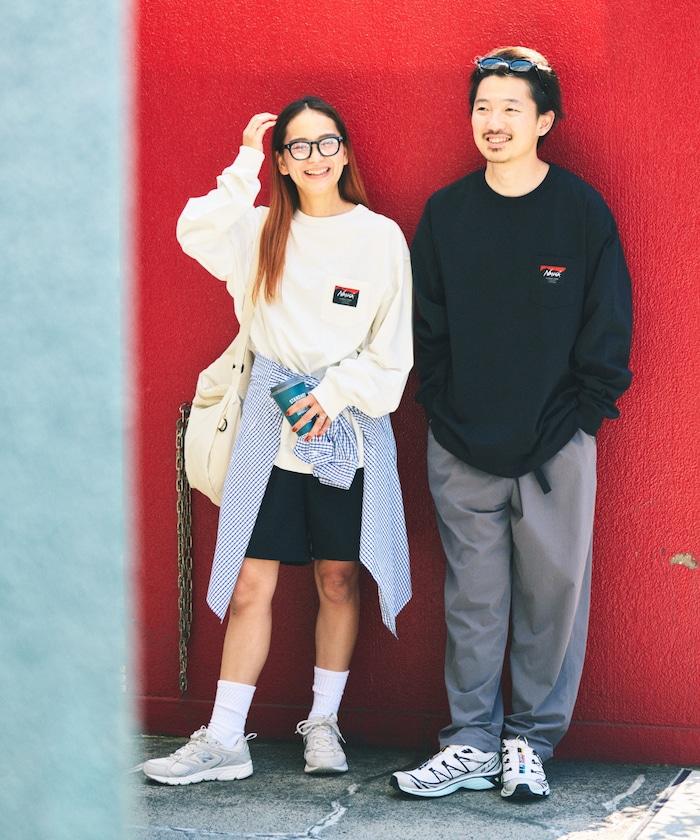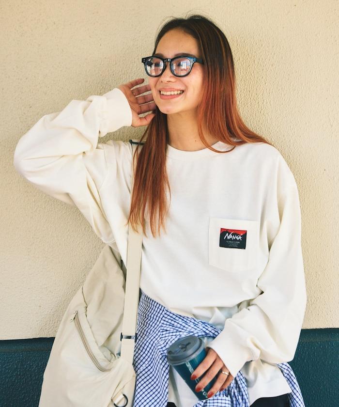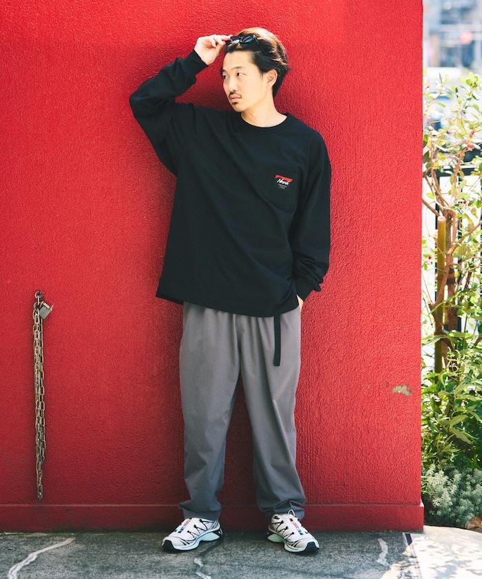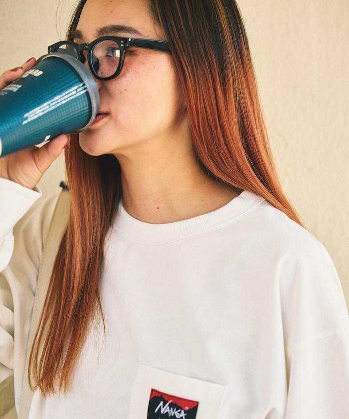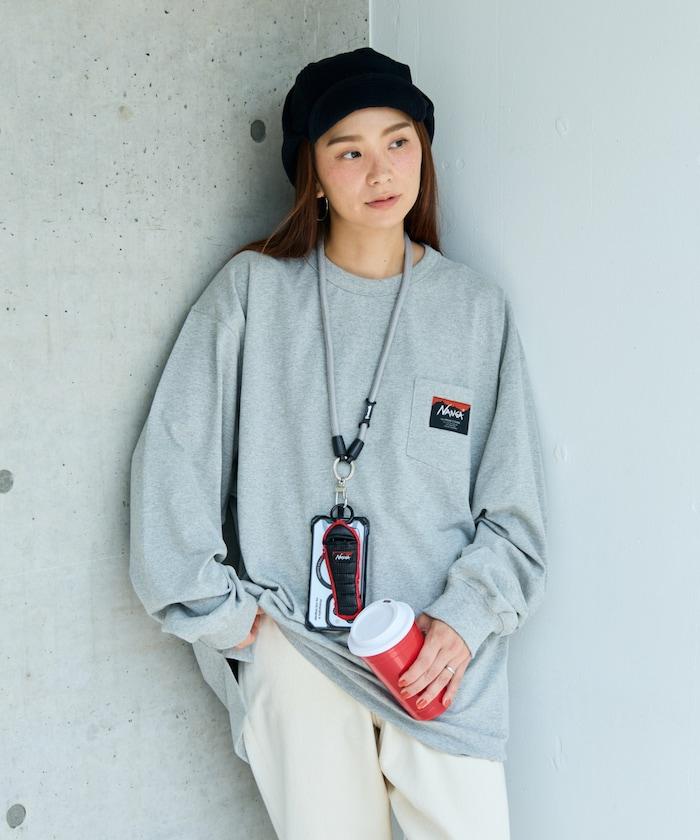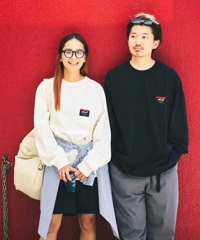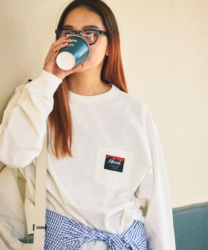 特別定製的口袋長袖 T 恤,口袋上隨意貼有 Nanga 的標準 MT(山)標誌標籤。