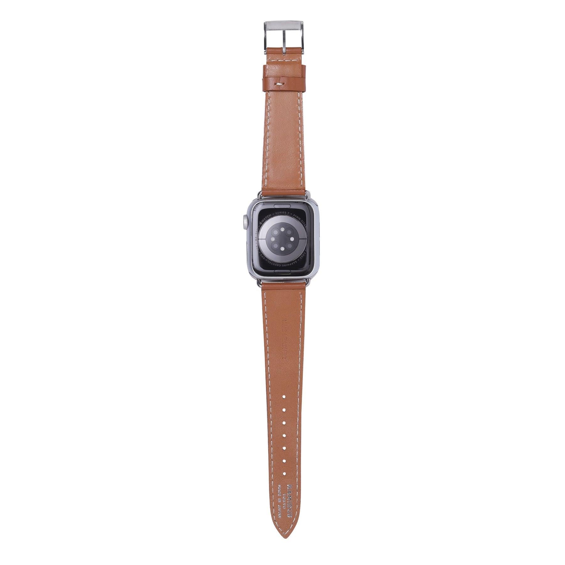 適用於 40 毫米、41 毫米和 42 毫米錶殼尺寸的 Apple Watch 錶帶。主要材料採用無鉻、無金屬鞣製的意大利皮革,由獲得 LWG 銀色環保認證的製革廠提供,該認證僅授予符合嚴格國際標準的製革廠。這款錶帶利用皮革溼潤的手感和光滑的質地,適用於從商務到休閒的各種場合。