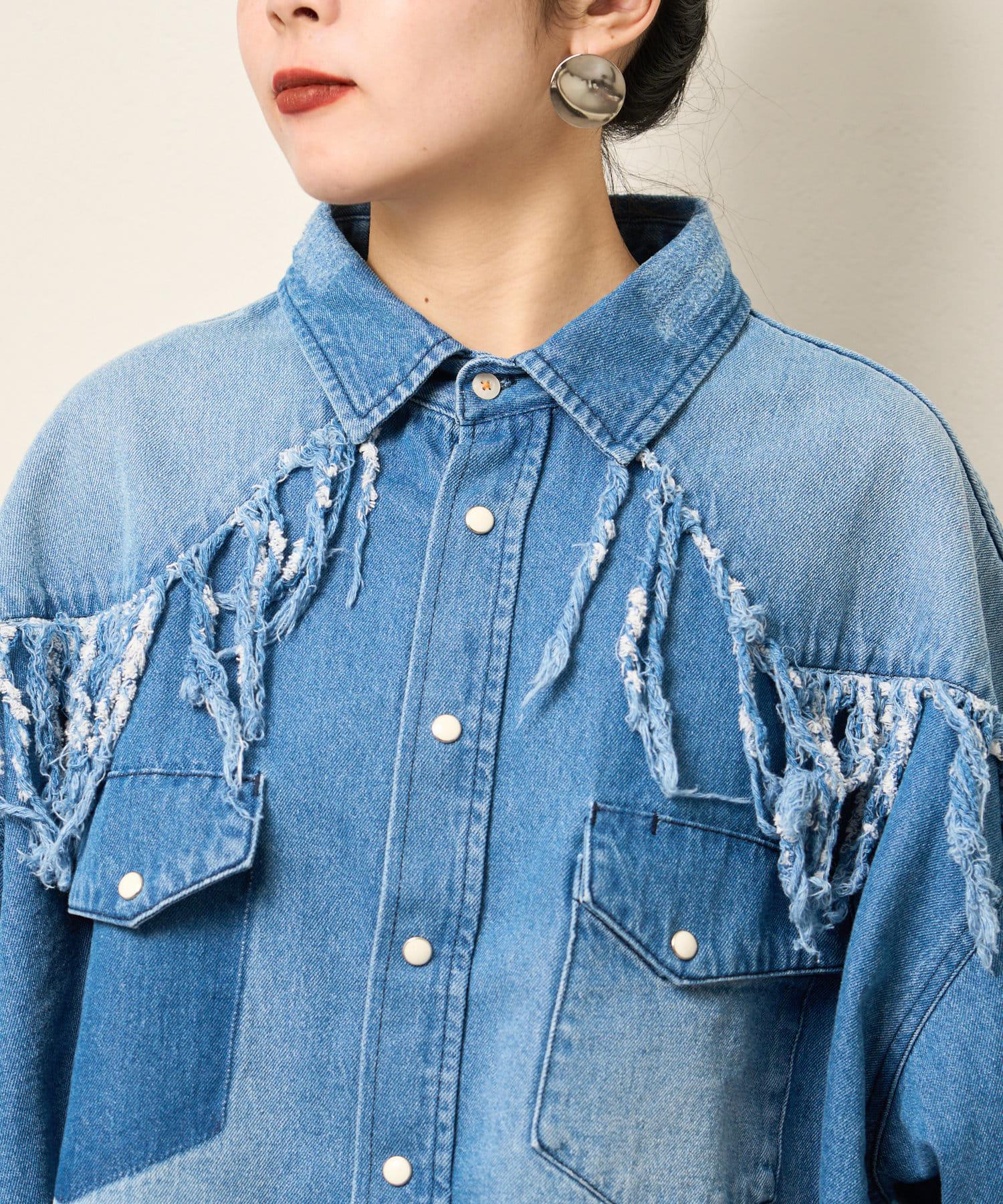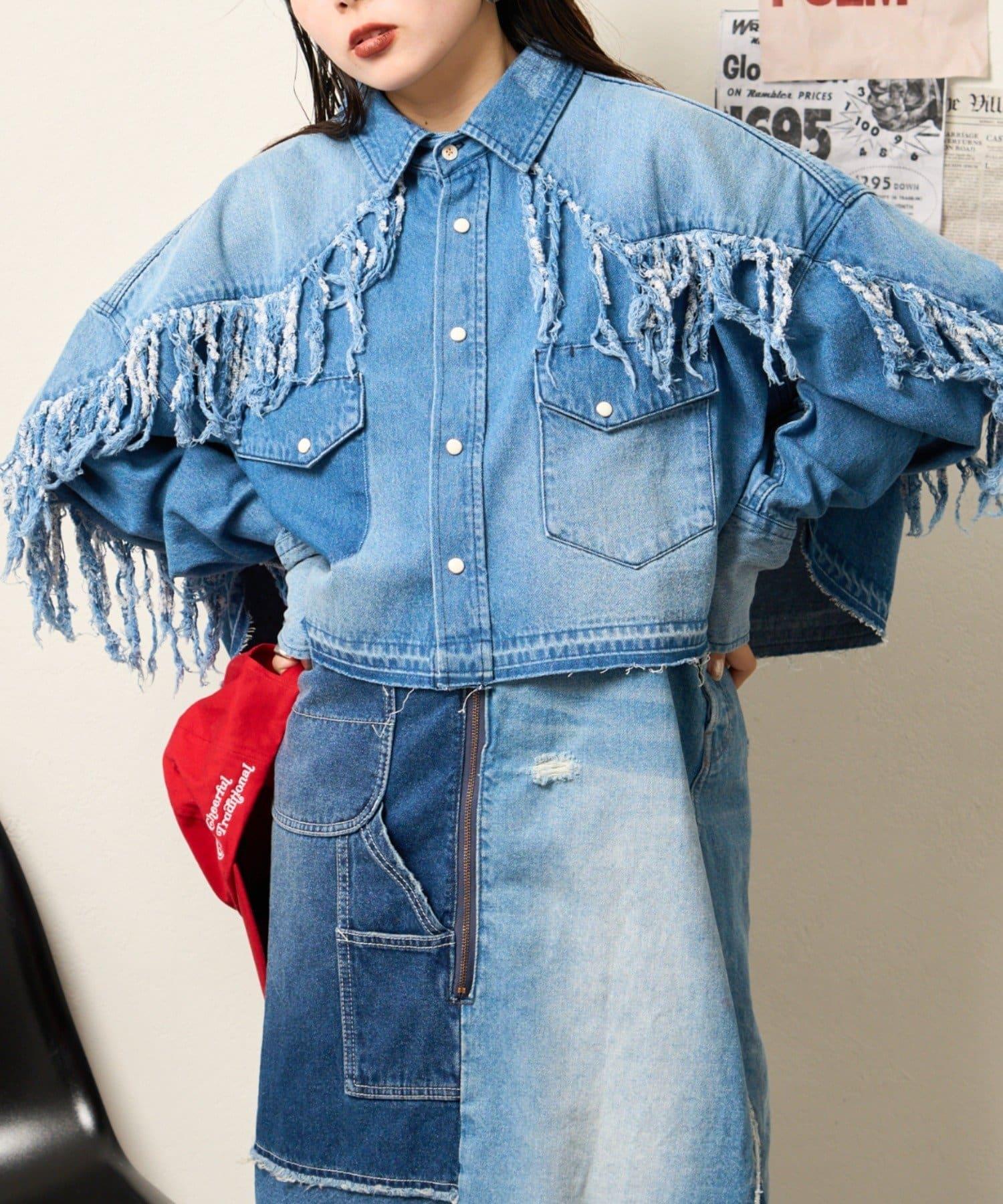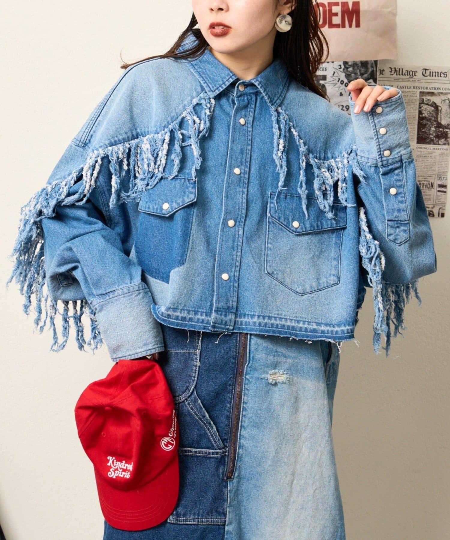 大流蘇和牛仔布料的潮流搭配 ♩ 這款西服襯衫的單品就是主角!