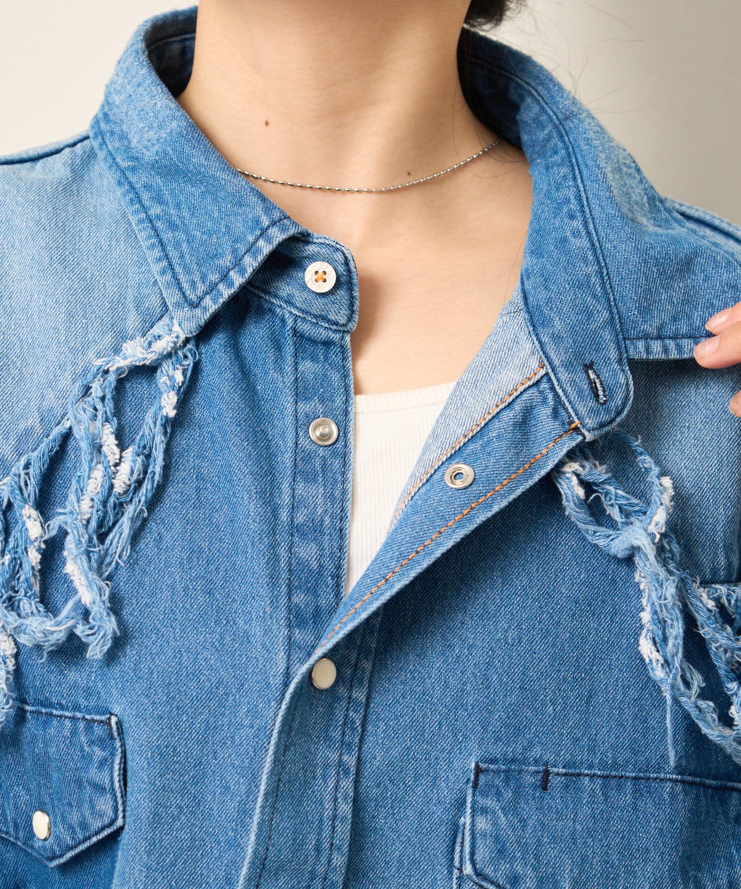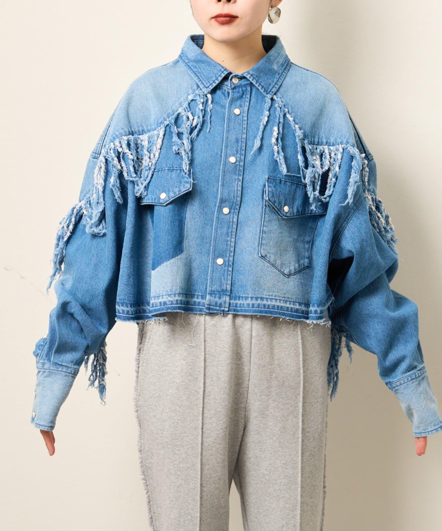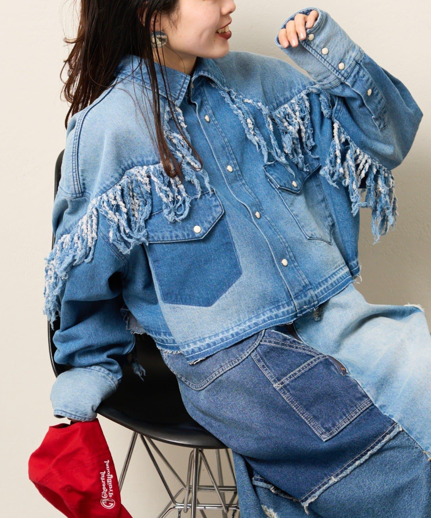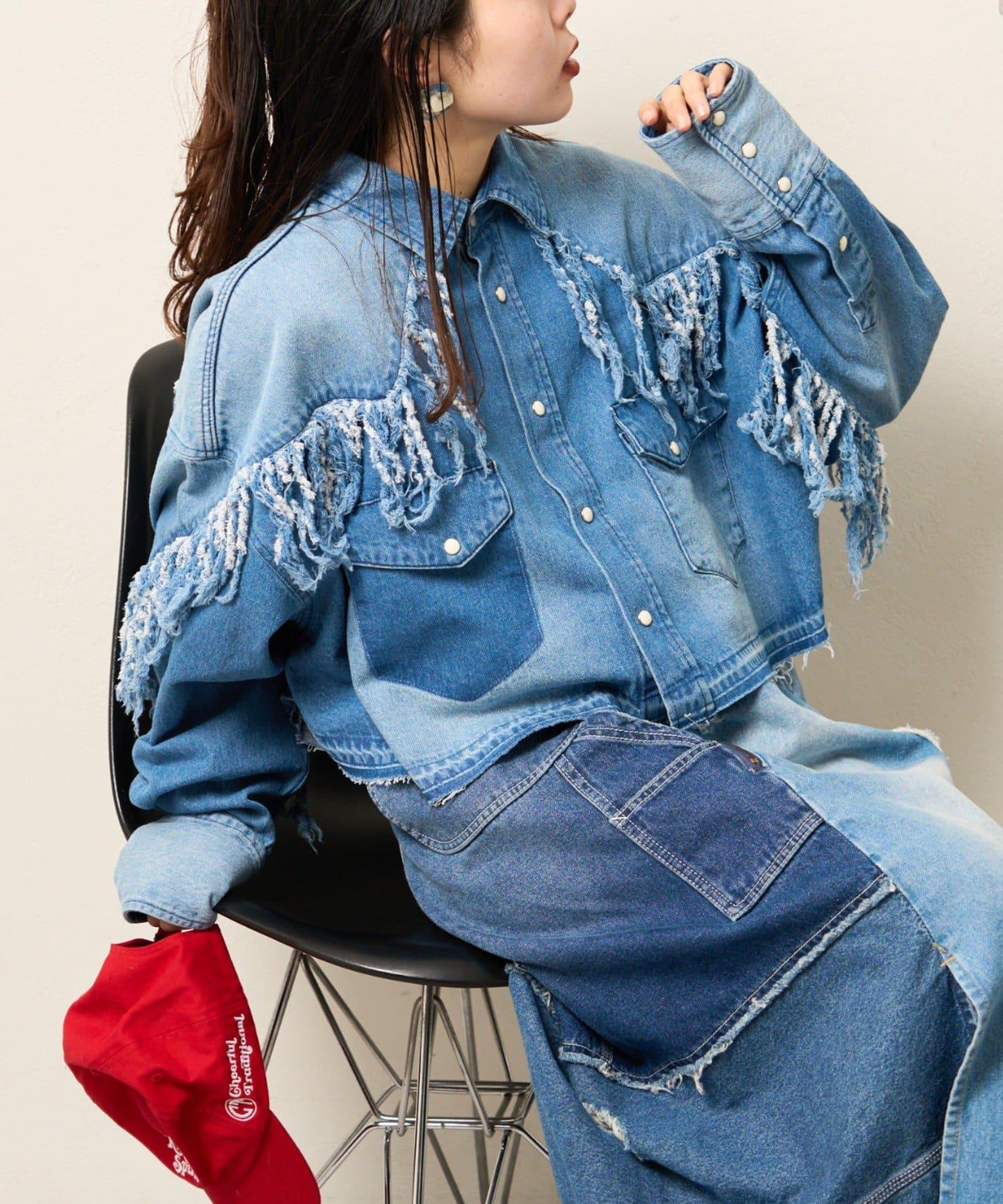 大流蘇和牛仔布料的潮流搭配 ♩ 這款西服襯衫的單品就是主角!