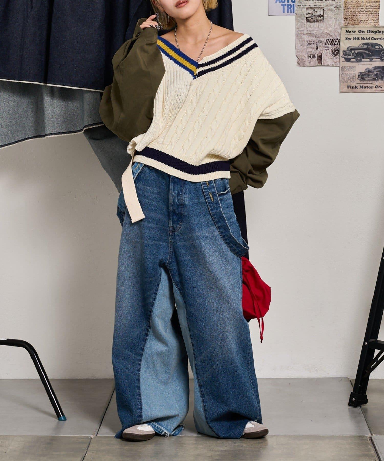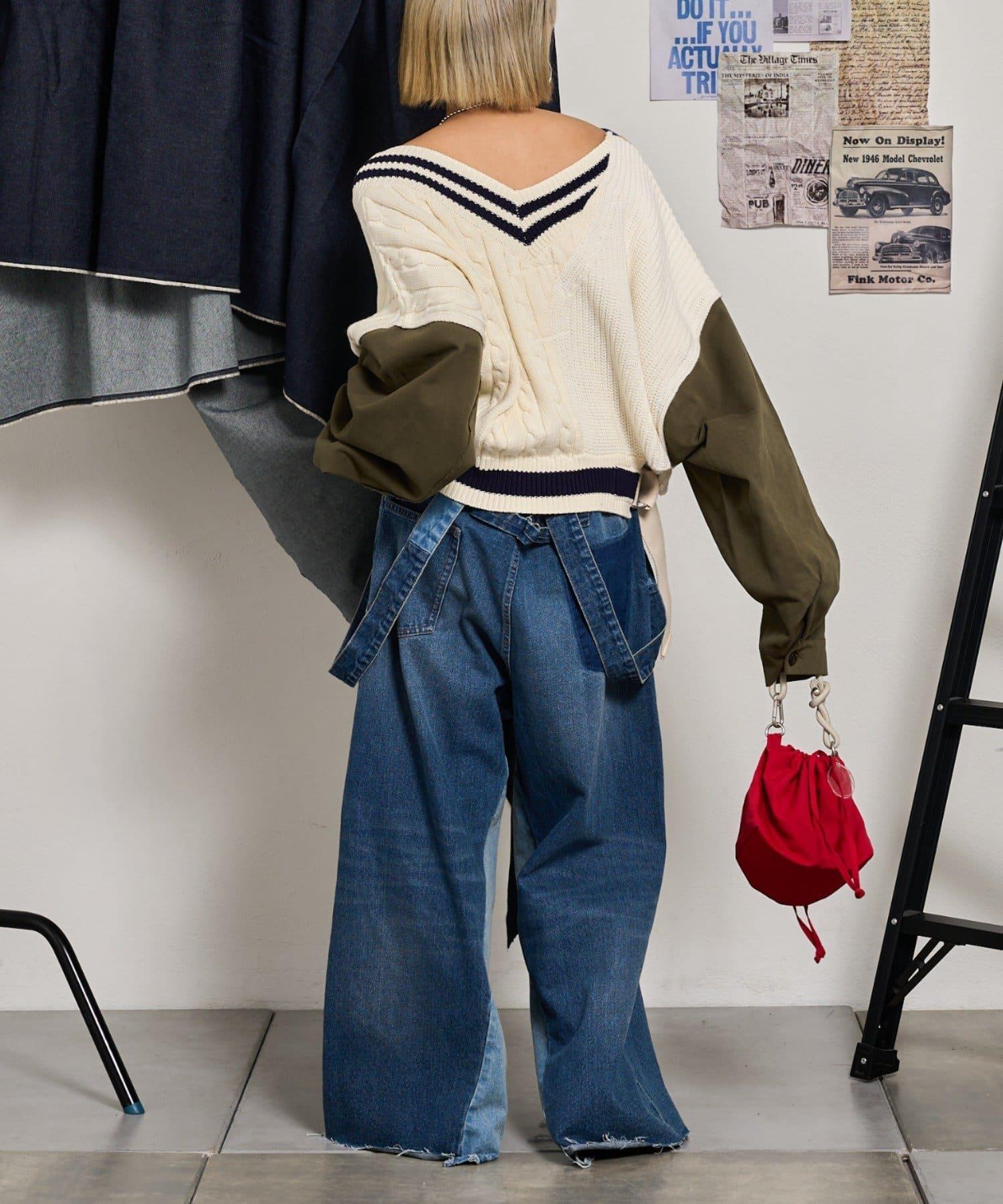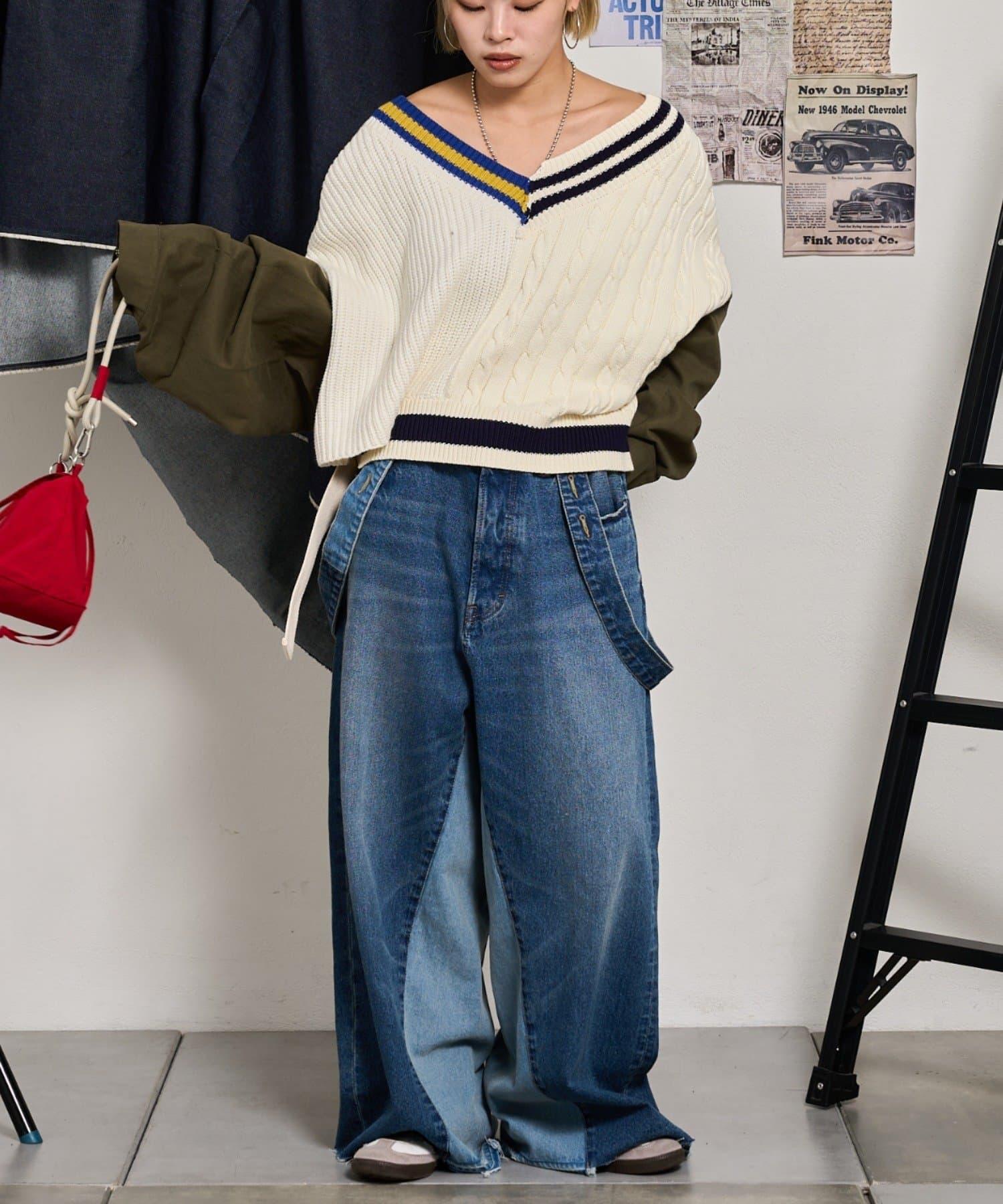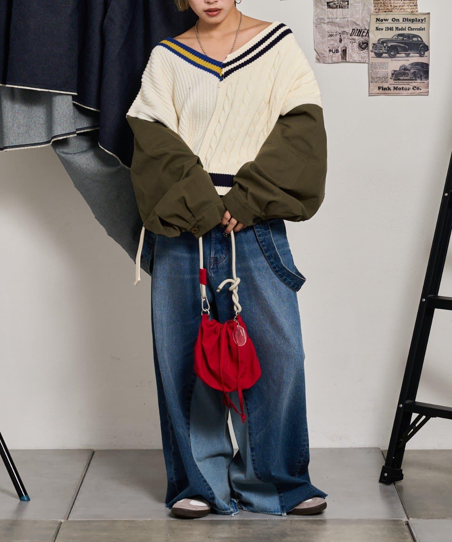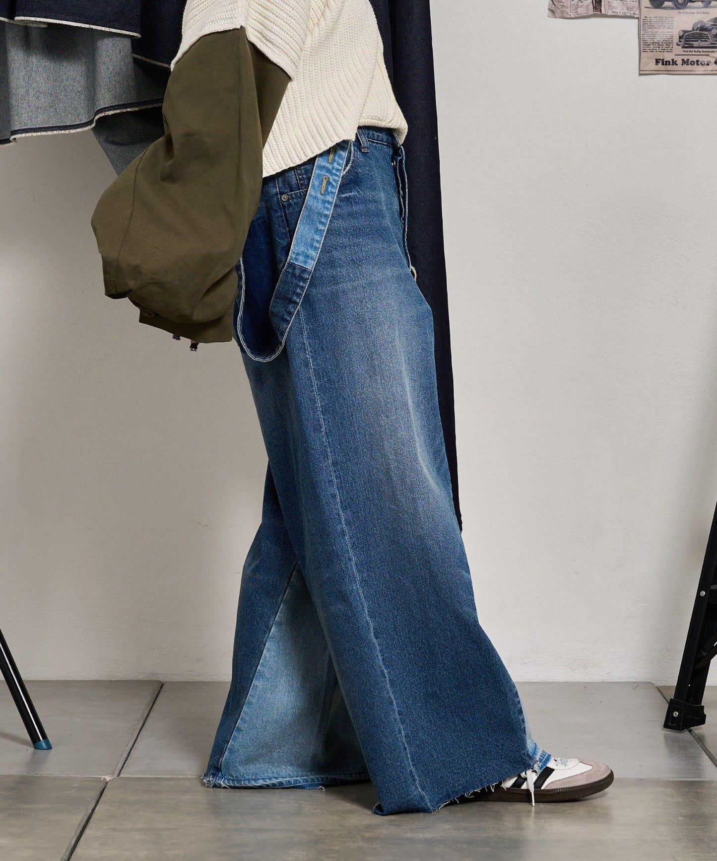 牛仔布的寬大輪廓和出眾的外觀。雙向規格,可拆卸腰帶。