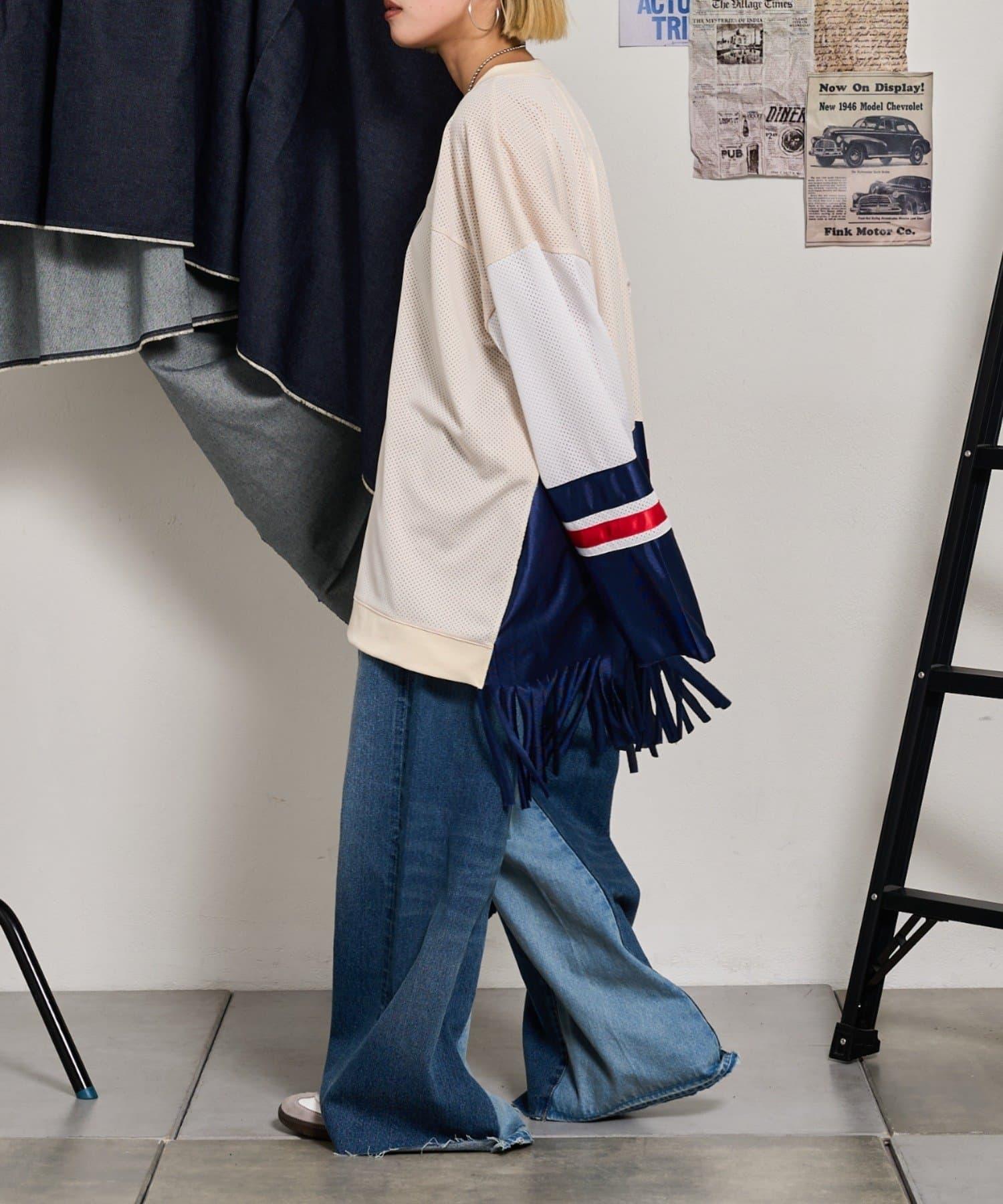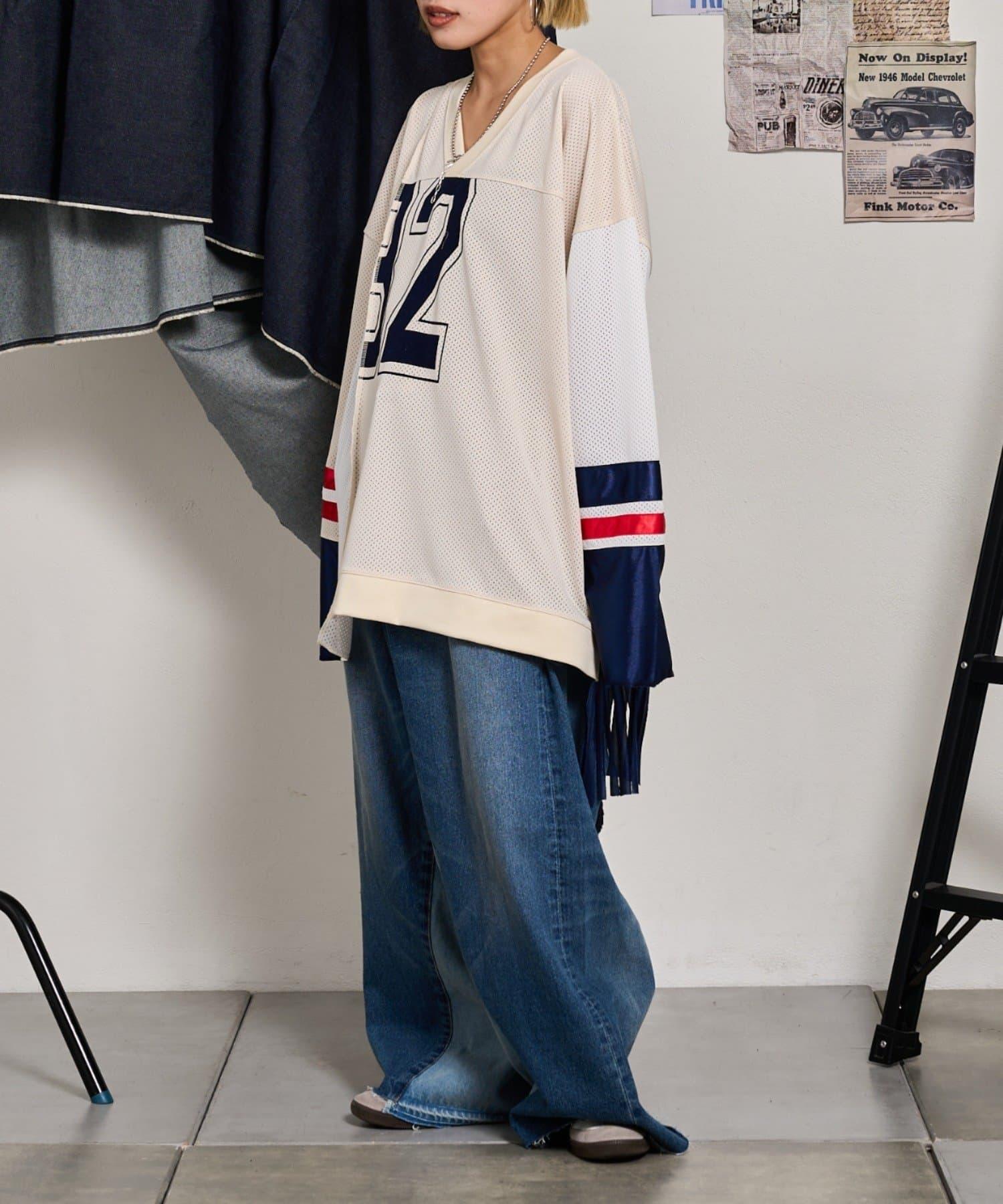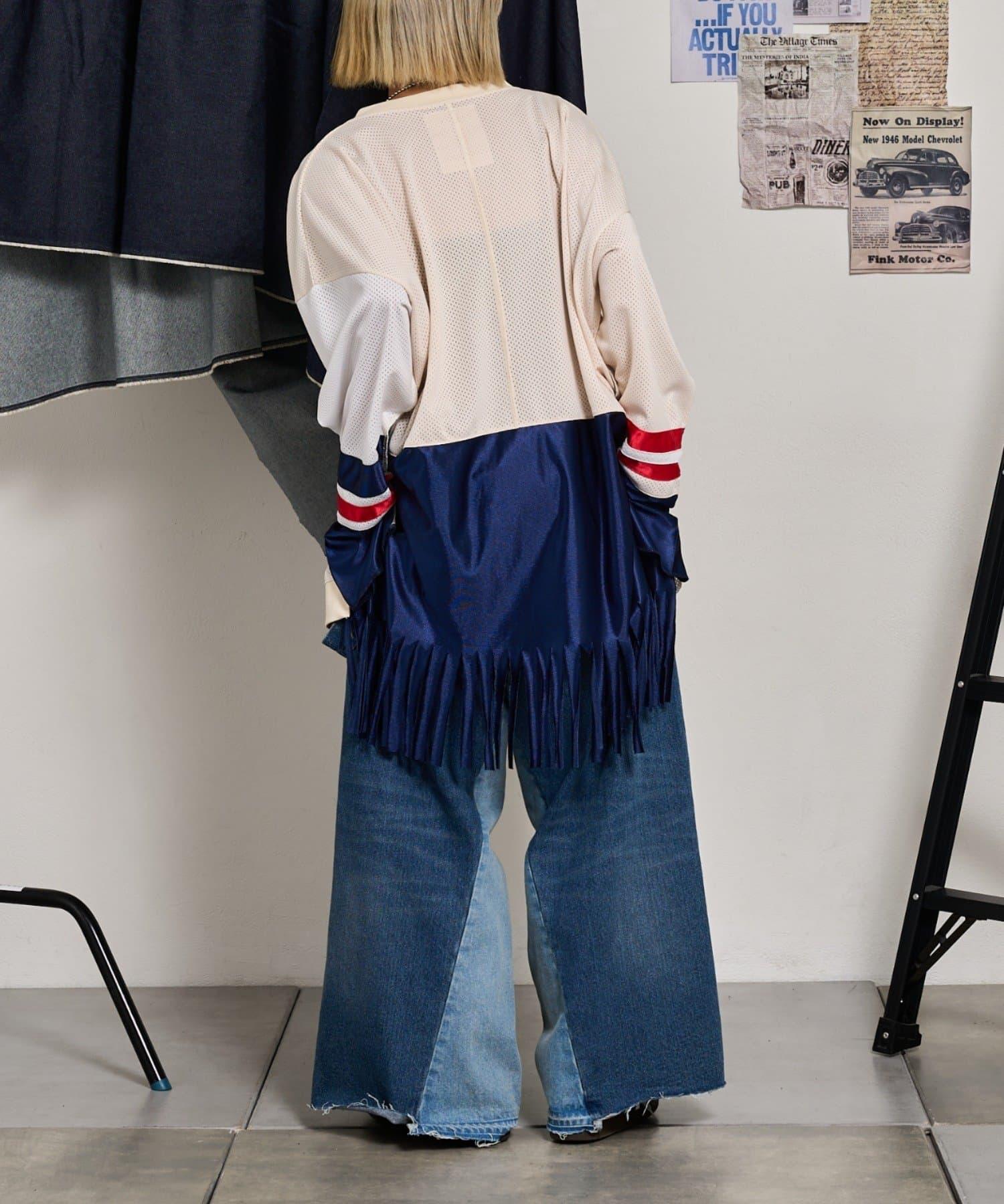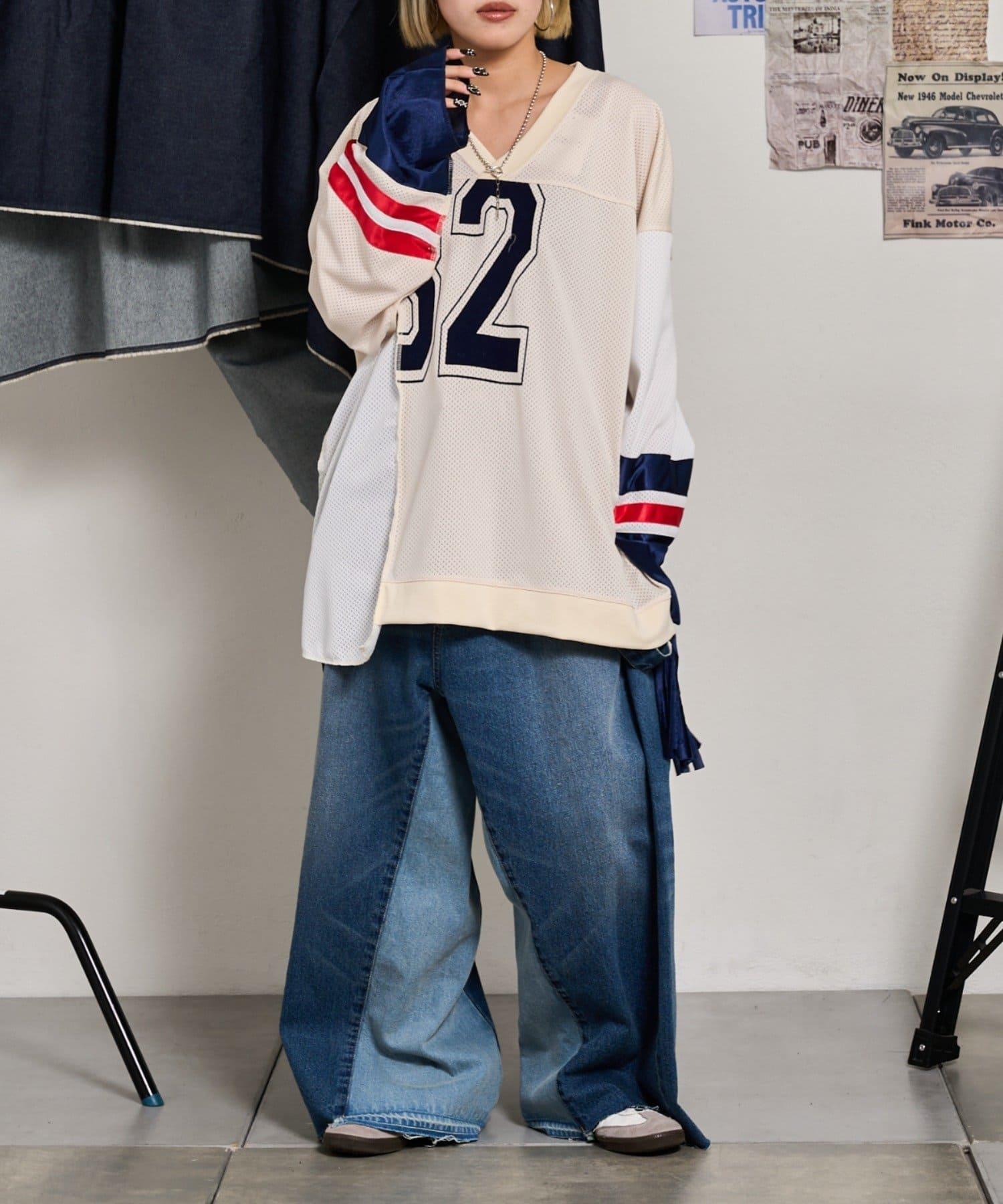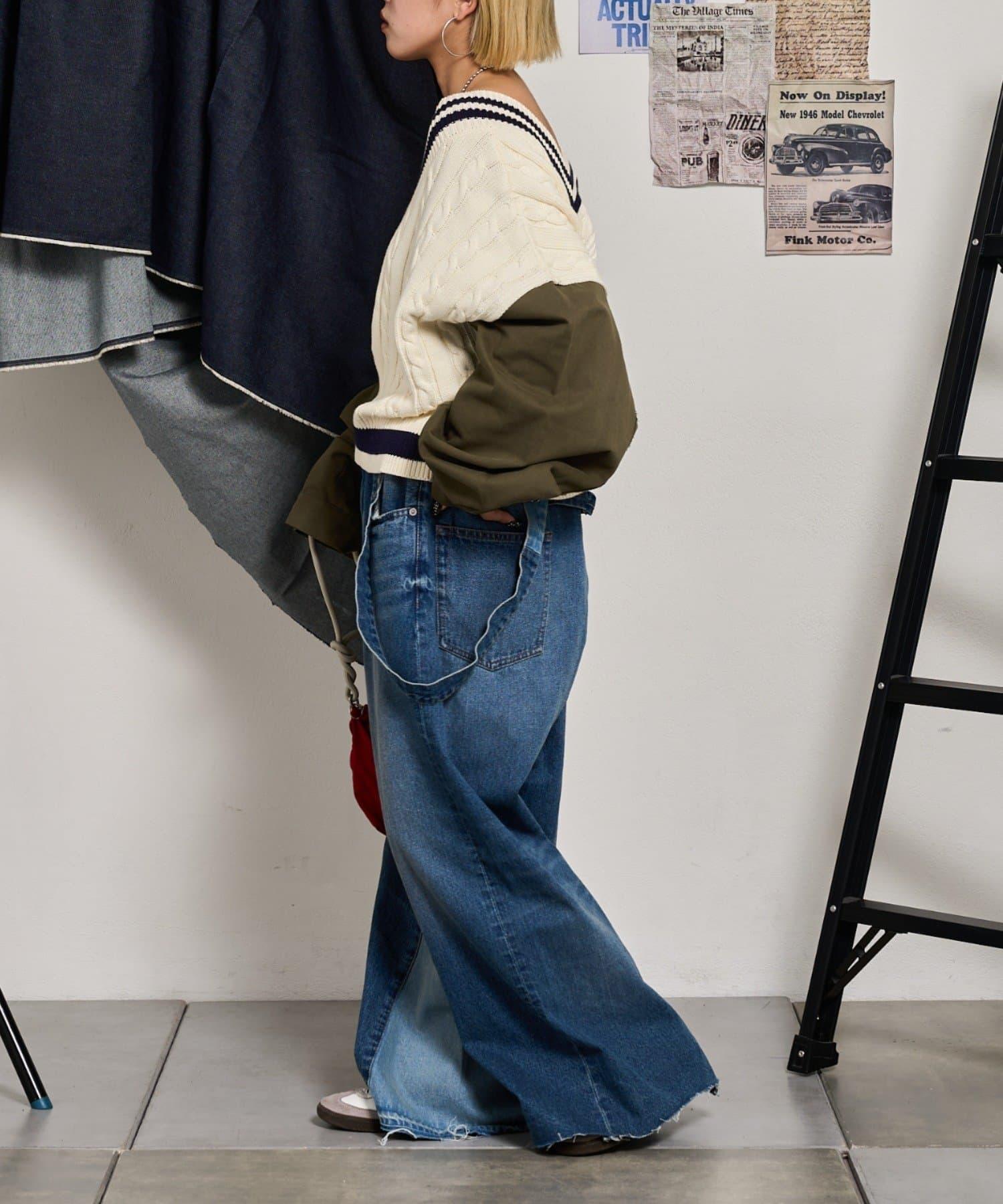 牛仔布的寬大輪廓和出眾的外觀。雙向規格,可拆卸腰帶。
