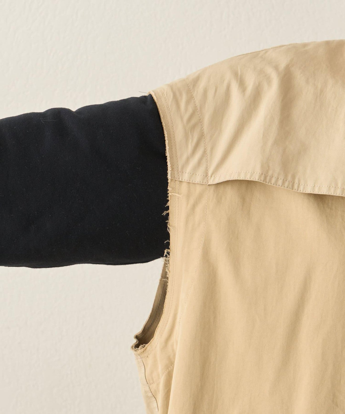 這款長款大衣有兩種穿法,既可作為大衣,也可作為馬甲。