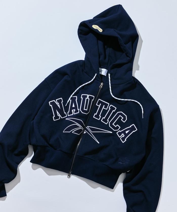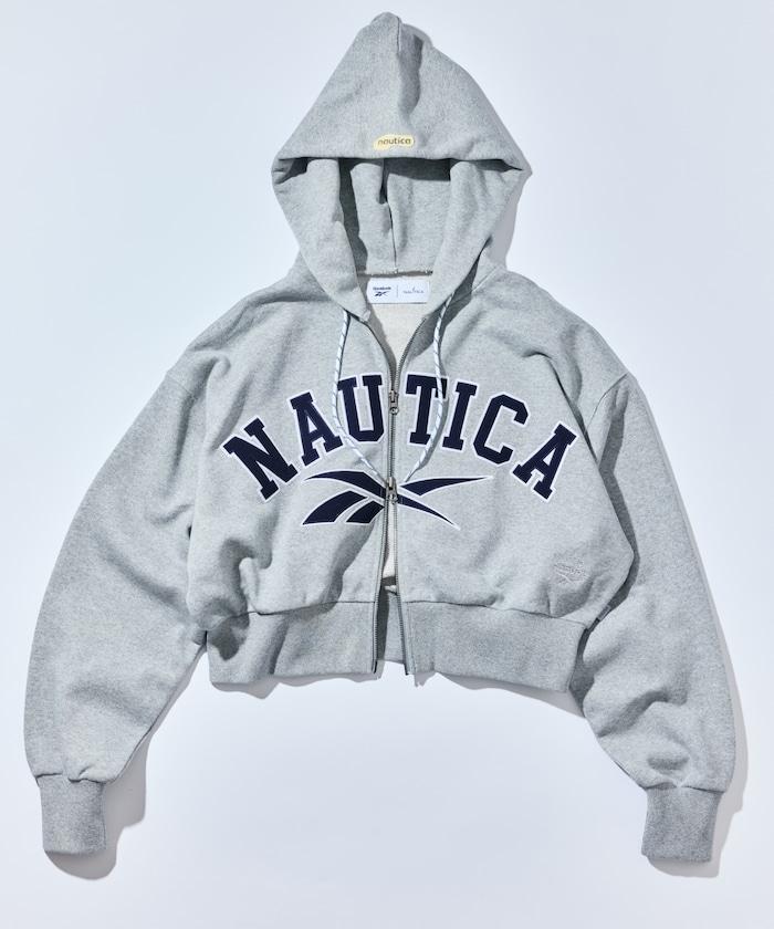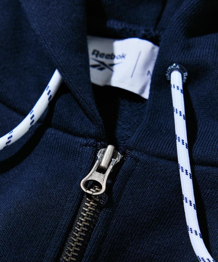 特別全拉鍊連帽衫,在 NAUTICA 的標準拱形徽標徽章上添加了 Reebok 徽標。