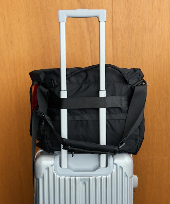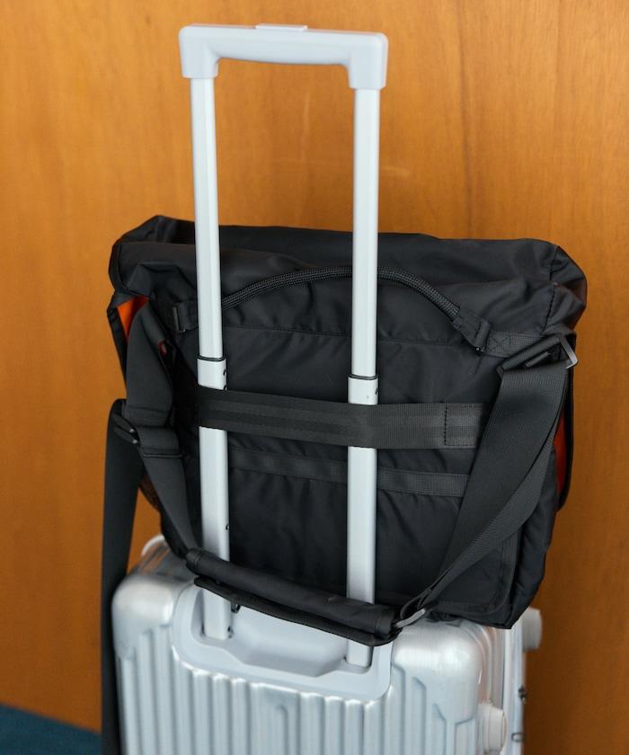 包的背面裝有膠帶,可以穿過手提箱的手柄,方便旅行時移動。