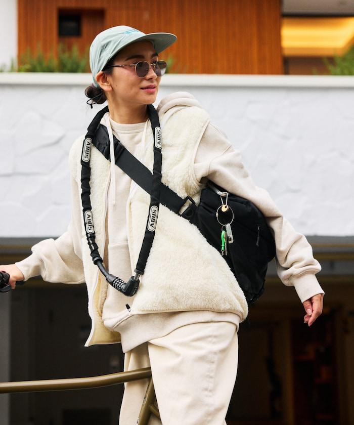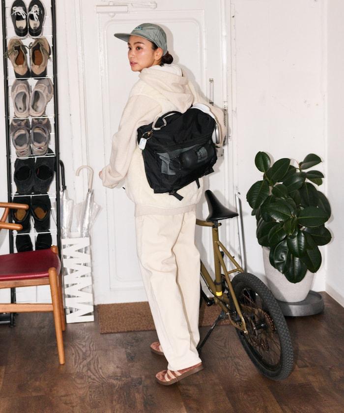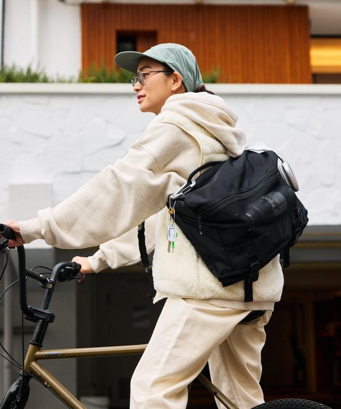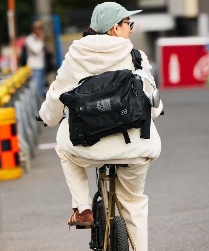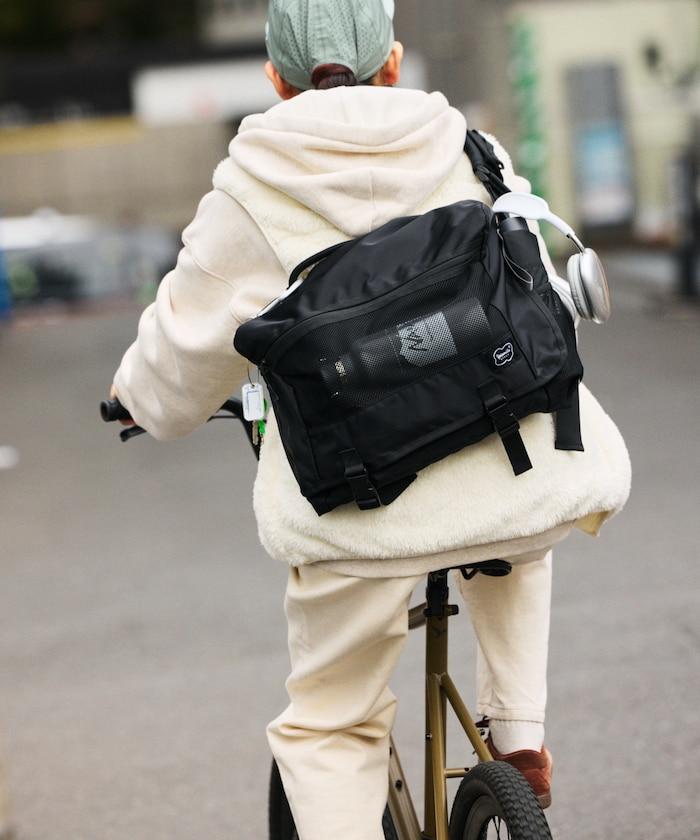 正面網兜的背面採用反光材料,即使在夜間道路上也能反射車燈。