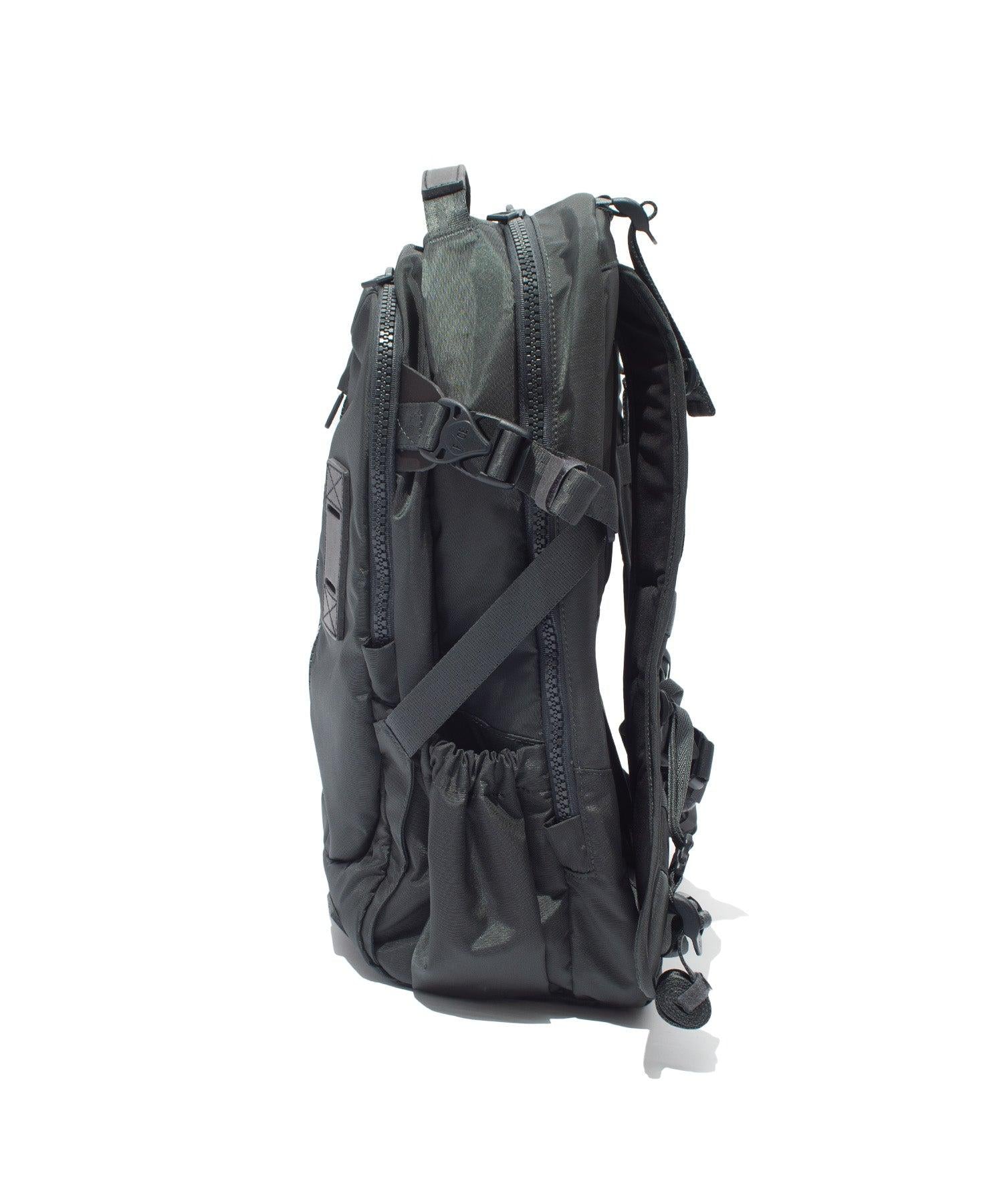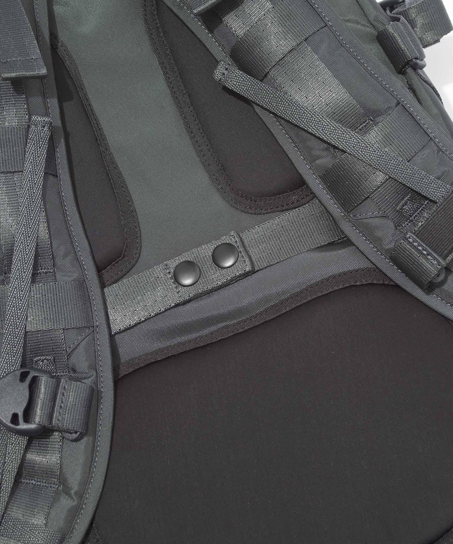 肩部配備了一個MOUNTING T SYSTEM,可安裝沙可什、小包等。這款33升的揹包專為兩天以內的過夜旅行而設計。前置多小工具袋。後部隔層可容納👍 15 英寸的筆記本電腦。 兩端卷邊和肩部設計符合肩部曲線,既舒適又實用。