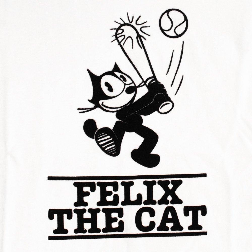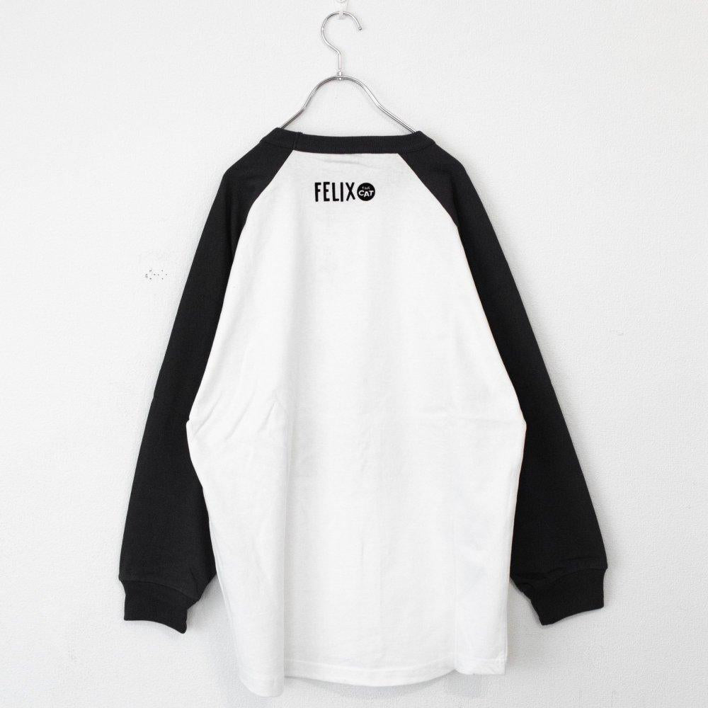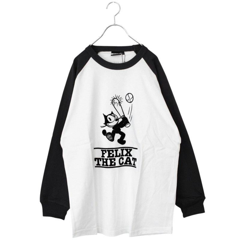 3D立體植絨印花的插肩長 T ●棒球插畫 "FELIX THE CAT "的植絨印花具有 3D 效果。